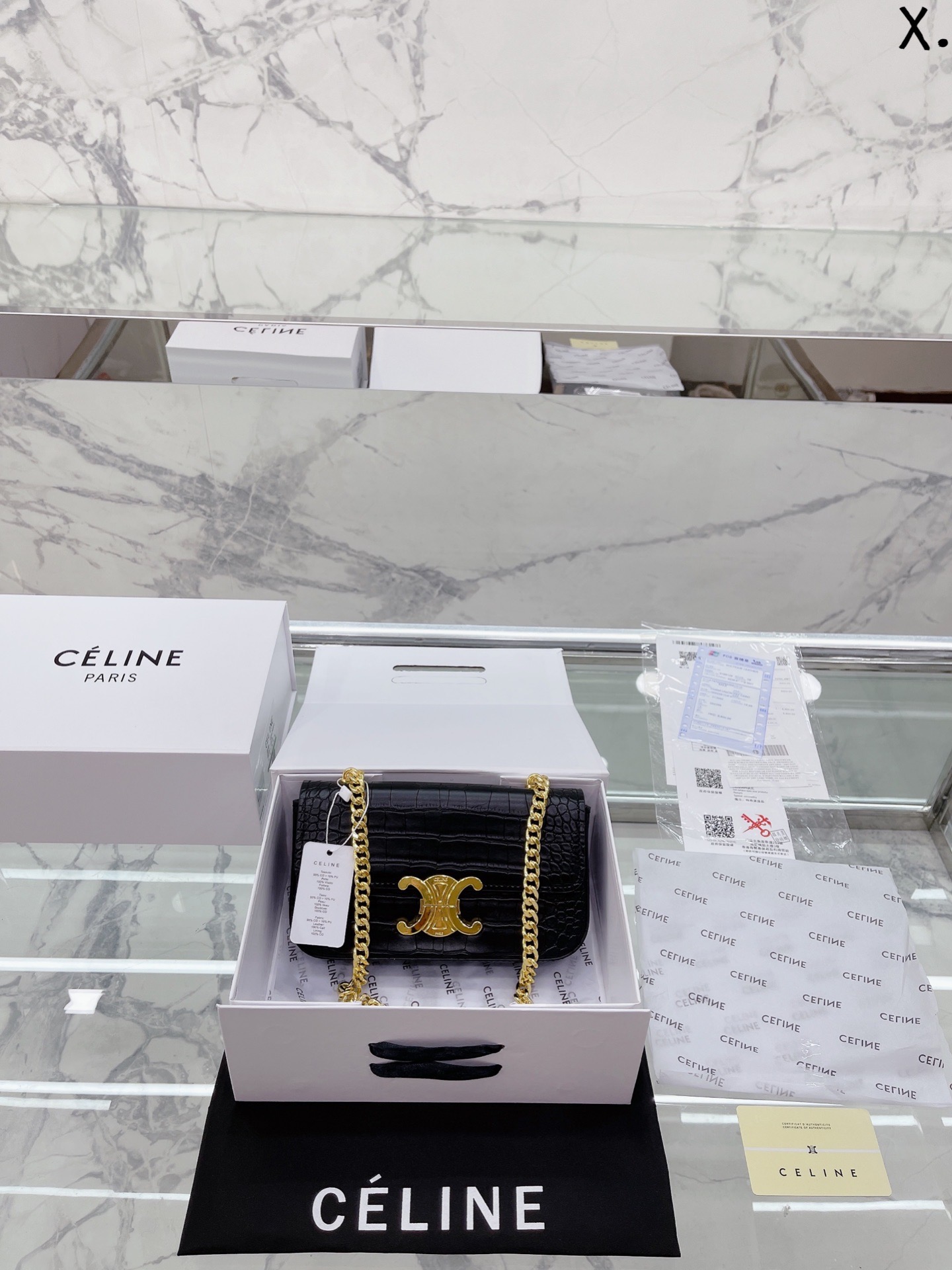 Celine 赛琳 腋下包-小包届的yyds !! 这款凯旋门黑金腋下包 我初次看到的时候就觉得太美了 果然上身别提有大气,复古百搭又轻便 相对于短款腋下包而言,复古做旧金链条 让整只包时髦度又U20 13cm 配折叠礼盒