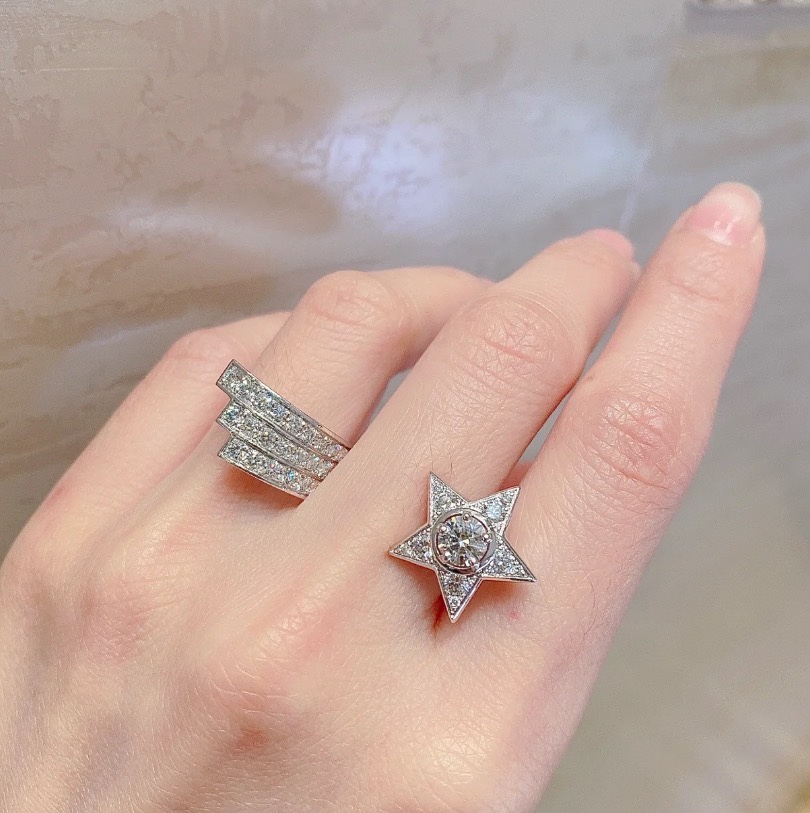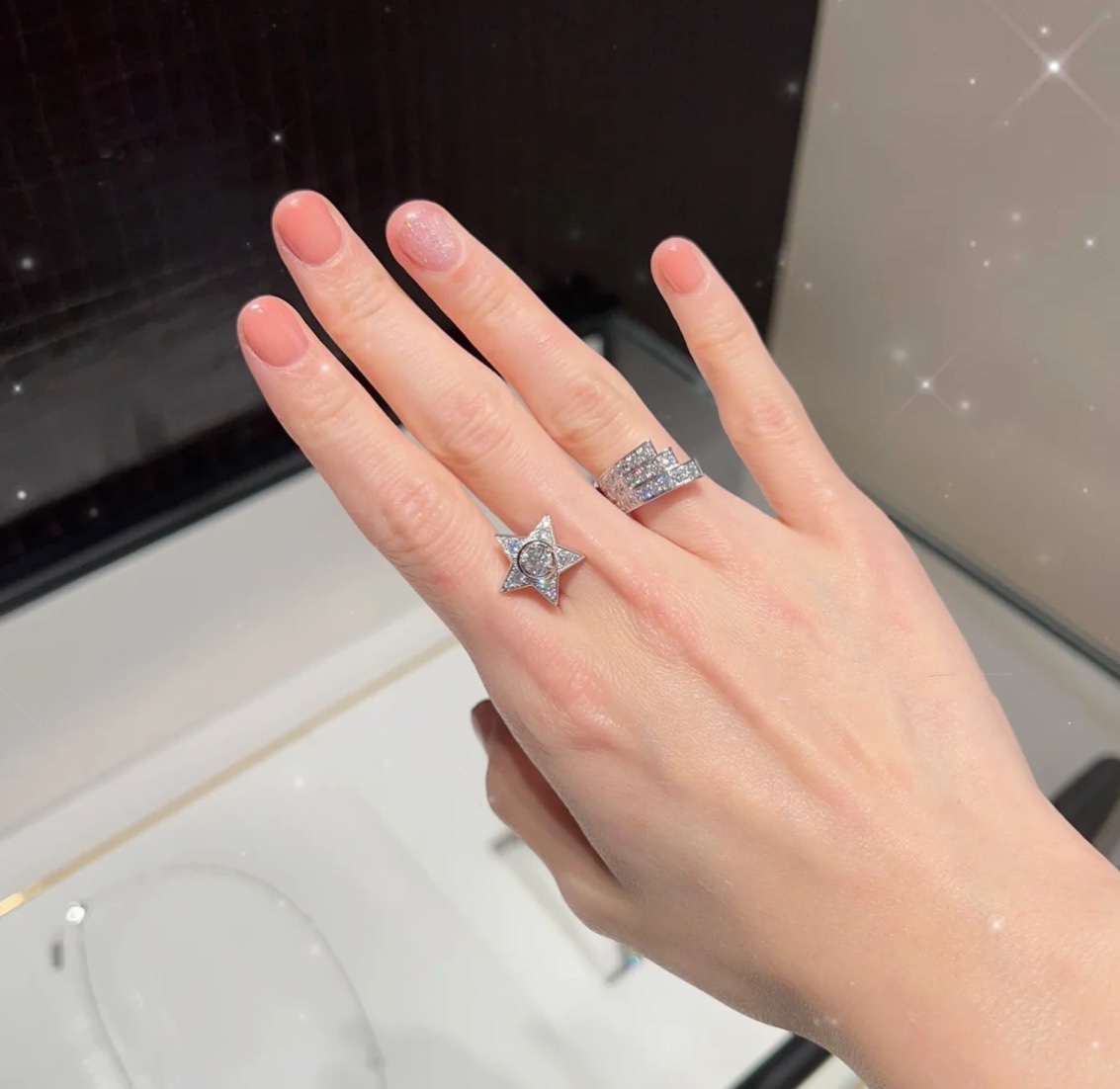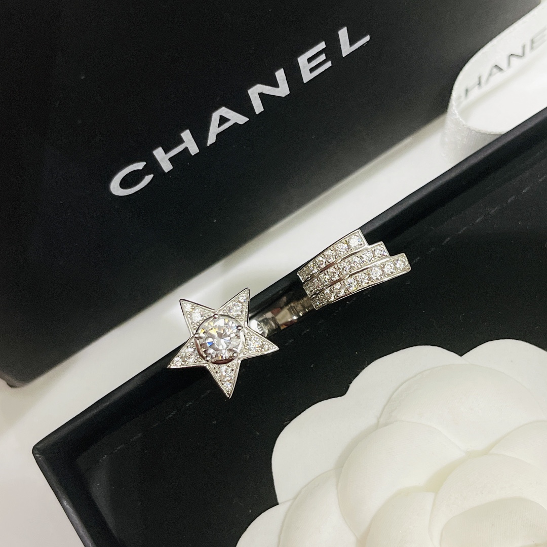 I5 Chanel 小香 22年 高级珠宝 唯美 奢侈 代购级别 彗星 流星 开口戒指 高端定制 精工打造进口S925纯银材质电镀18k金 超美腻唯美流星图案 三排钻 市面最高版本 独家首发 小仙女推荐 戒指