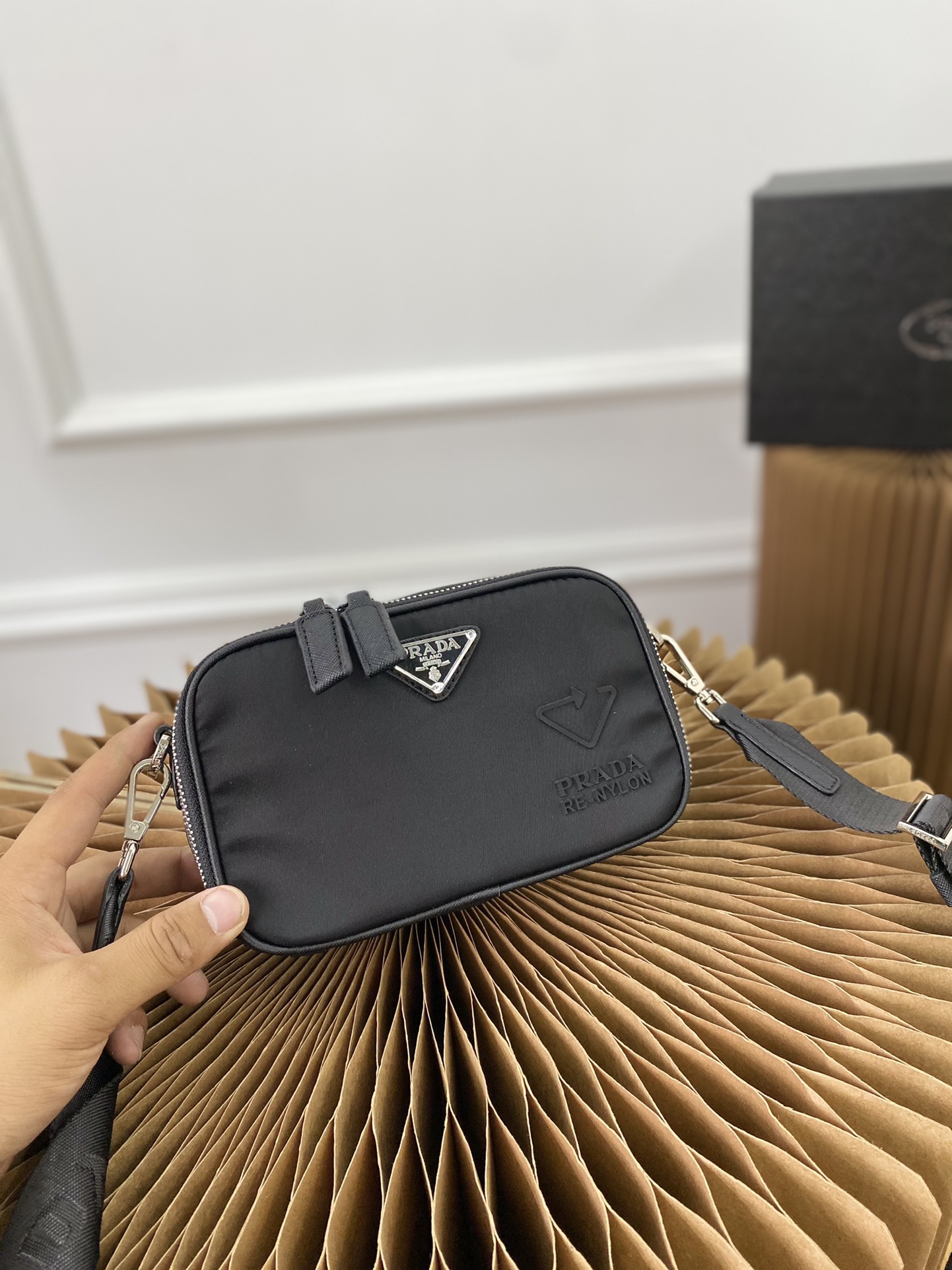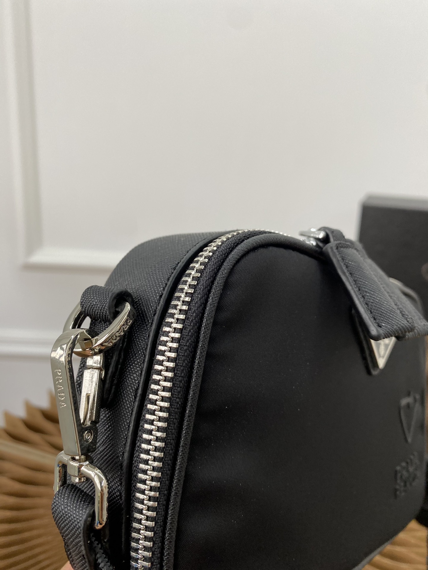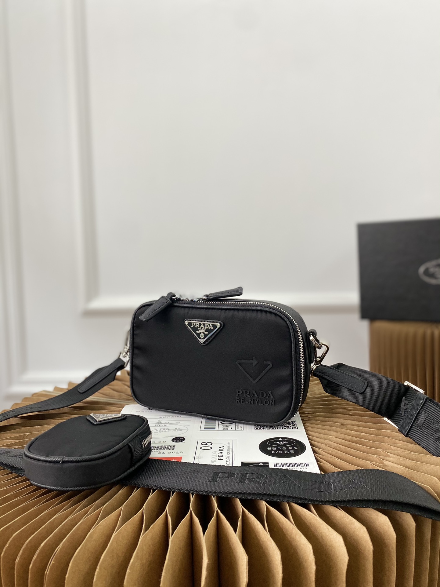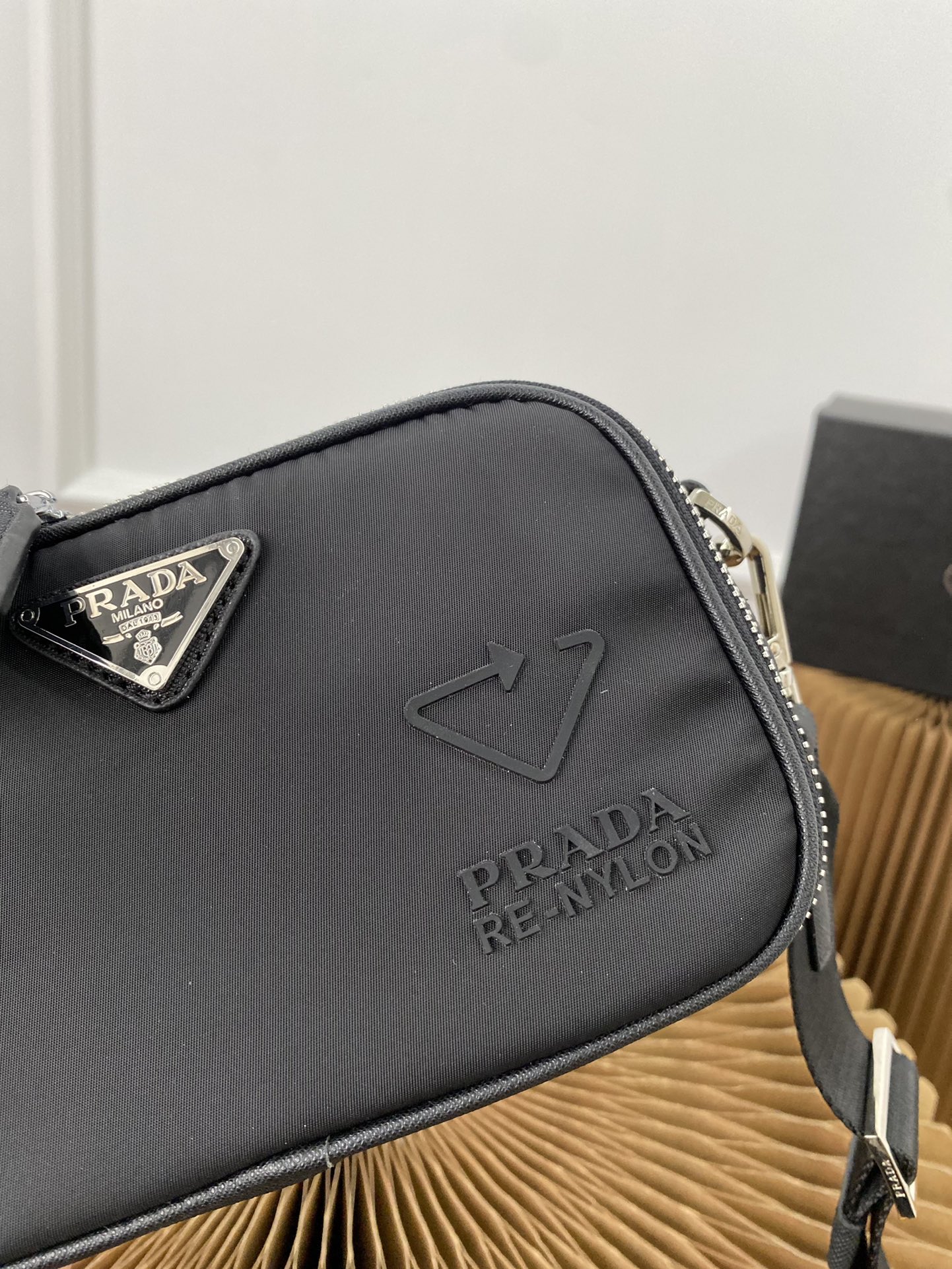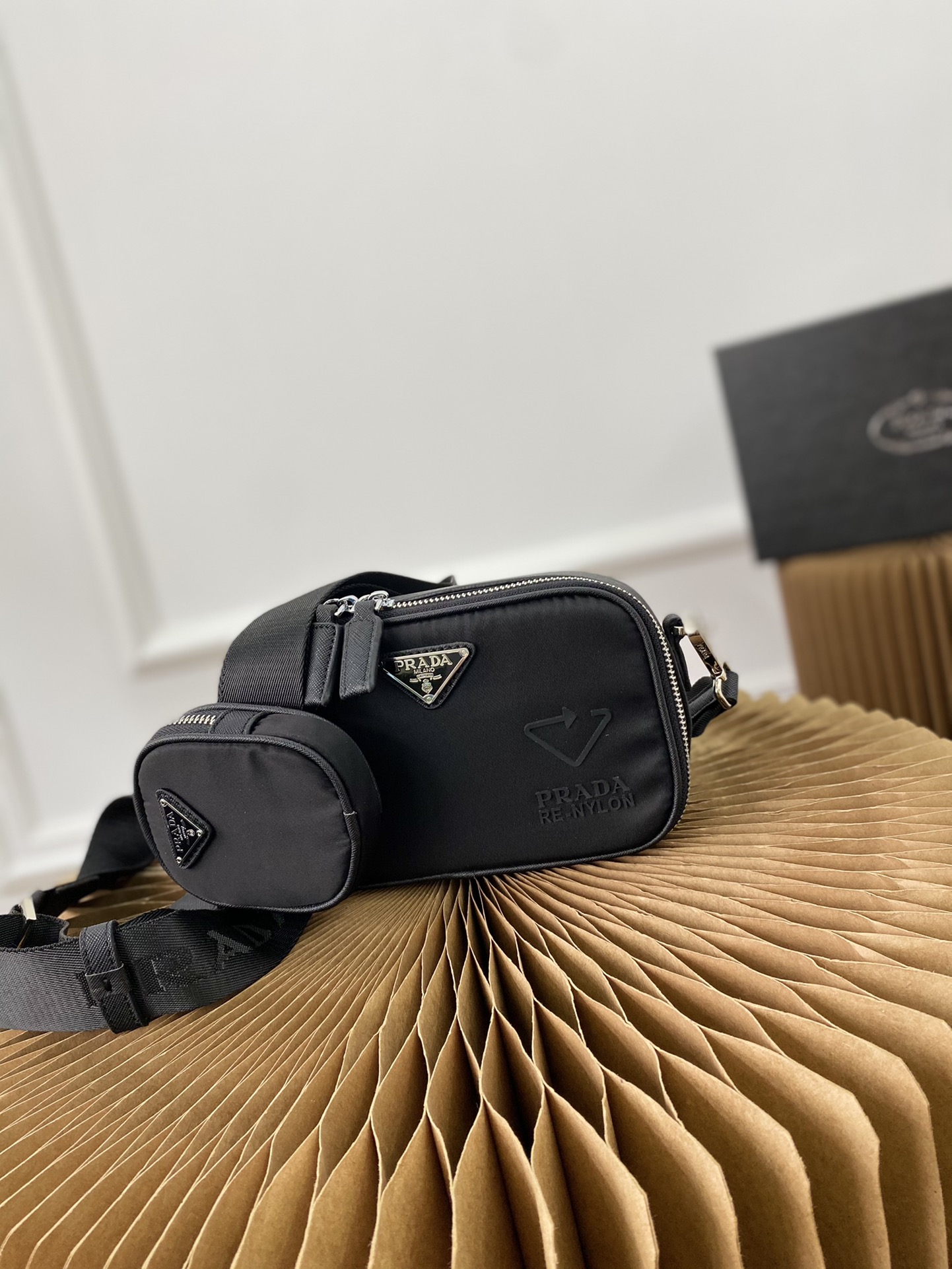 J0 普拉达 Prada 二合一防水布邮差包 单肩包斜挎包 采用精湛镶嵌细工,经典百搭 实物拍摄 原厂原版面料 高端品质 配送小票防尘袋 礼盒 19 x 12 cm。