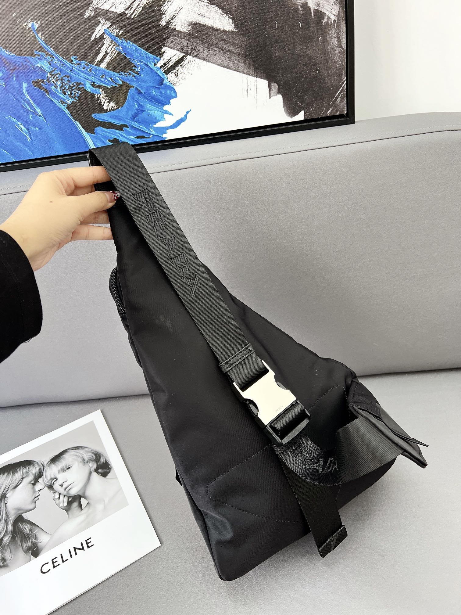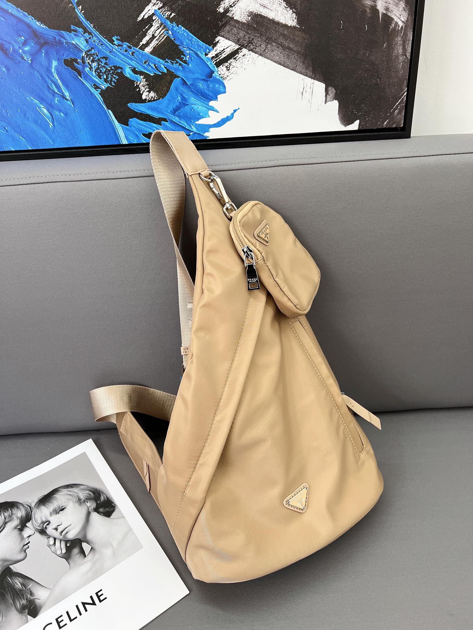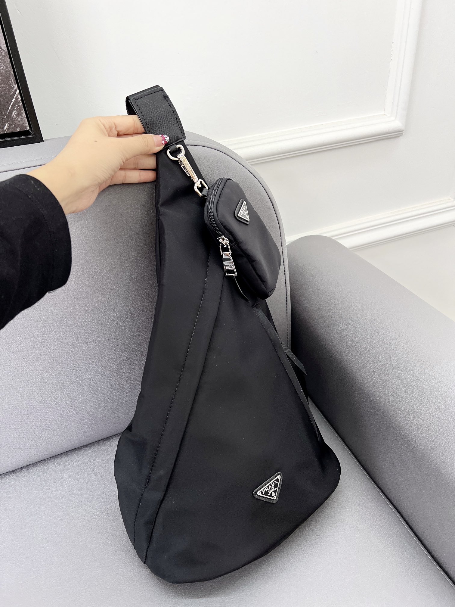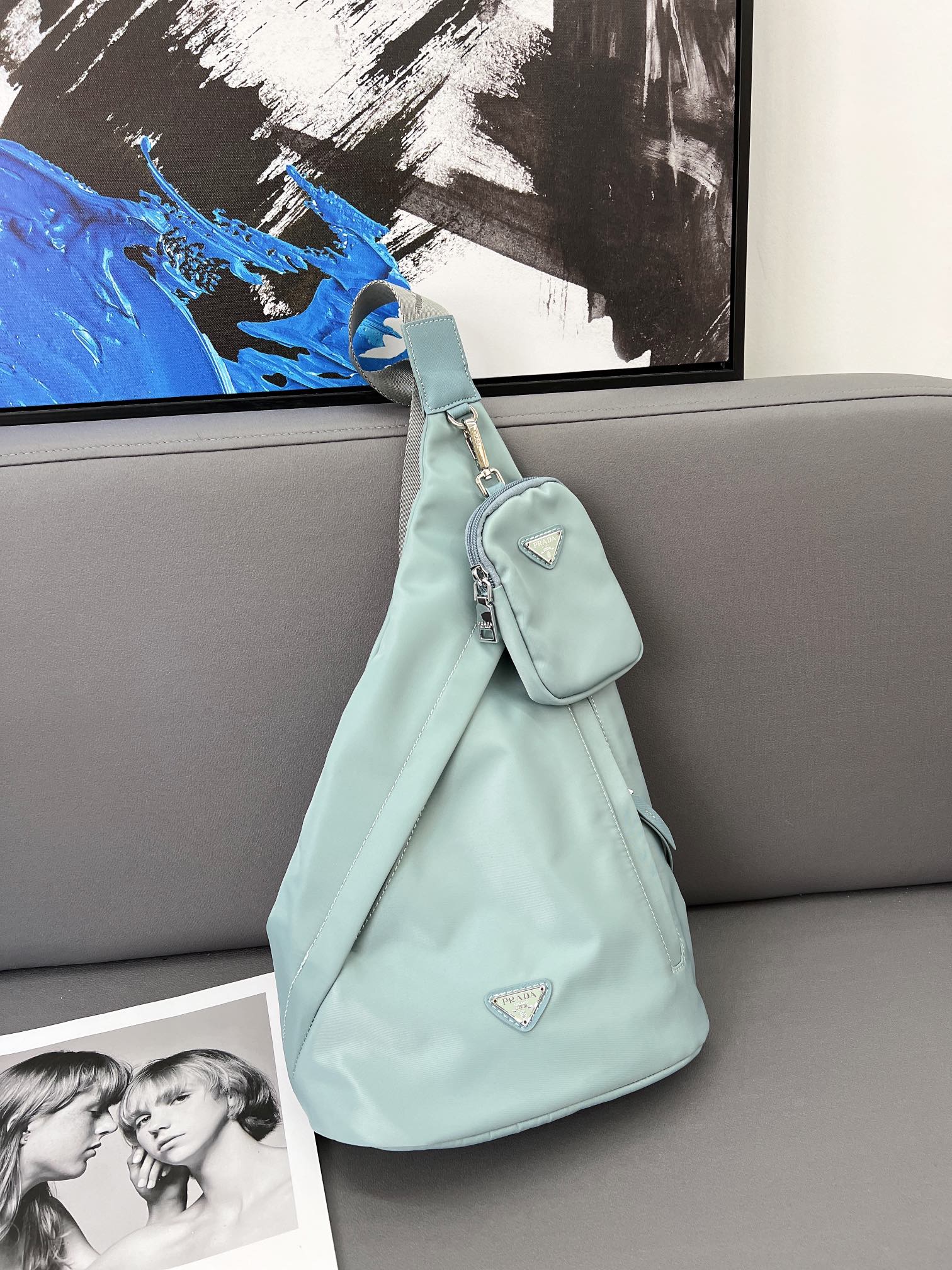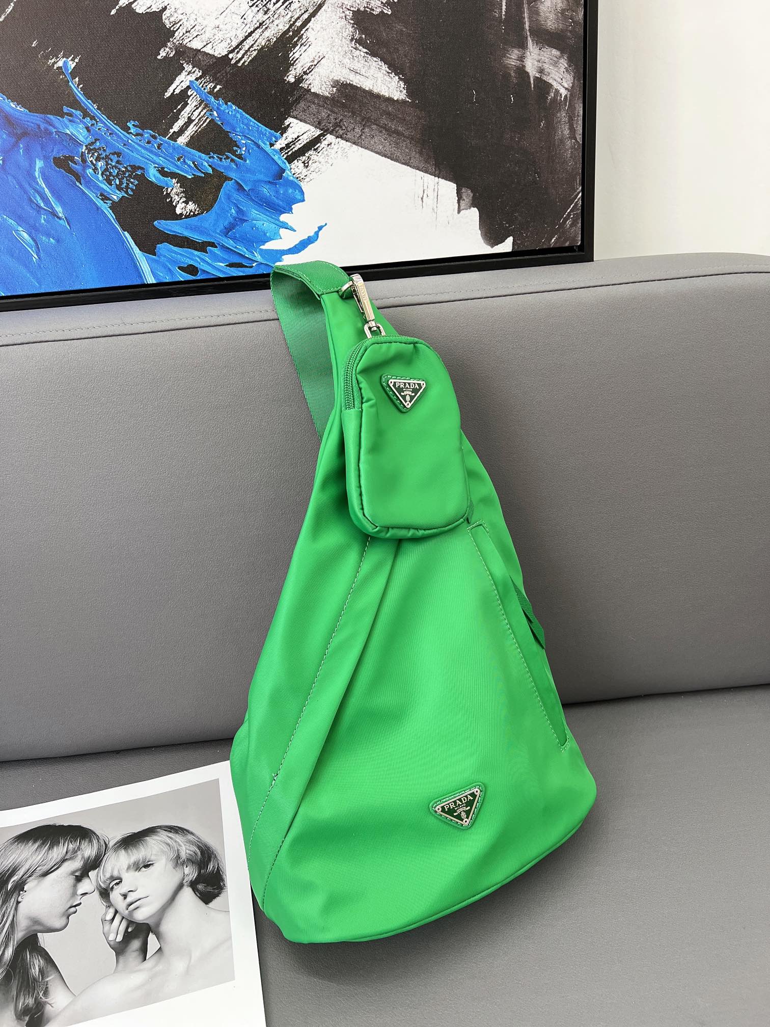 J0 普拉达 Prada Re-Nylon 尼龙布单肩背包 斜挎书包 男女通用斜挎包 采用精湛镶嵌细工,经典百搭 实物拍摄 原厂原版面料 配送小票防尘袋 25 x 40 cm