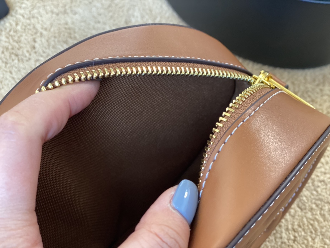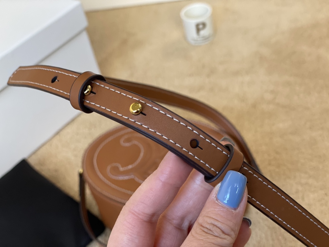 J0 Celine 赛琳 月饼包包 到手背上身敲好看 巴掌大的 Celine 赛琳 月饼包 阔阔耐耐 焦糖色也好适合秋冬 有多个孔可以调节长度部最短可以到腋下长可以放到屁股了 我调到腰的位置刚好 虽然小 但是也挺能装的。 日常的耳机 口红 粉饼 纸巾钥匙都可以同时放!!!但是但是但是 装不下大号手机 因为是硬的包包 很不好拿东西 拉链还会刮手所以 介意这点的一定慎拍哦 尺寸:18*13cm”},”title”:” Celine 赛琳 月饼包包 到手背上身敲好看 巴掌大的 Celine 赛琳 月饼包 阔阔耐耐 焦糖色也好适合秋冬 有多个孔可以调节长度部最短可以到腋下长可以放到屁股了 我调到腰的位置刚好 虽然小 但是也挺能装的。 日常的耳机 口红 粉饼 纸巾钥匙都可以同时放!!!但是但是但是 装不下大号手机 因为是硬的包包 很不好拿东西 拉链还会刮手所以 介意这点的一定慎拍哦 尺寸:18*13cm
