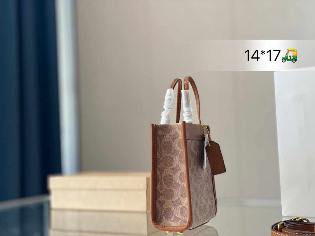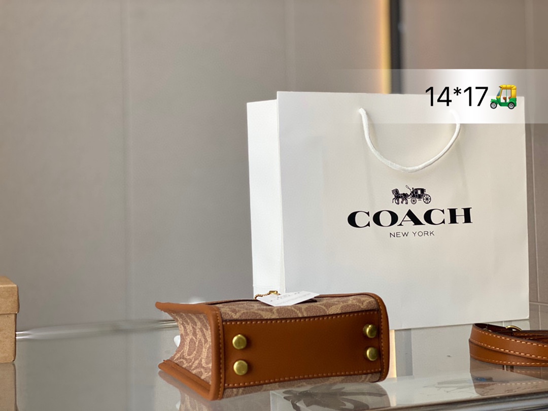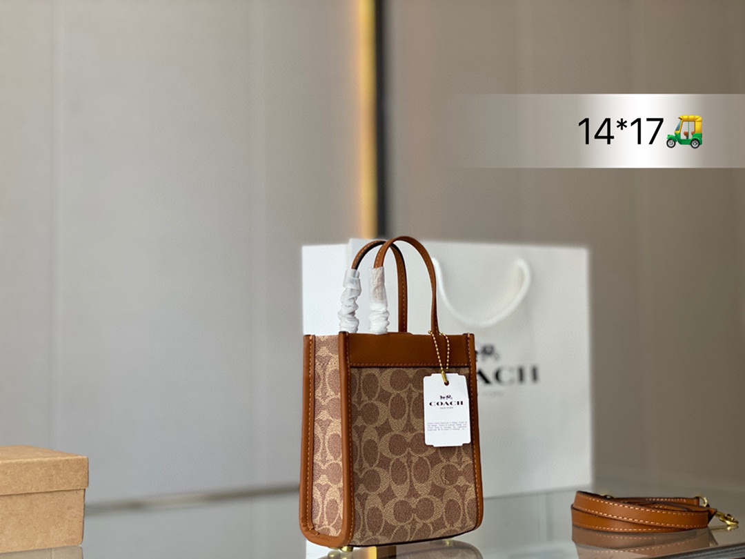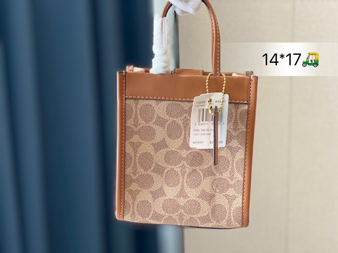 J0 Mini 可爱的蔻驰小包包~ Mini cashin Tote爨 日常的穿搭一定是少不了吸睛33的小包包啦 所以要给大家安利@ Coach蔻驰的这款 Mini Cashin ote 设计灵感源自 Coach在60年代问世的 Cashin Carry 传承了精湛的工艺和不过时的复古质感,经典又不 失可爱 主要是这款真的超高性价比,2k+到手,可以当很 多一线大牌,比如FEND,LV, Celine 赛琳 的类似款平替 尺寸14*17cm 折叠礼盒包装
