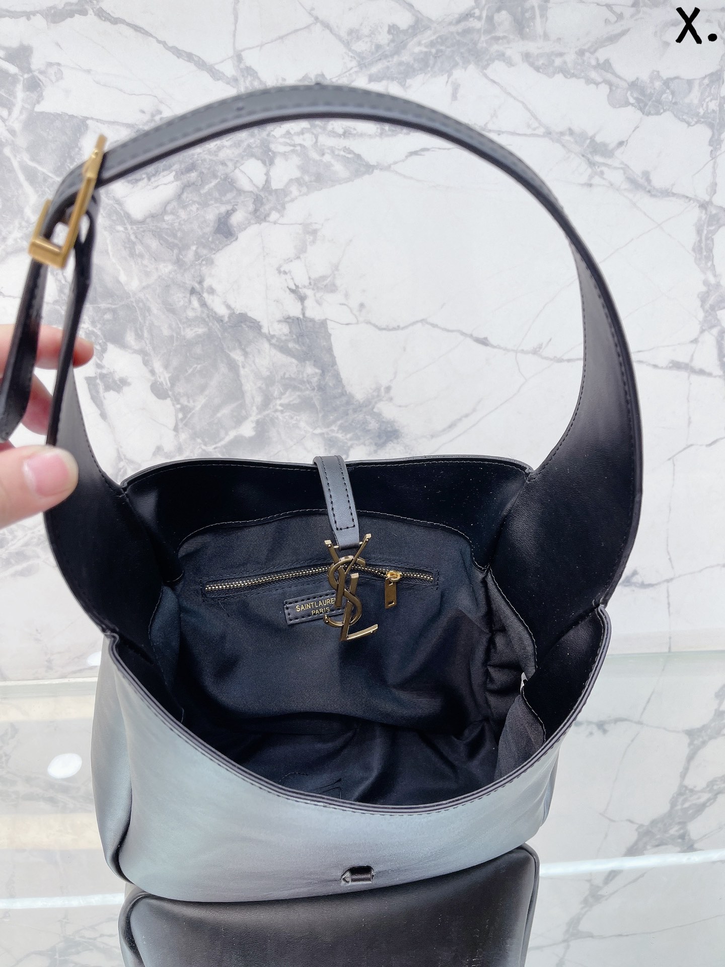 J0 Saint Laurent 圣罗兰 YSL Hobo腋下 水桶包 Saint Laurent 圣罗兰 家当之无愧的入门经典款 超级耐燥这个皮质真的是我最爱的皮质之一不怕刮牛皮的纹理也有质感 相比金链我更喜欢链非常耐看 链条收包里可以完美当成手包一包两用简直赚到啦 作为一个超大卡包不是很能装是肯定的不能装太厚的东西出门带几张卡带个口红粉饼是没问题的28 26cm