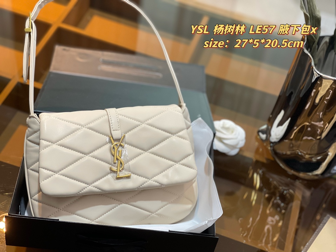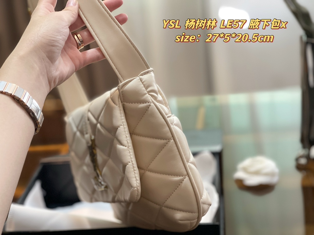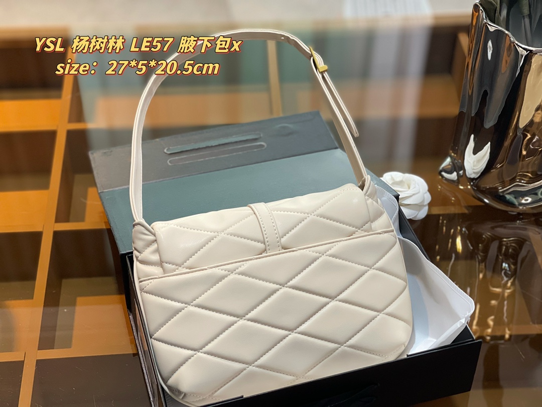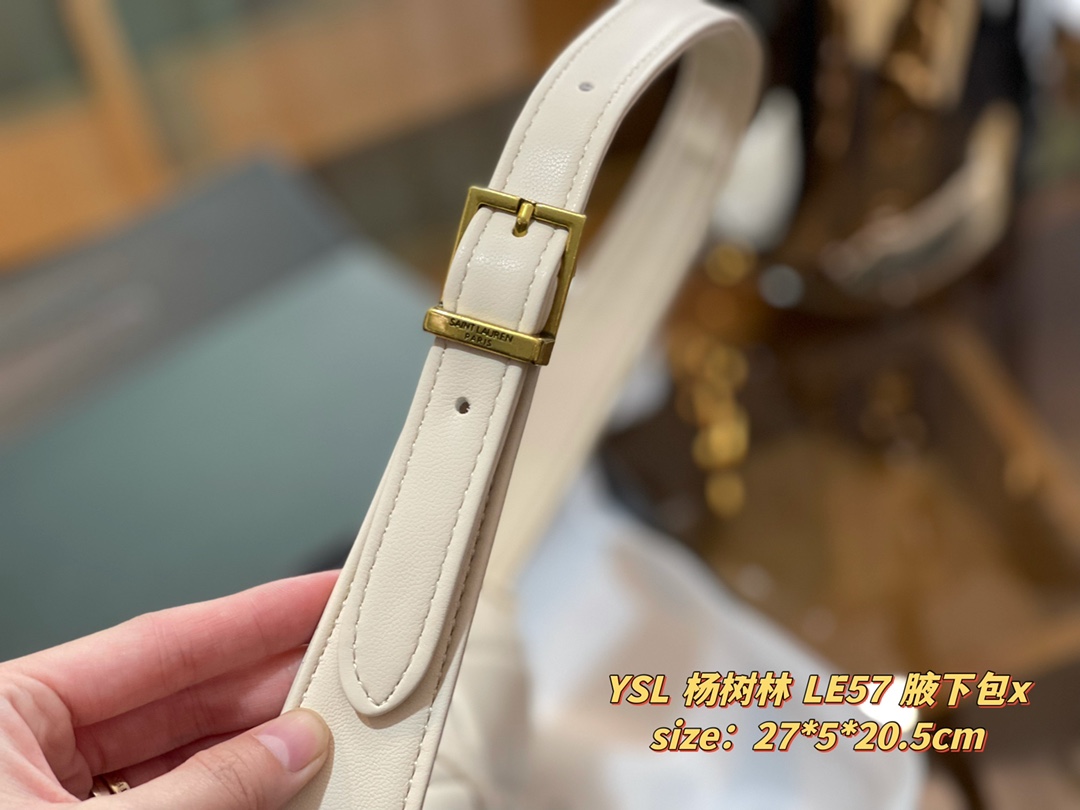 J0 Saint Laurent 圣罗兰 YSL LE57腋下包 SAINT LAURENTLE57 以纽约第57街命名 细腻光滑的小羊皮材质搭配梯形廓形设计 包包整体蓬松有型 虽然是腋下包但容量也相当nice 随意又精致特别好搭配 尺寸:27*5*20.5cm
