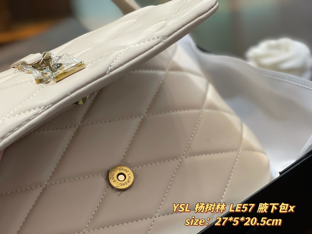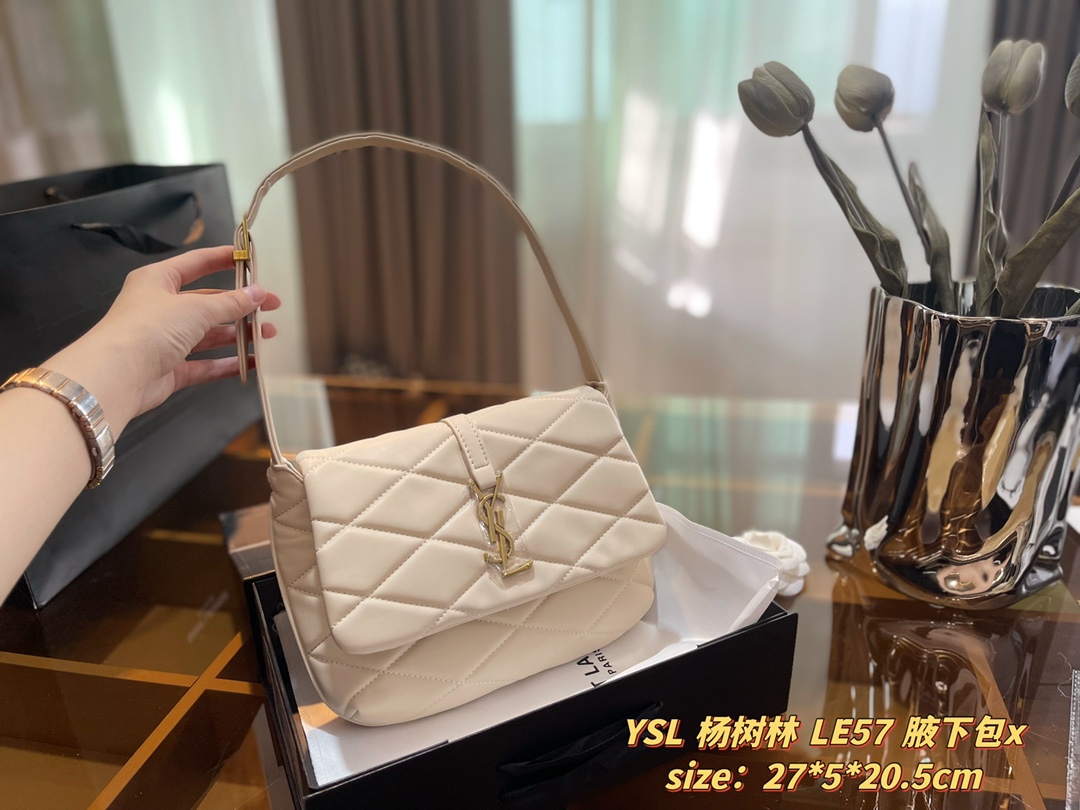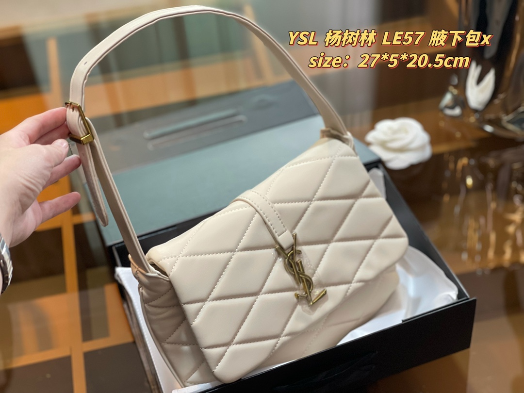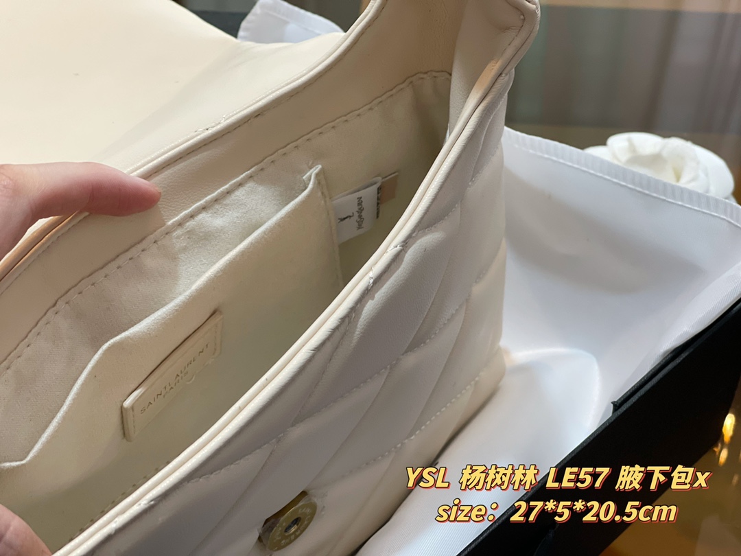 J0 Saint Laurent 圣罗兰 YSL LE57腋下包 SAINT LAURENTLE57 以纽约第57街命名 细腻光滑的小羊皮材质搭配梯形廓形设计 包包整体蓬松有型 虽然是腋下包但容量也相当nice 随意又精致特别好搭配 尺寸:27*5*20.5cm