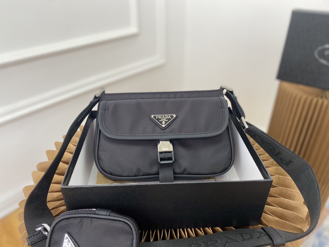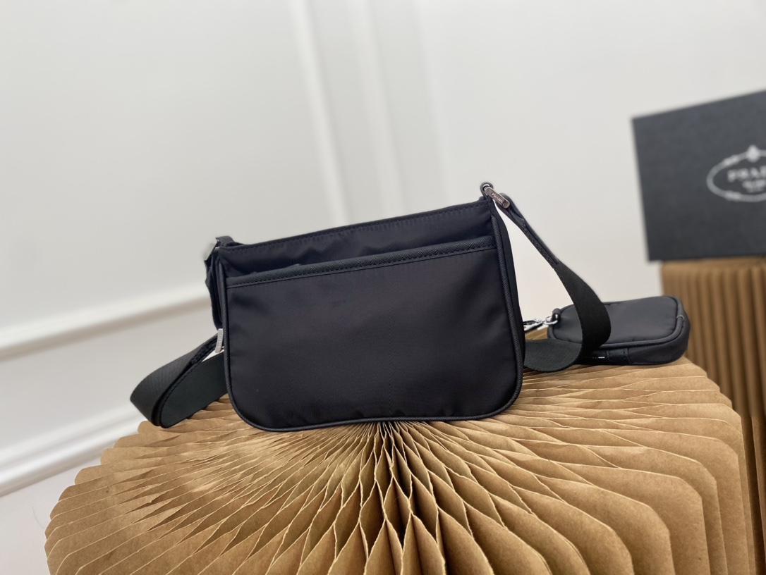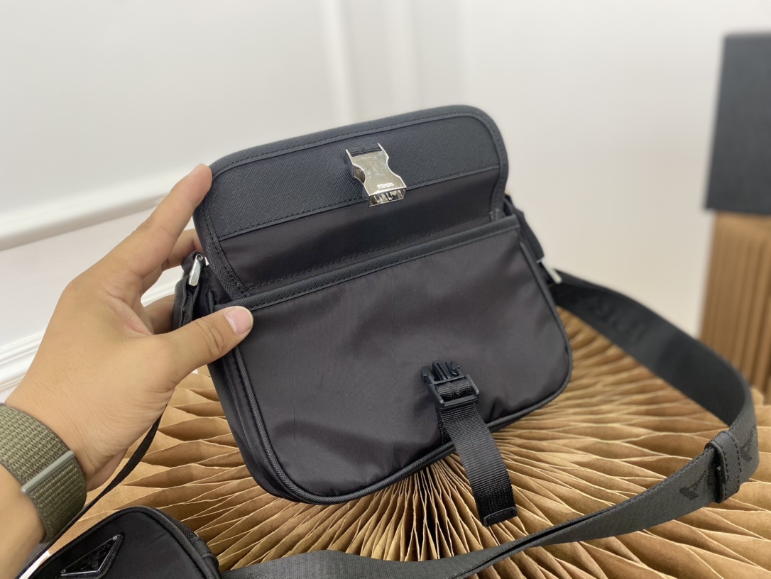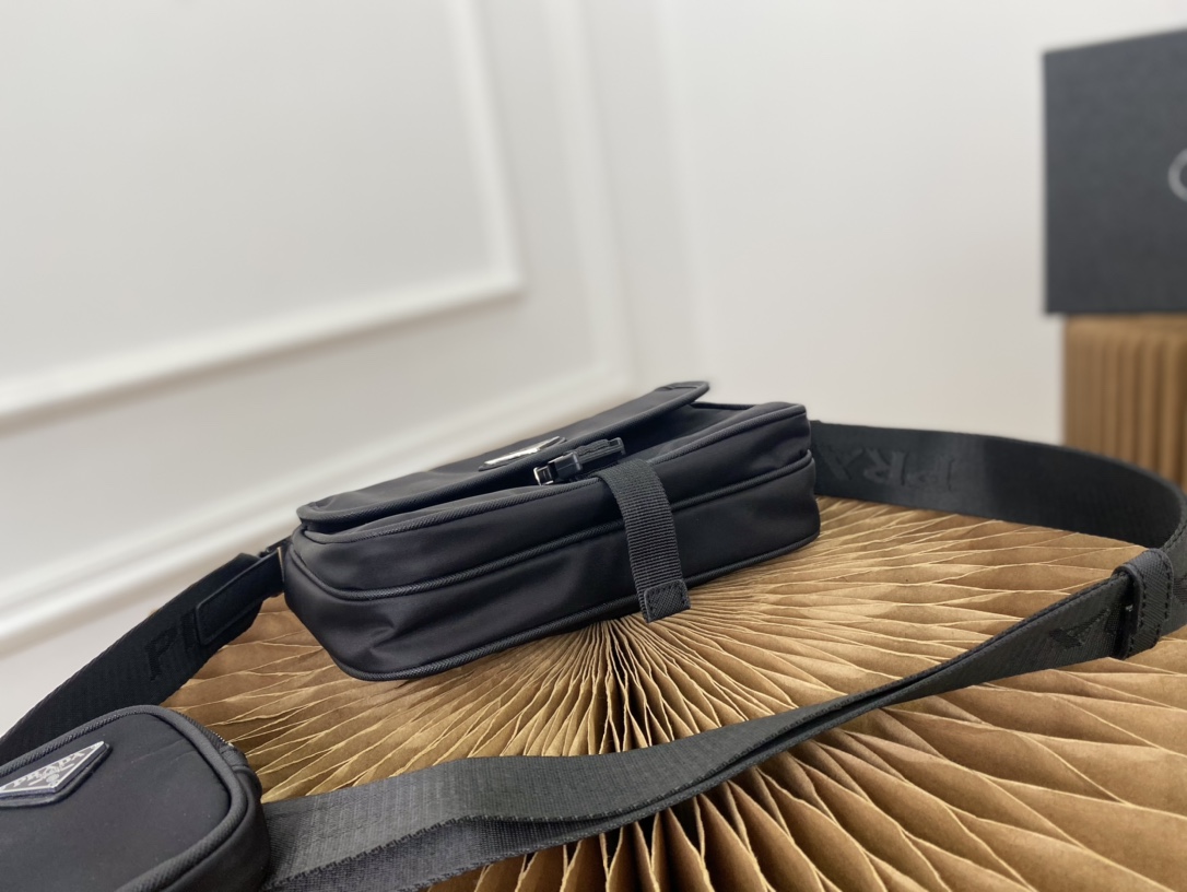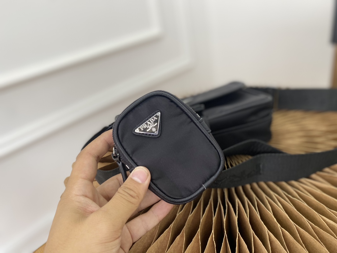 J5 普拉达 Prada Saffiano尼龙布三角标二合一邮差包 单肩斜挎包 采用精湛镶嵌细工,经典百搭 实物拍摄 原厂原版面料 2VH133 配送小票防尘袋 礼盒 23 x 15 cm