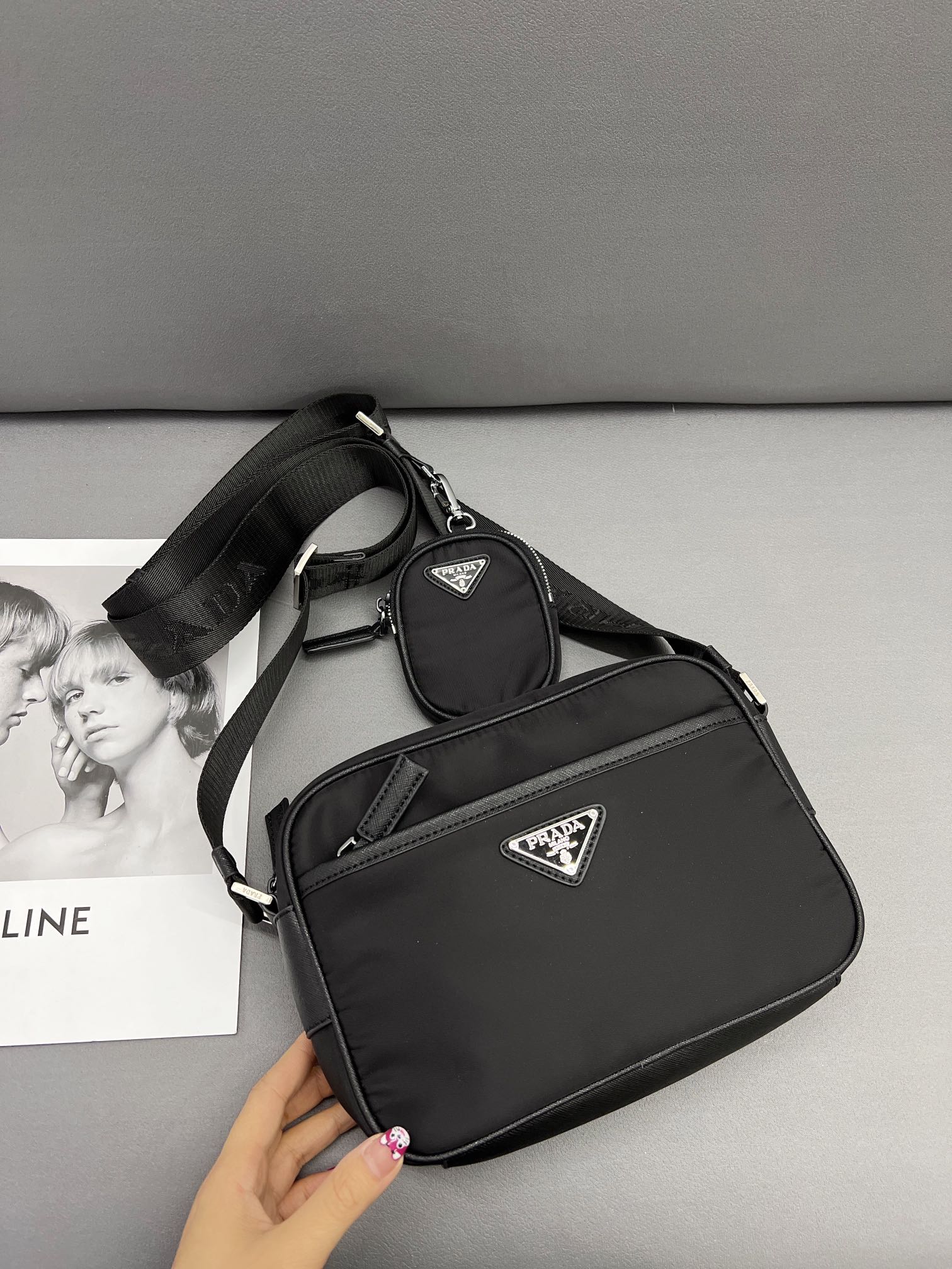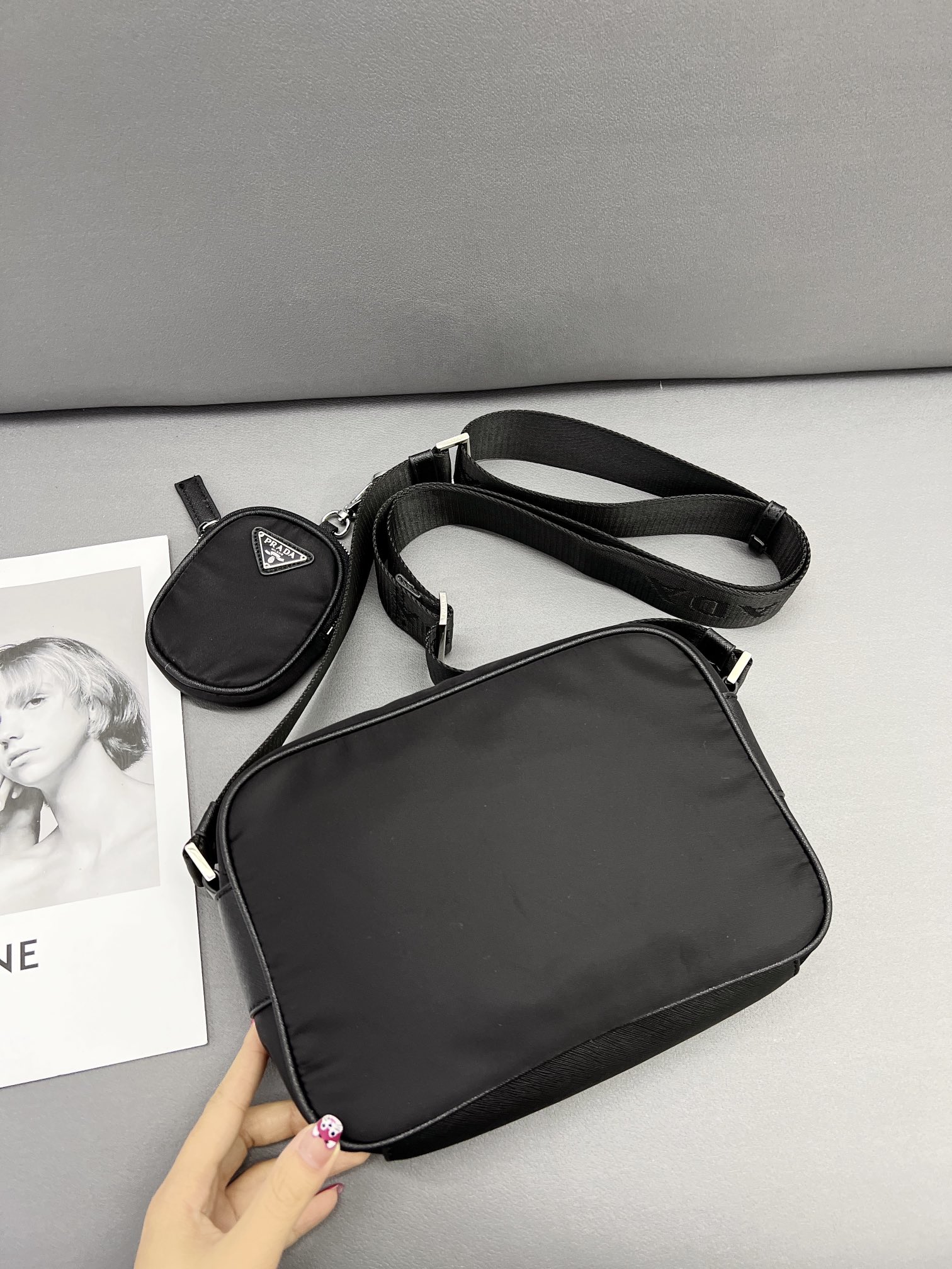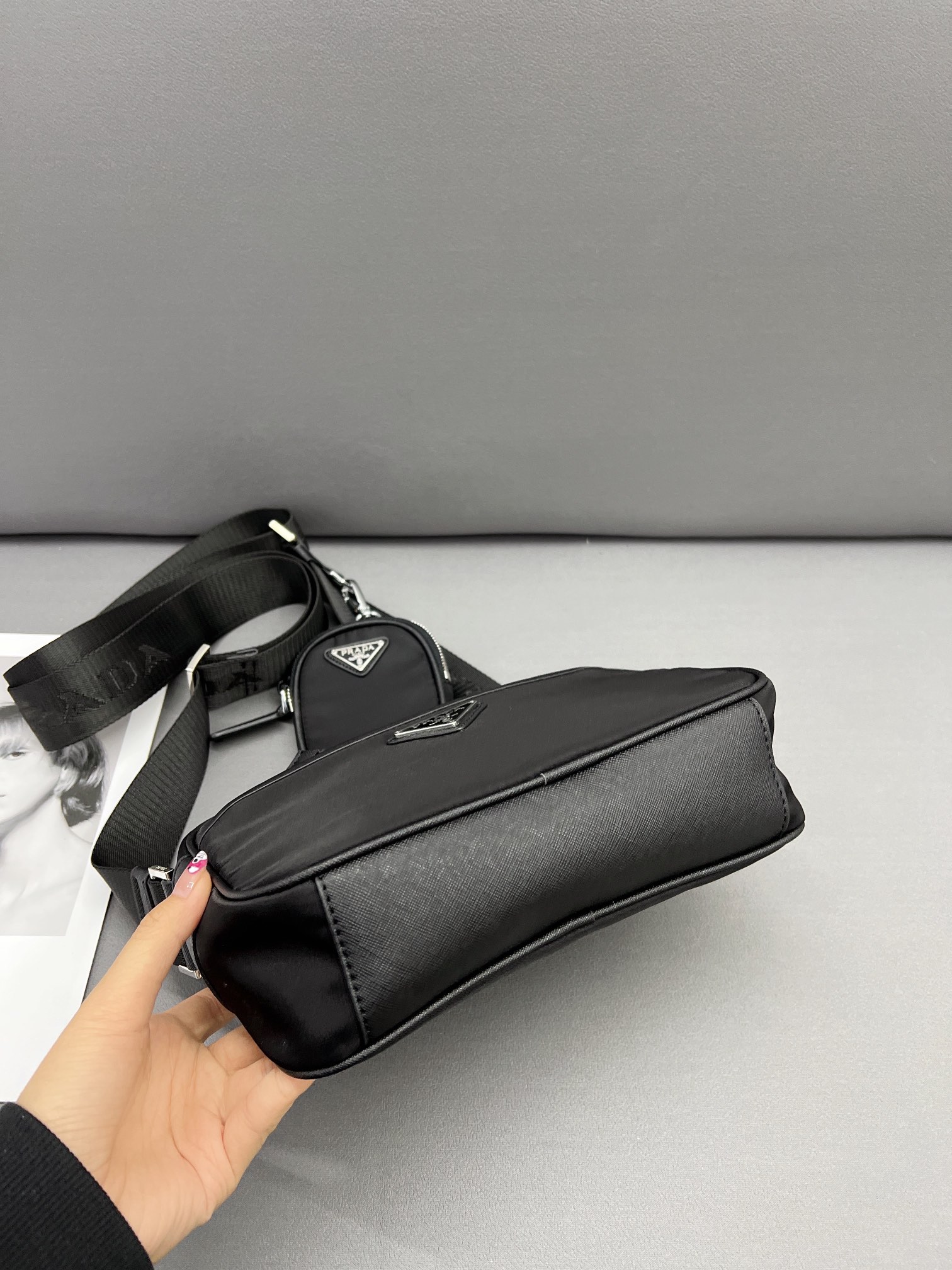 J5 普拉达 Prada Saffiano尼龙布二合一邮差包 单肩斜挎包 采用精湛镶嵌细工,经典百搭 实物拍摄 原厂原版面料 2VH048 配送小票防尘袋 礼盒 24 x 16 cm