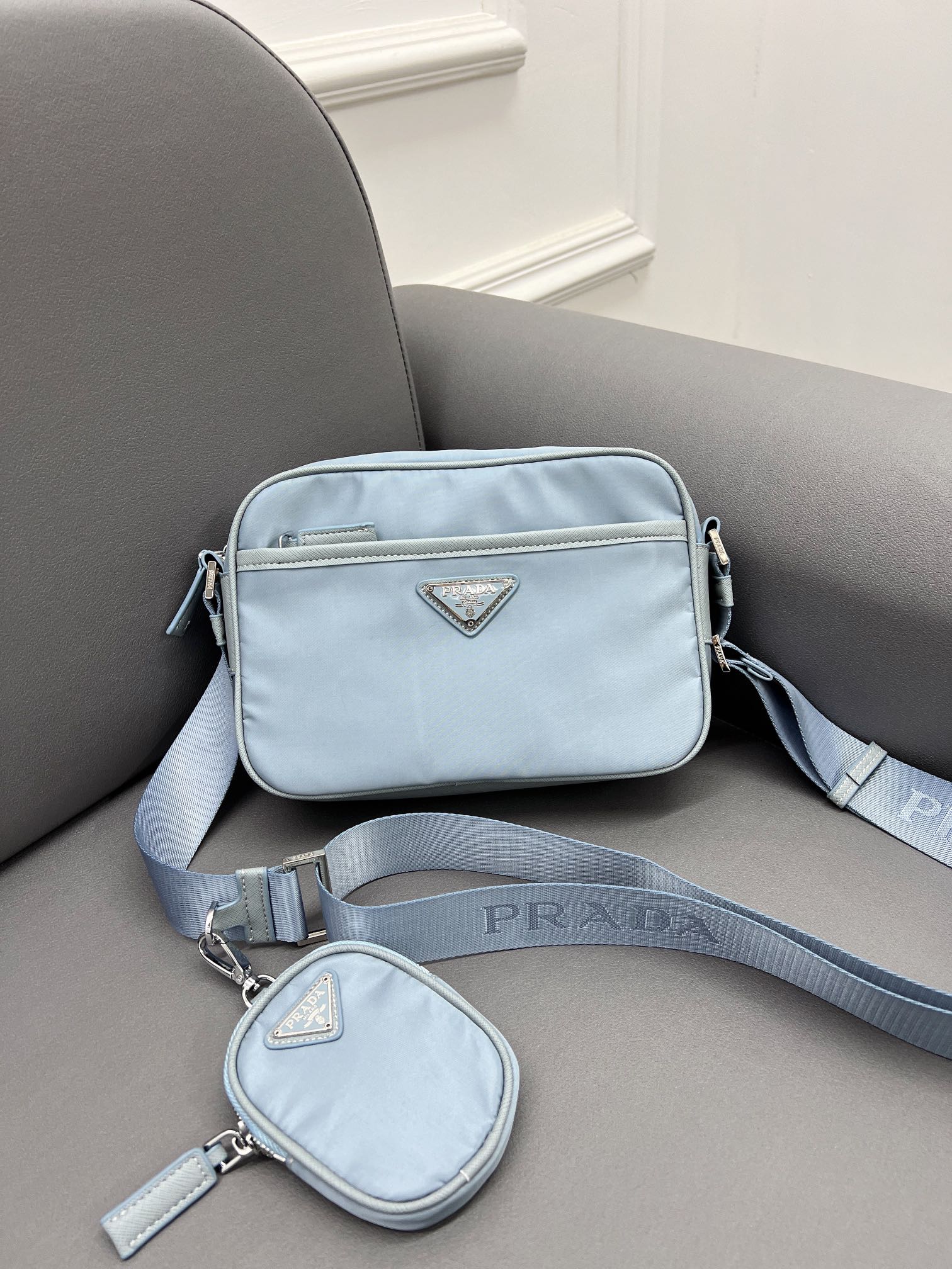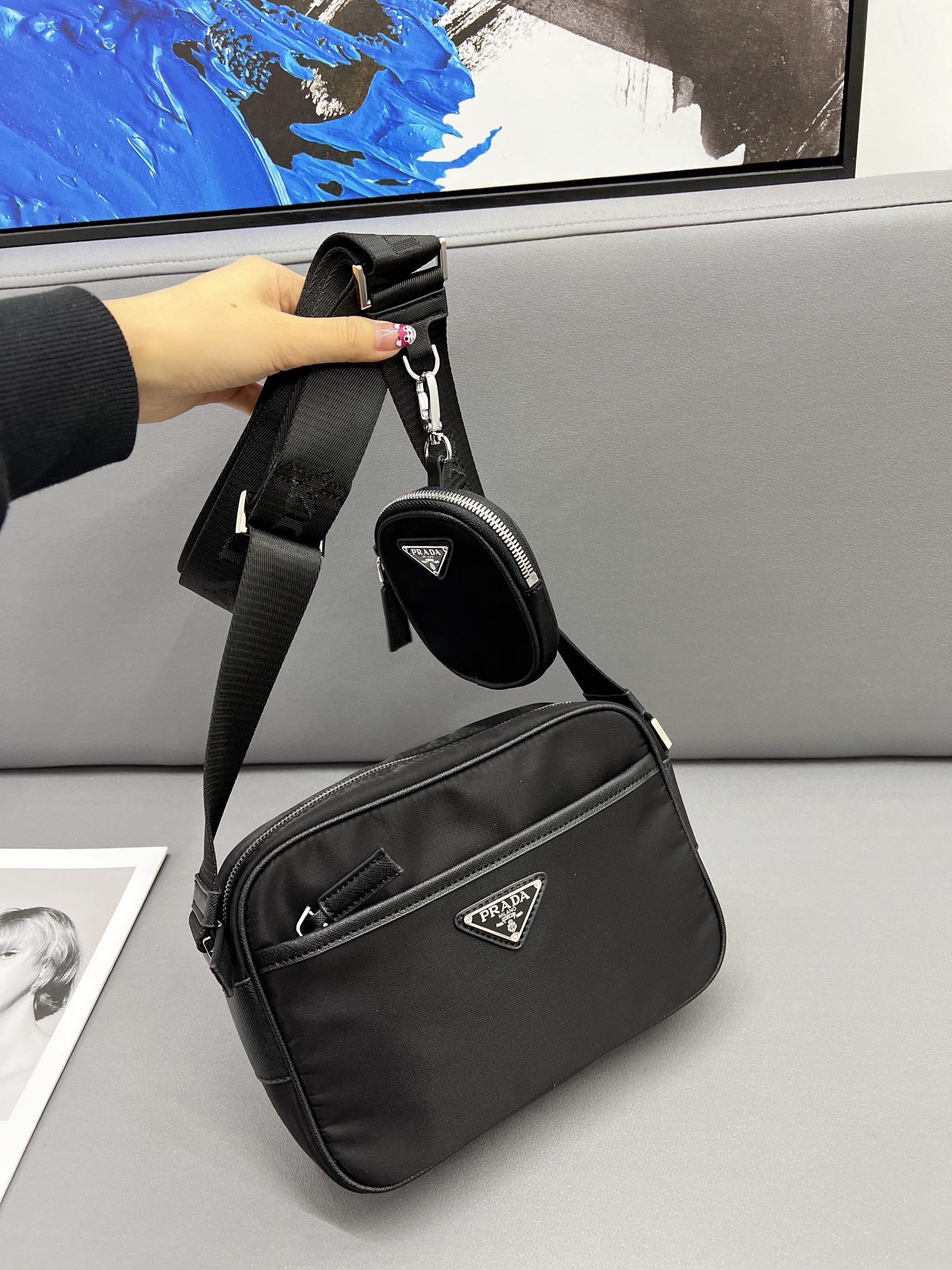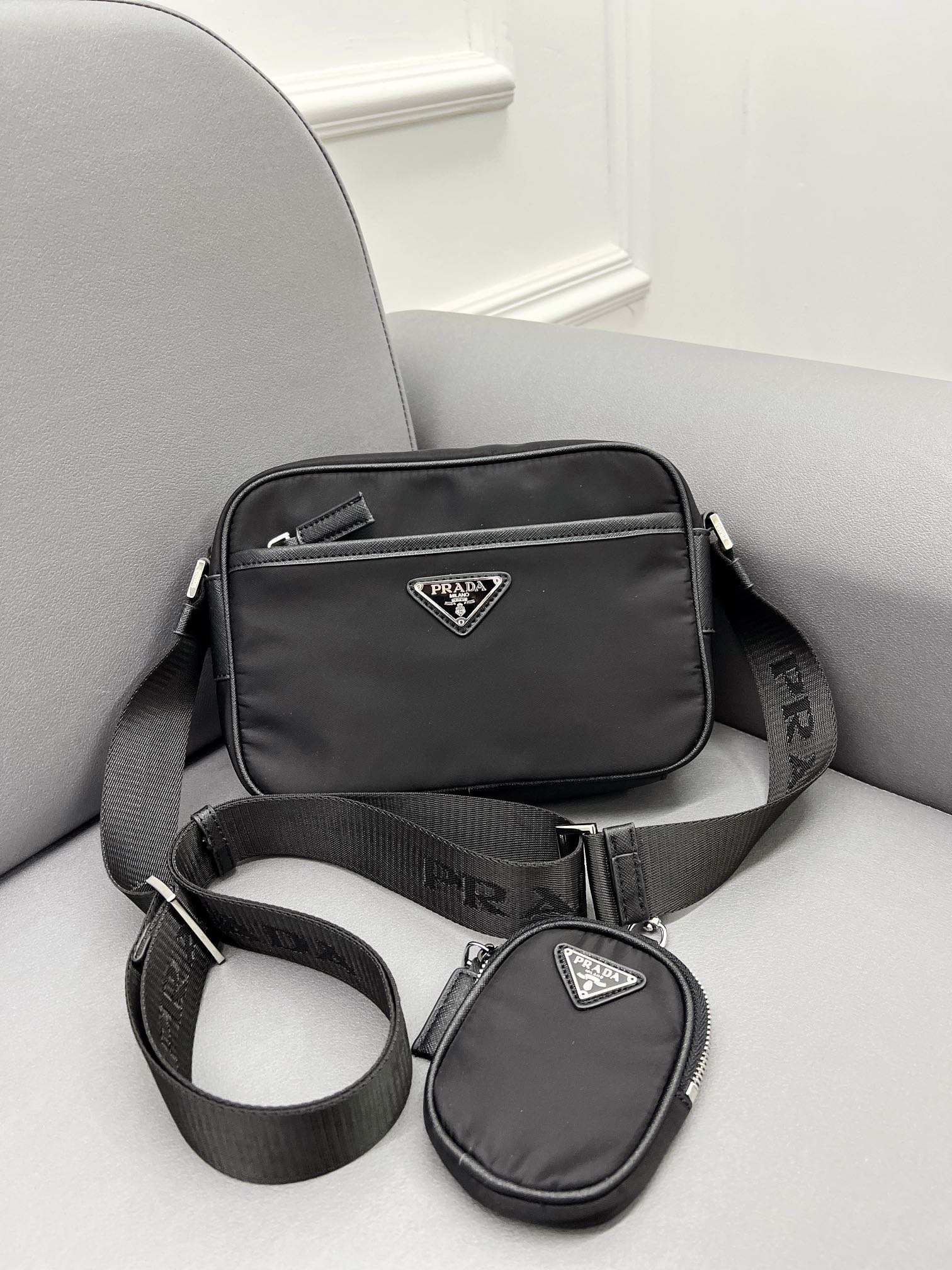 J5 普拉达 Prada Saffiano尼龙布二合一邮差包 单肩斜挎包 采用精湛镶嵌细工,经典百搭 实物拍摄 原厂原版面料 2VH048 配送小票防尘袋 礼盒 24 x 16 cm