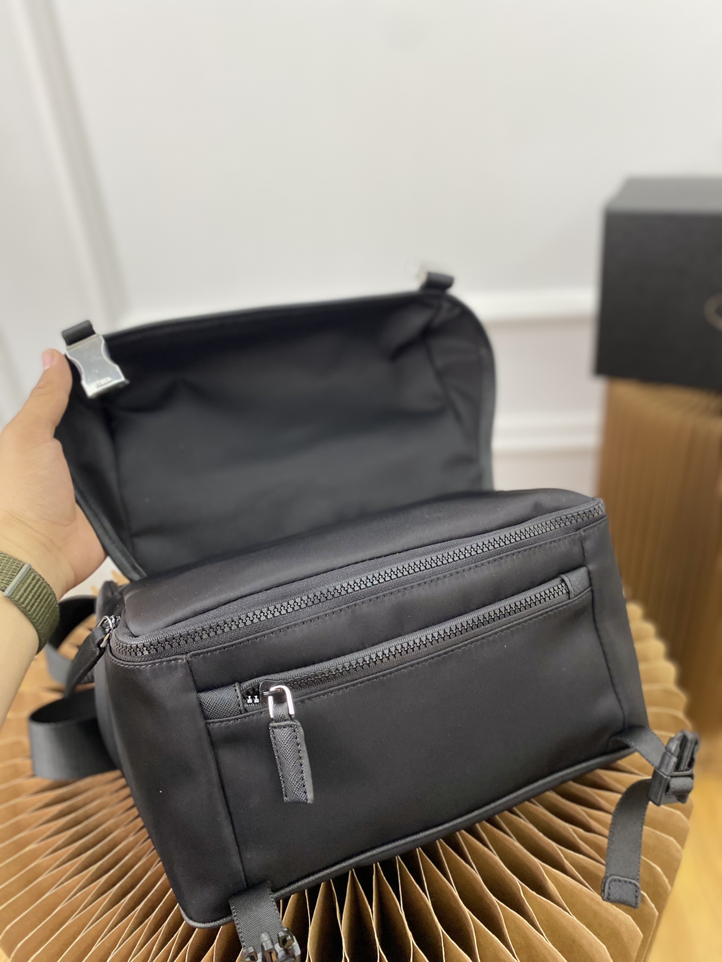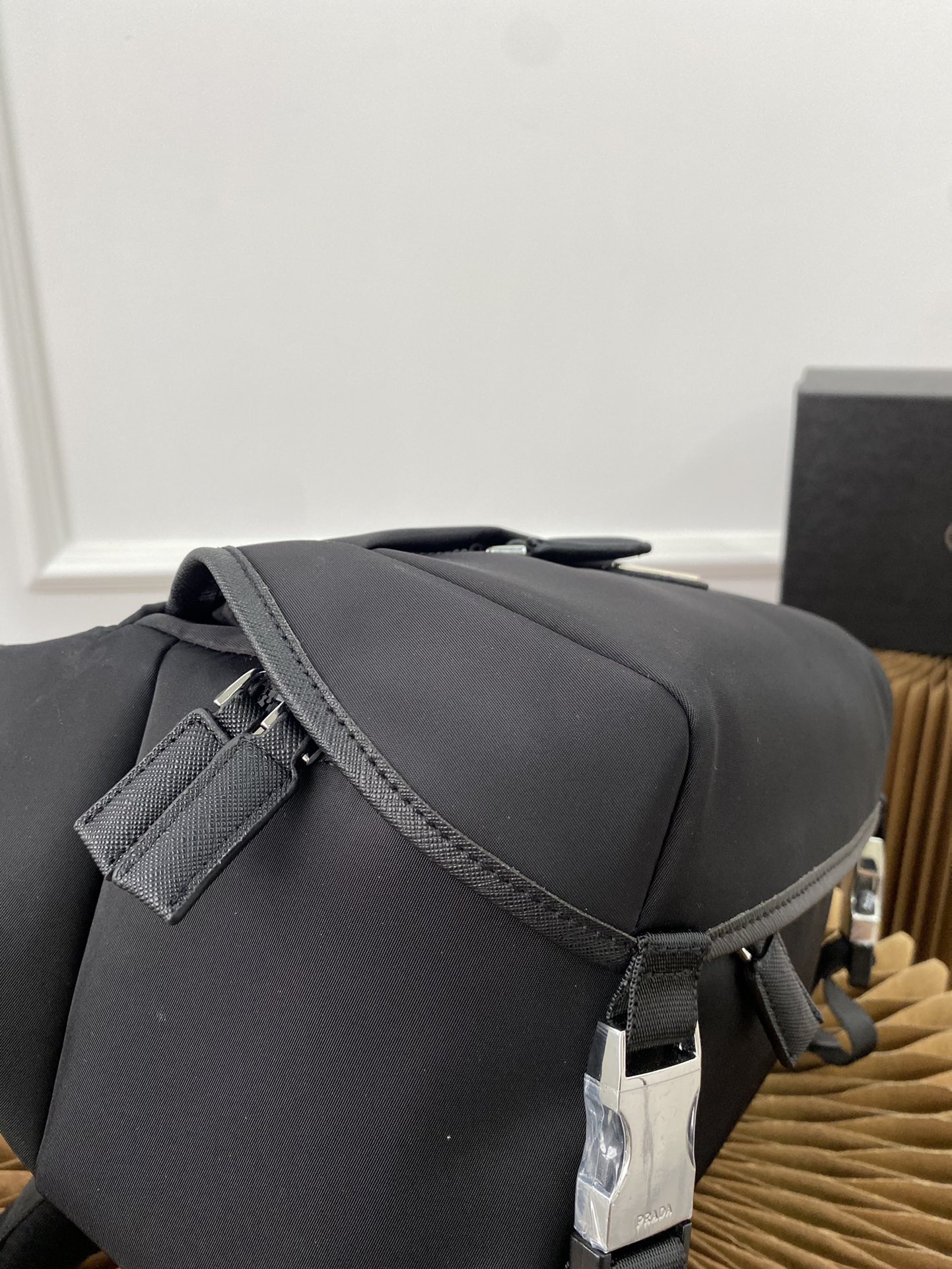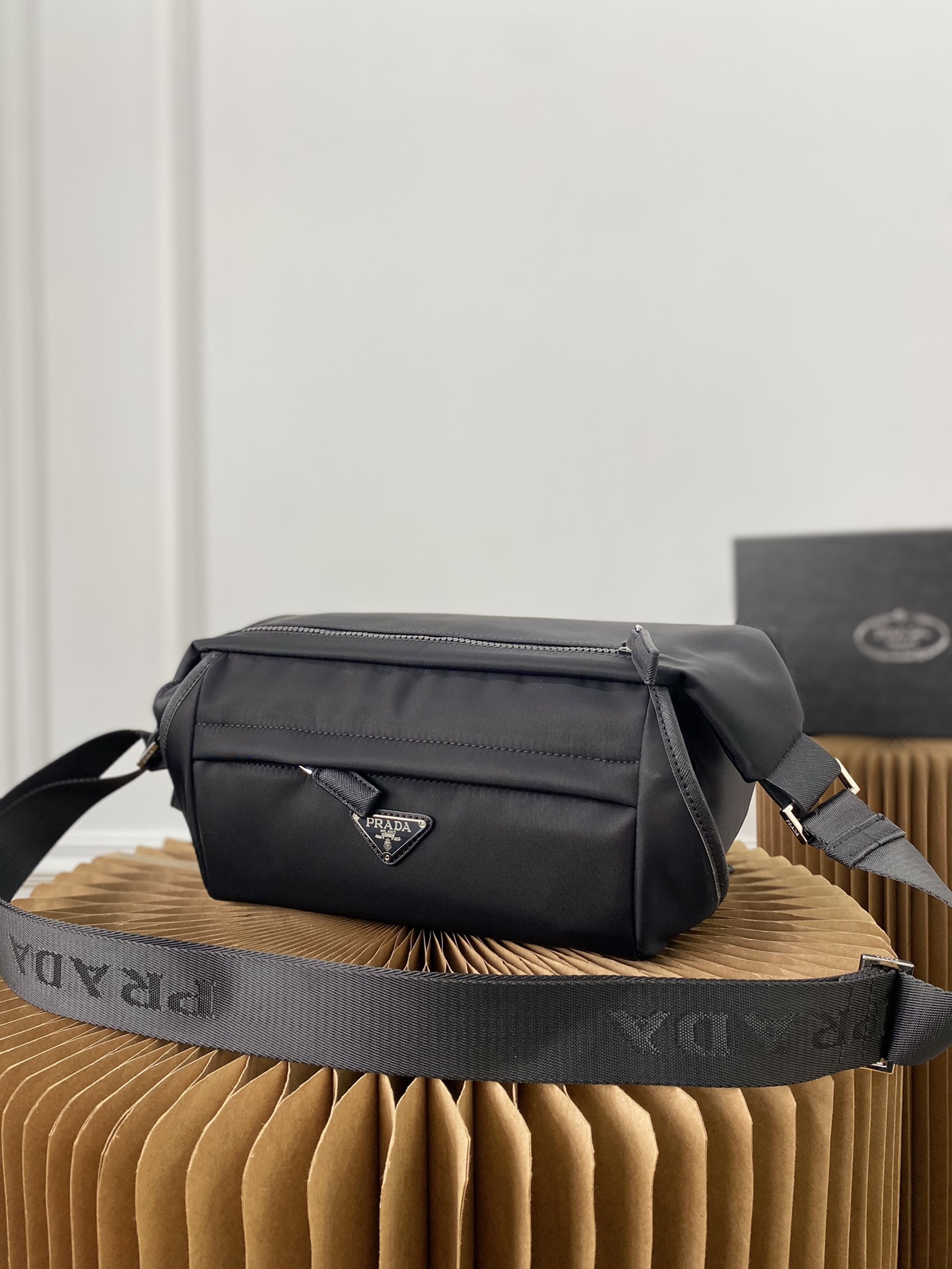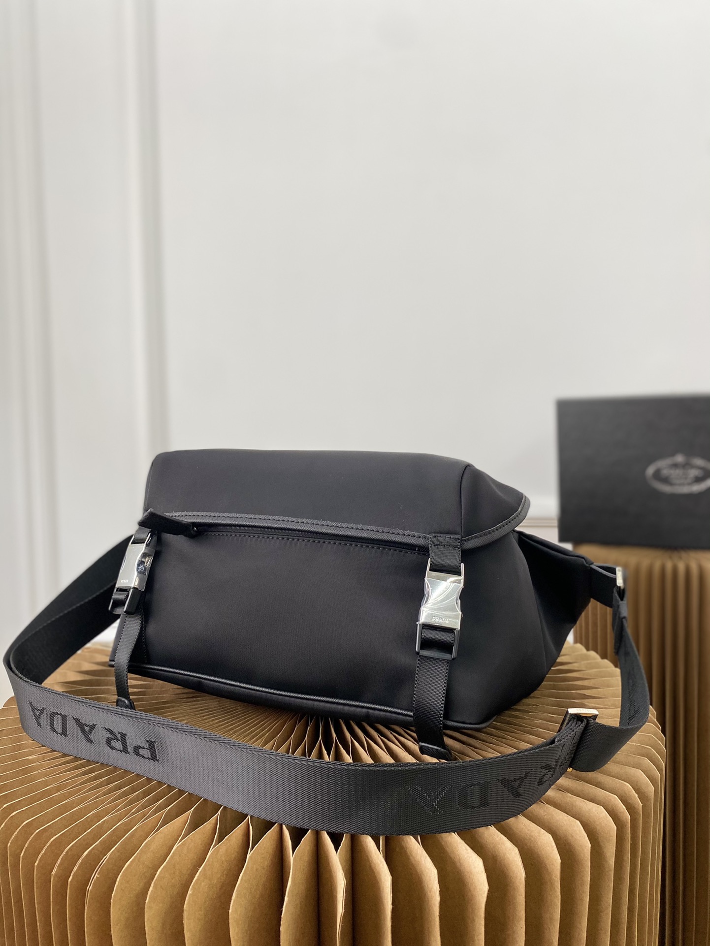 J5 普拉达 Prada Saffiano web 单肩背包 挂肩袋大腰包 胸包 尼龙布邮差包 男士单肩斜挎包 采用精湛镶嵌细工,经典百搭 实物拍摄 原厂原版面料 2VH9949 配送小票防尘袋 29 x 15 cm