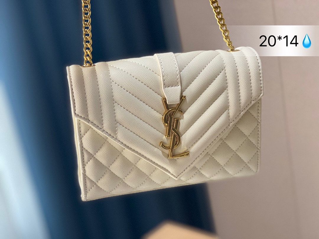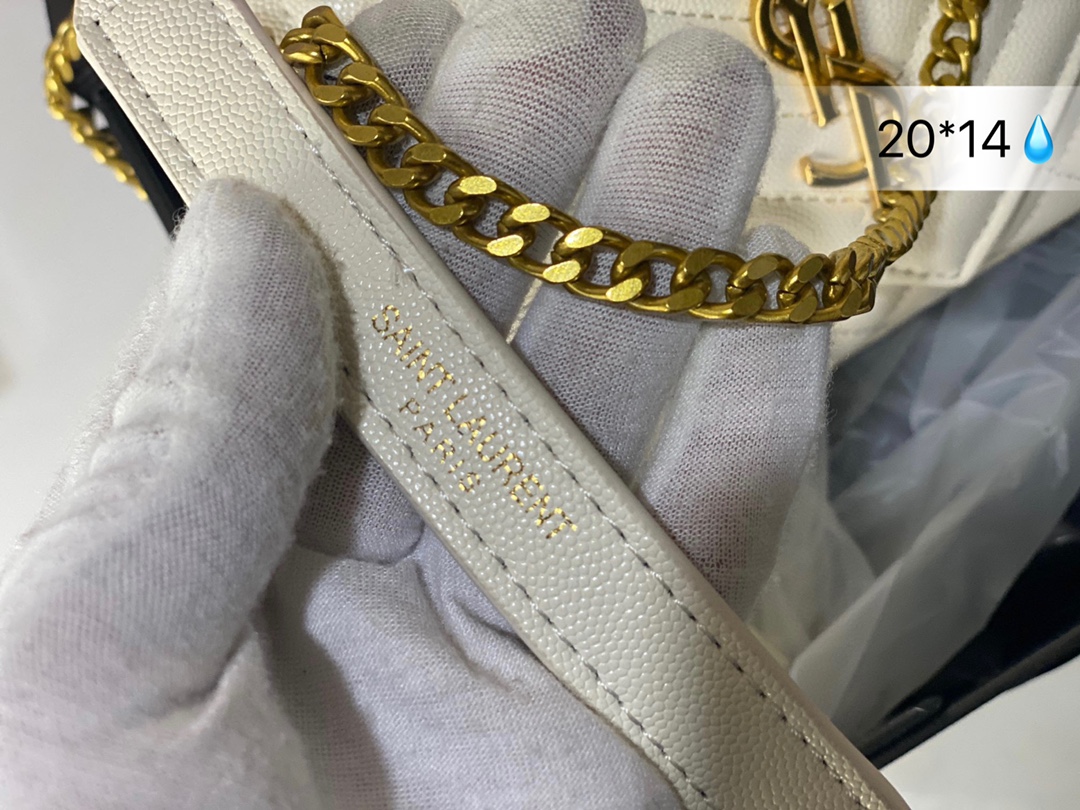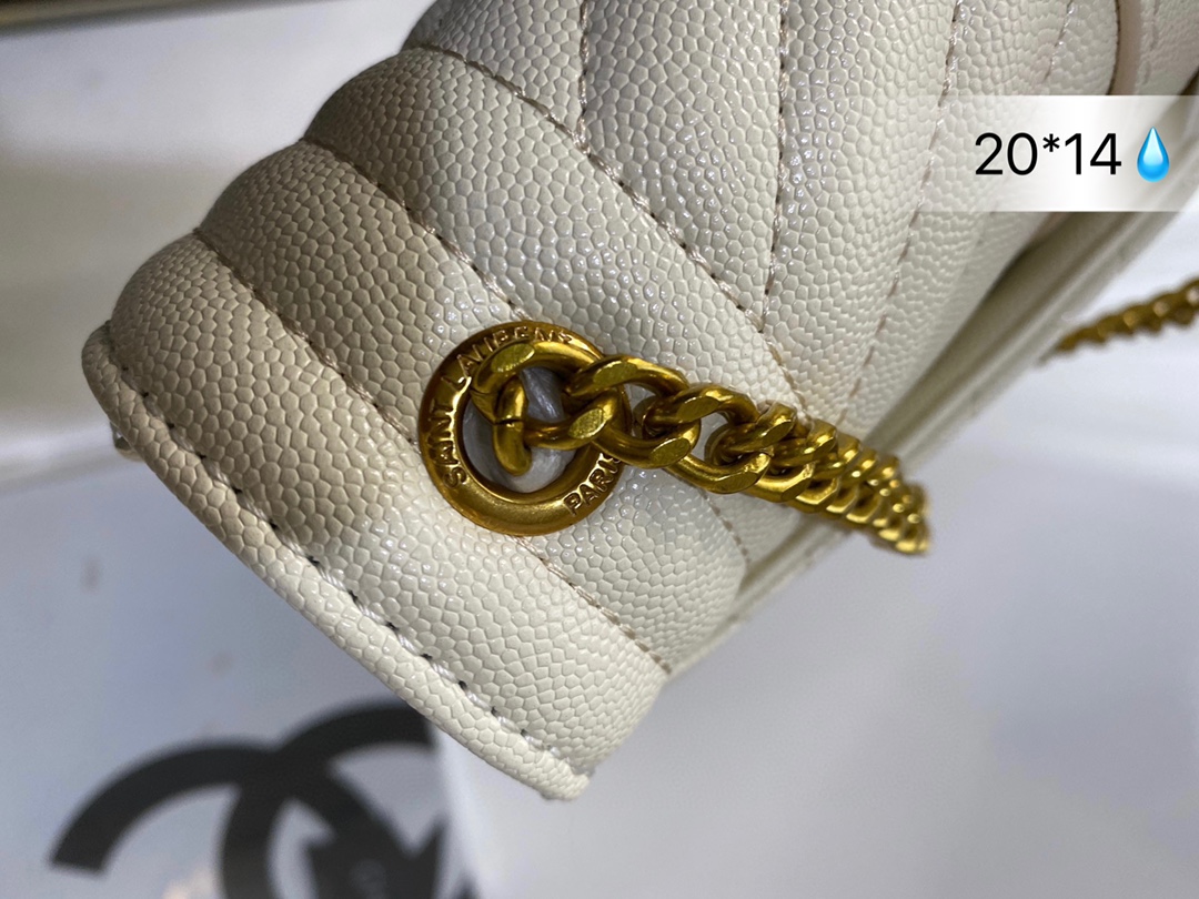 J5 Saint Laurent 圣罗兰 YSL WOC 鱼子酱牛皮 链条包信封包 Saint Laurent 圣罗兰 家当之无愧的入门经典款 超级耐燥这个皮质真的是我最爱的皮质之一不怕刮牛皮的纹理也有质感 相比金链我更喜欢链非常耐看 链条收包里可以完美当成手包一包两用简直赚到啦 作为一个超大卡包不是很能装是肯定的不能装太厚的东西出门带几张卡带个口红粉饼是没问题的20*14cm 配盒