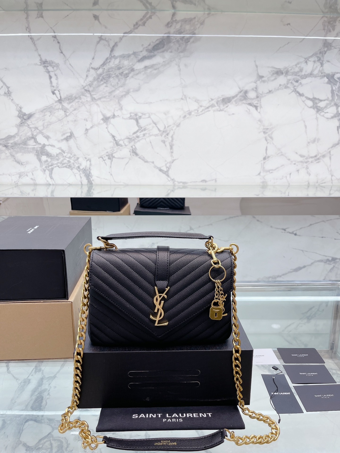 K0 原版品质 礼盒包装 Saint Laurent 圣罗兰 YSL 圣罗兰V格 邮差包牛皮 SL西班牙进口原版皮COLLEGE邮差包 原版粗旷鎏金链条 标签S*int Laurent 链条包,Saint Laurent 圣罗兰 YSL 专柜永恒经典同步款,来自最新一季的绝妙设计,包身廓形类似邮差,经典的monogram logo点缀,超大容量, 五金更是特别,工序非常复杂,给你们不一样的视觉效果尺寸:25 18cm