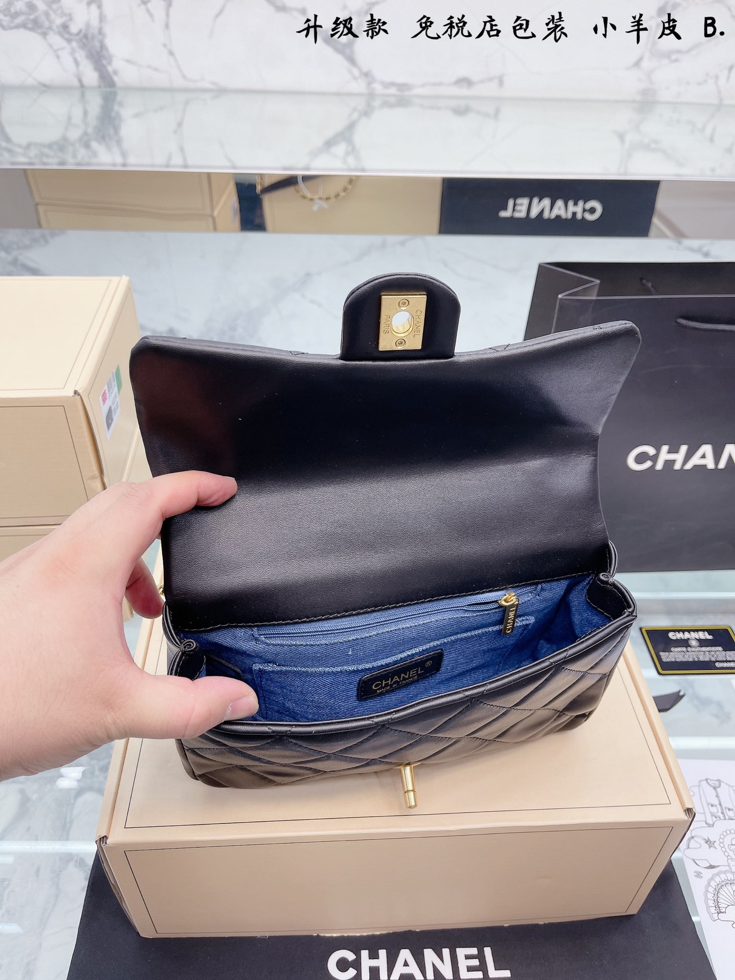 K0 小羊皮 升级款 免税店包装 Chanel 香奈儿 2022CF包 超火爆时尚单品 高版本 做工精细 进口五金 包身采用原厂定制牛仔布 让你无论是夏天还是冬天都能背上它出门 是不是性价比超级高 随便凹造型都是美美哒的街拍 酷到爆炸尺寸 23 14cm 新包装
