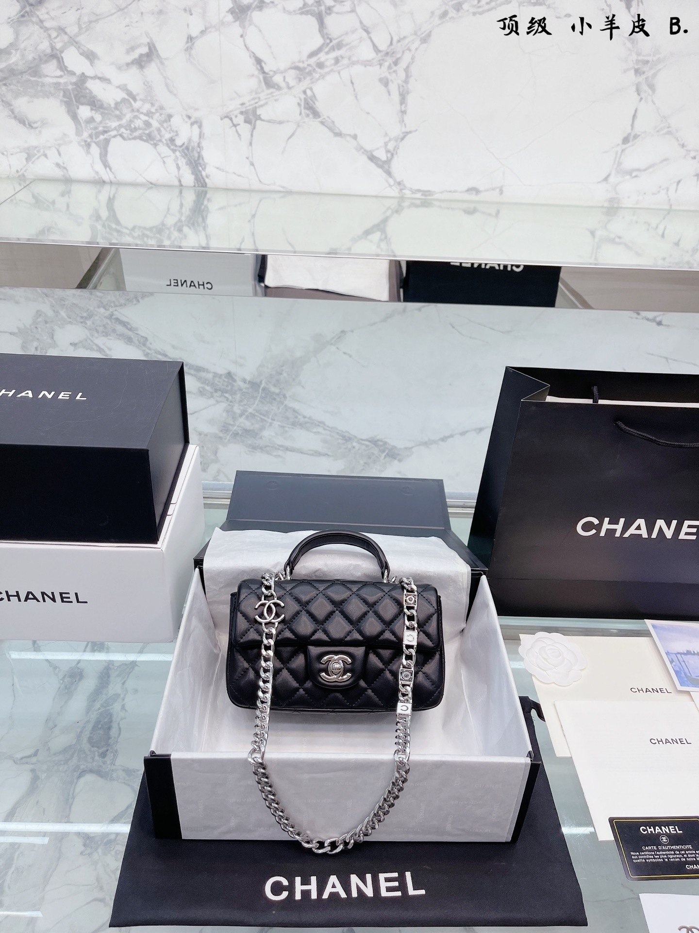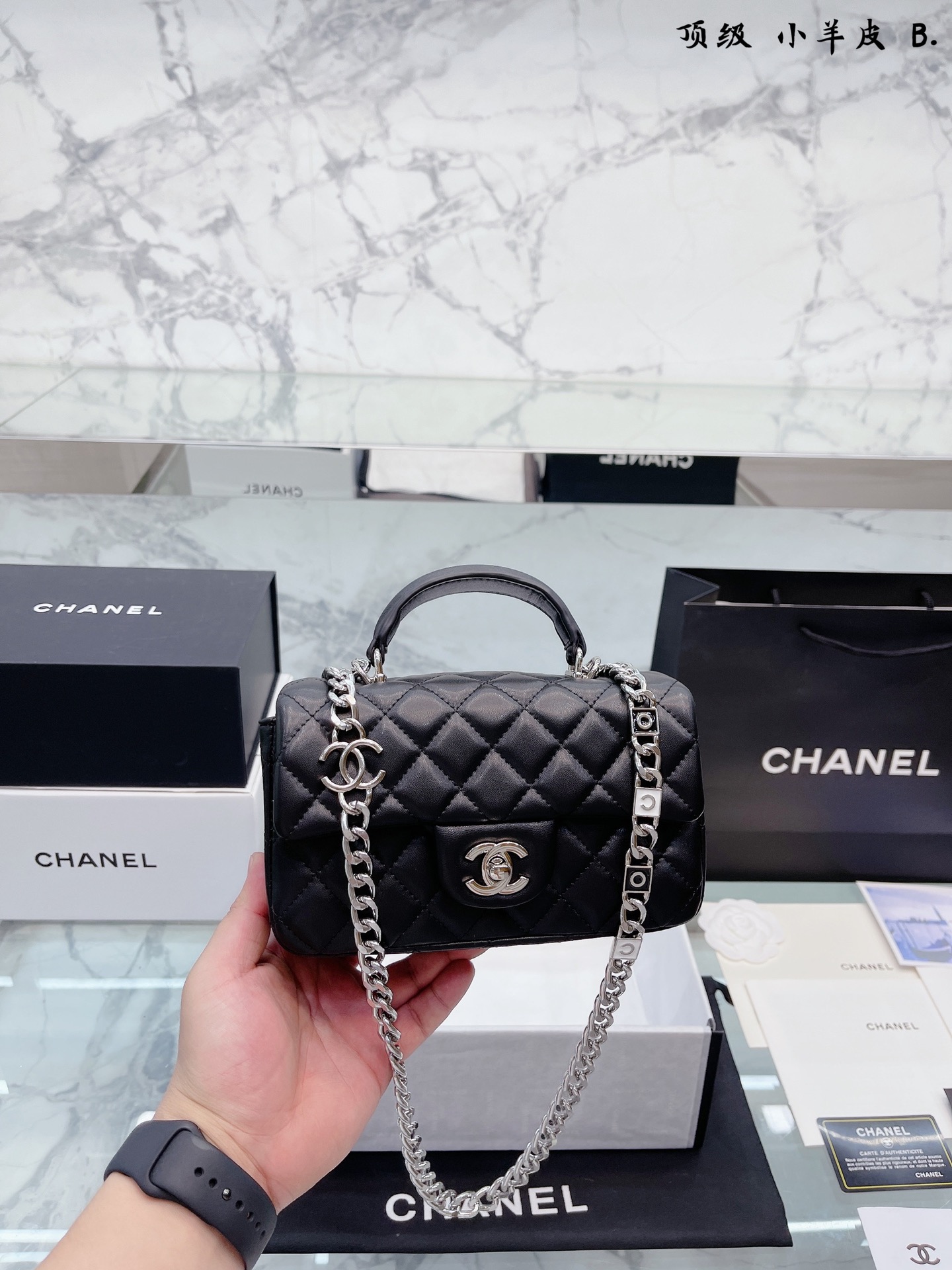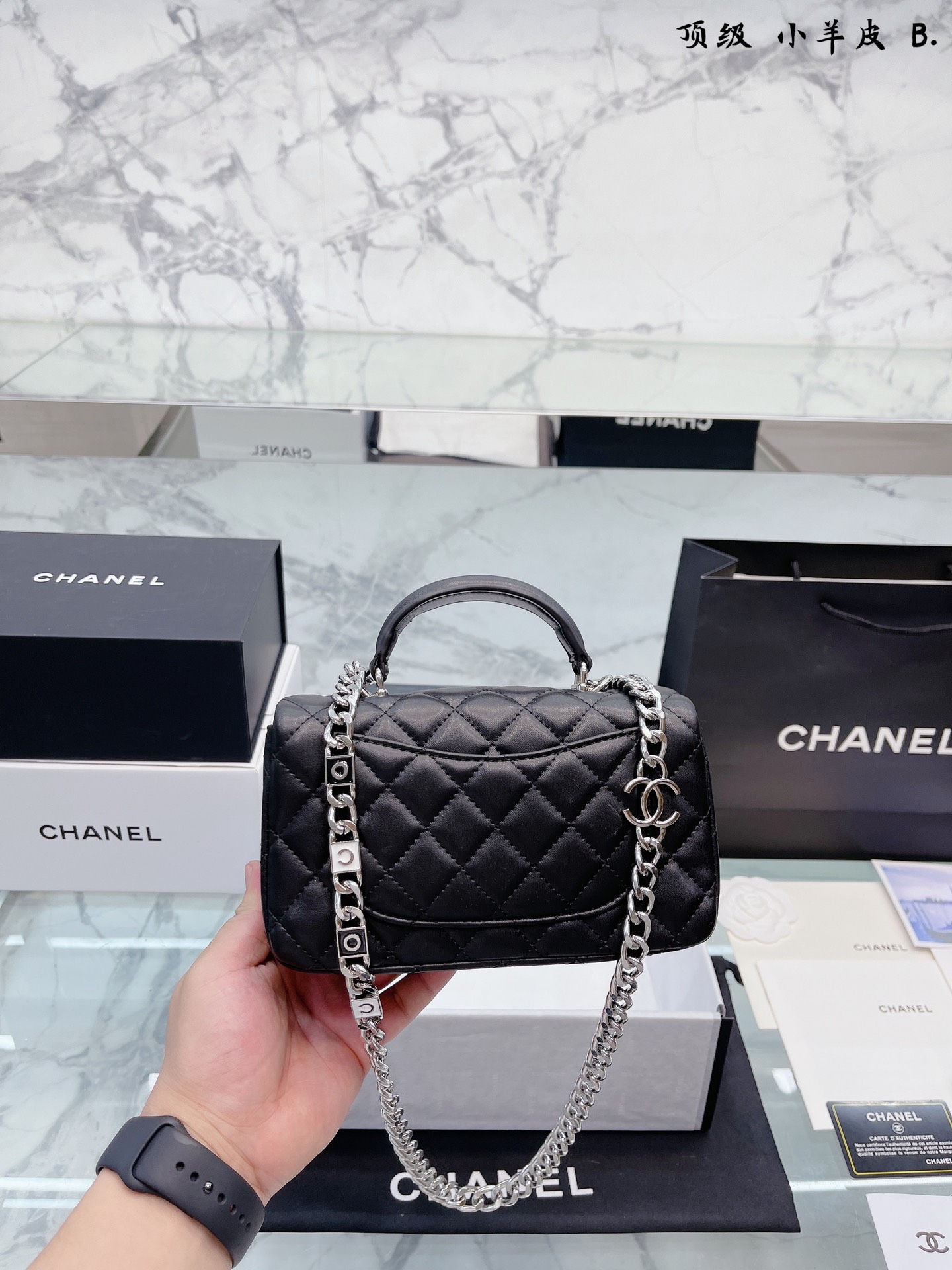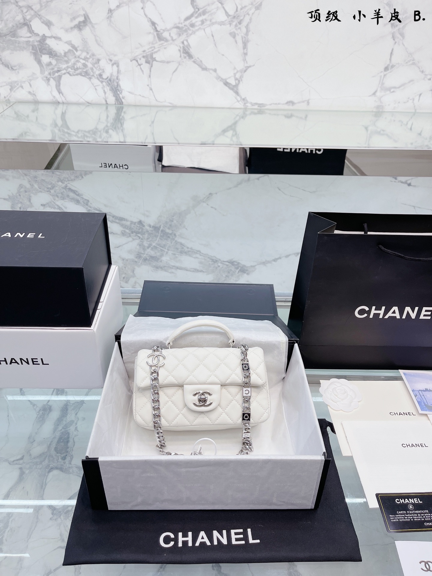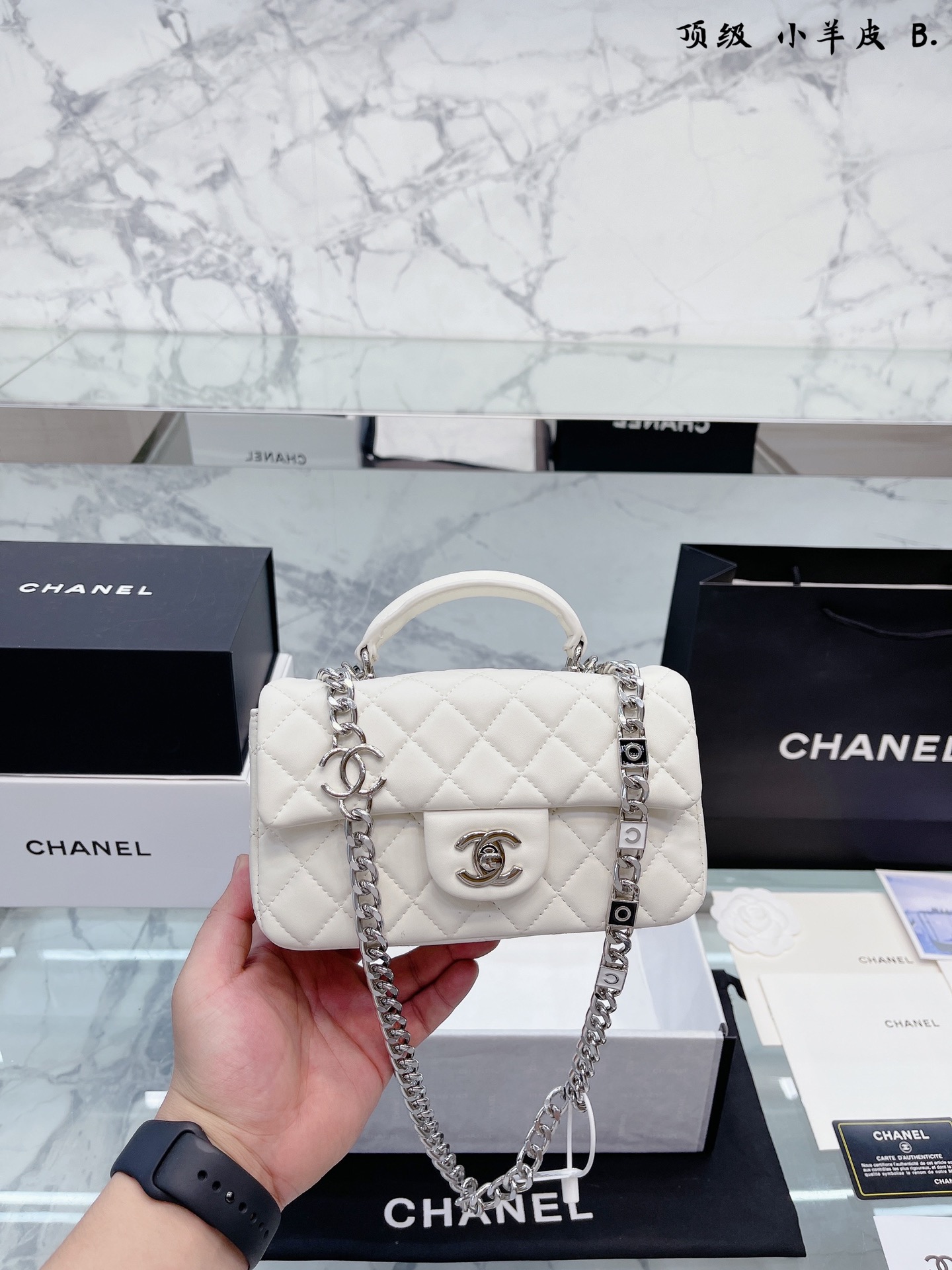 K0 小羊皮 升级款 链条 CHANE2022 CF hand|e手腕大mni CHANEL2022春夏系列CF手腕大min带手柄口盖包白雪公主系 Chanel handle手腕大mn经典cf配以手柄 最爱的cf等来了 手拎又背 超级复古风 眼就沦陷 白色又仙又欲 尺寸:20 13cm