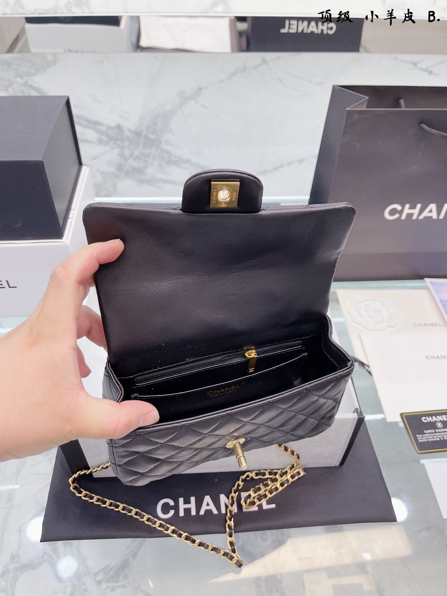 K0 小羊皮 Chanel 22B金属手柄miniCF 金属手柄 CF Mini 真香,金属双C Logo 经典万年 金这季手柄跟以往也不一样了,金属装饰是加分项, 更加精致复古了~ 金容量一如既往的够用,可以放手机 圖 日常琐碎用 品,能手提能斜挎 可这是使用率超高的一款,看厌 了经典款的仙女们可以入这款的的更特别,更优雅知 性. 个人觉得适合搭配女人味的 look 尺寸20 13cm