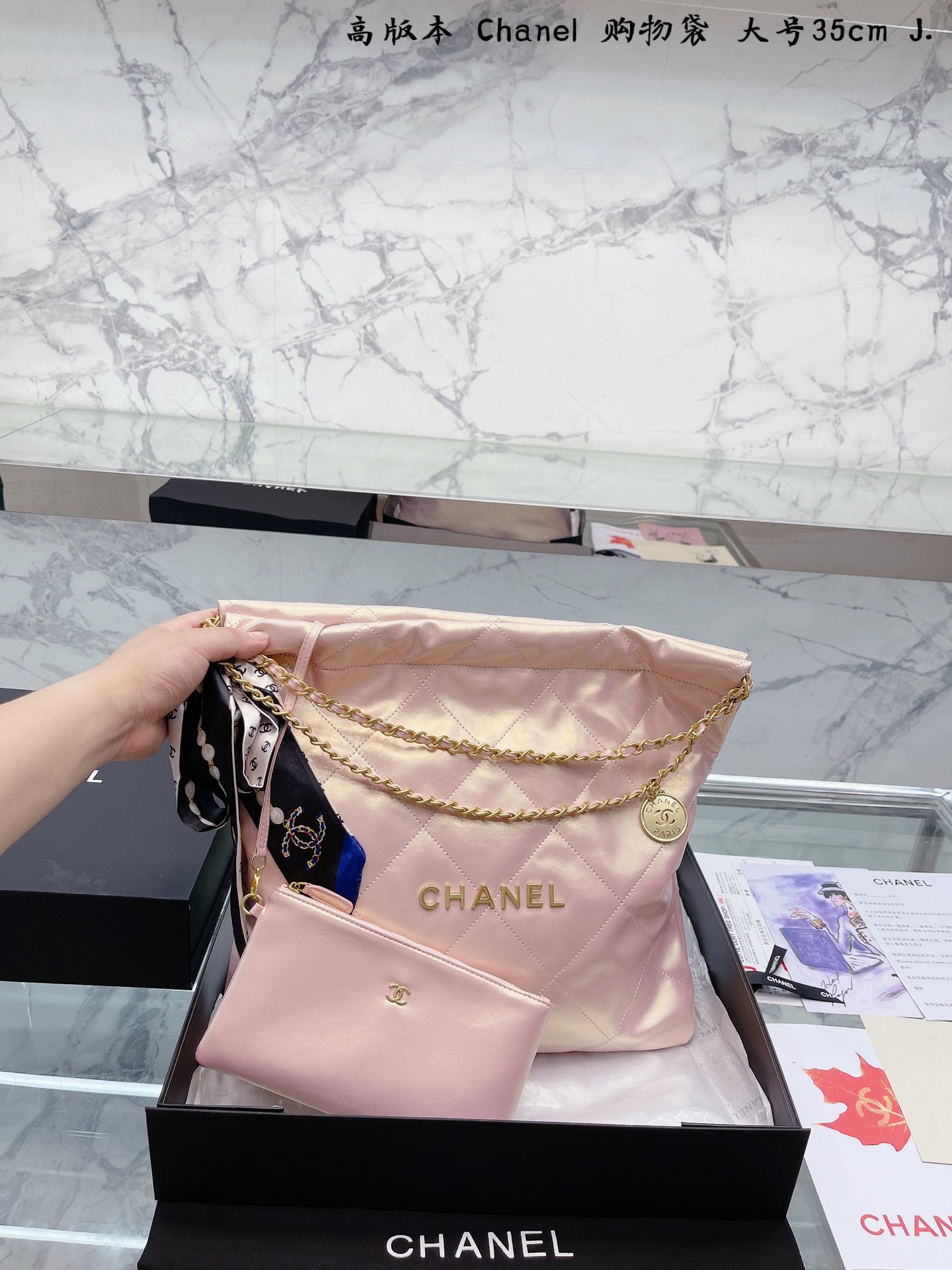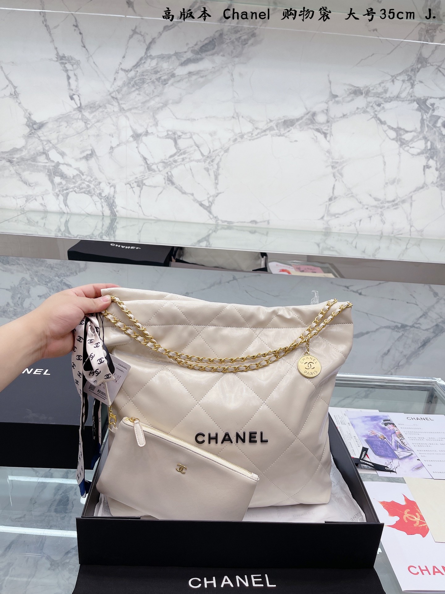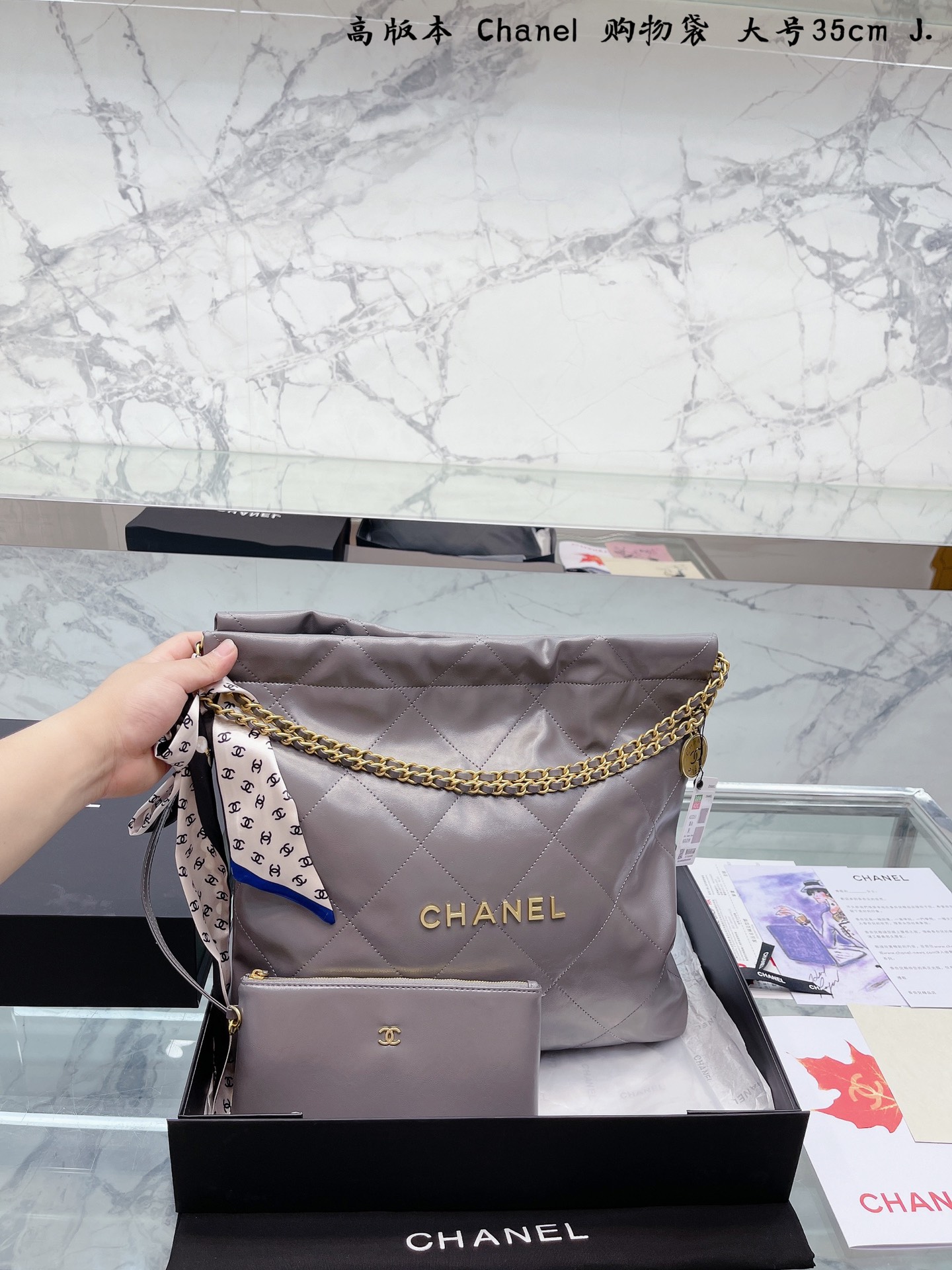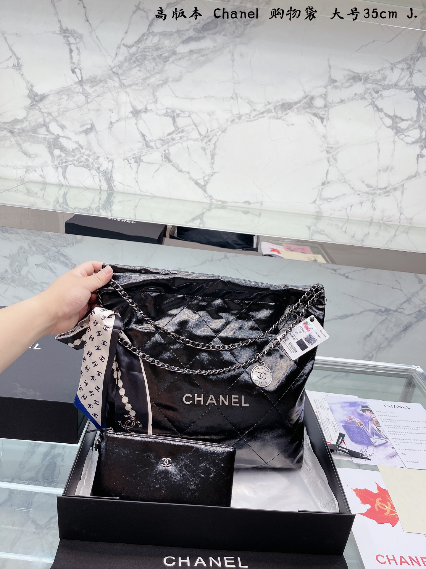 K5 复刻版 大号 CHANEL 22BAG |以数字命名的“垃圾袋”? 2021 年10 月,Chanel 品牌艺术总监Virginie Viard在2022年春夏 时装秀_上推出一款手提包: 22 BAG。目前仅有黑色中号金色字母现货!从2.55到11.12手袋,Chanel重量级包款命名总是与数字和日期有关, 22手袋是继2019年推出19手袋之后时隔3年又一重点单品。22手袋希望传递的洒脱不羁又余韵十足的休闲概念,看惯了Chanel每一季上新大大小小的口盖包 22bag与众不同难得的休闲酒脱与人的穿搭越来越舒适简单、取悦自己而相配相呼应且在市面,上其他品牌里也蛮少有类似包型包身是扁平的菱格绗缝,有点类似嬉皮包,看起来既舒适又适合日常运用。 22手袋的油腊牛皮更为油亮柔软,绝对可堪称皮料界的王者。 包带运用皮革穿金链元素,上面有一枚镂空黄铜 CHANEL双C金币吊坠,非常复古。包包舒适 且容量大,內附拉链隔间和可拆式小袋,包口为磁扣和抽绳式松紧带设计,慵懒又随性。 大号35cm”},”title”:”复刻版 大号 CHANEL 22BAG |以数字命名的“垃圾袋”? 2021 年10 月,Chanel 品牌艺术总监Virginie Viard在2022年春夏 时装秀_上推出一款手提包: 22 BAG。目前仅有黑色中号金色字母现货!从2.55到11.12手袋,Chanel重量级包款命名总是与数字和日期有关, 22手袋是继2019年推出19手袋之后时隔3年又一重点单品。22手袋希望传递的洒脱不羁又余韵十足的休闲概念,看惯了Chanel每一季上新大大小小的口盖包 22bag与众不同难得的休闲酒脱与人的穿搭越来越舒适简单、取悦自己而相配相呼应且在市面,上其他品牌里也蛮少有类似包型包身是扁平的菱格绗缝,有点类似嬉皮包,看起来既舒适又适合日常运用。 22手袋的油腊牛皮更为油亮柔软,绝对可堪称皮料界的王者。 包带运用皮革穿金链元素,上面有一枚镂空黄铜 CHANEL双C金币吊坠,非常复古。包包舒适 且容量大,內附拉链隔间和可拆式小袋,包口为磁扣和抽绳式松紧带设计,慵懒又随性。 大号35cm