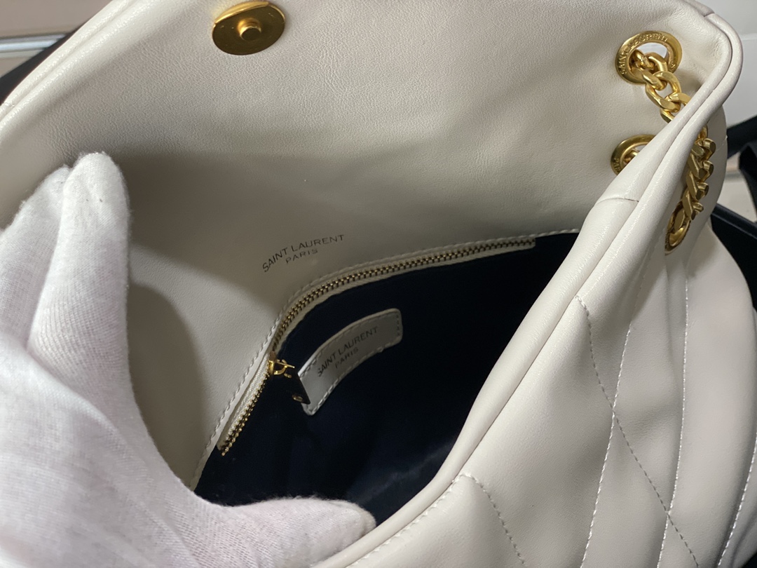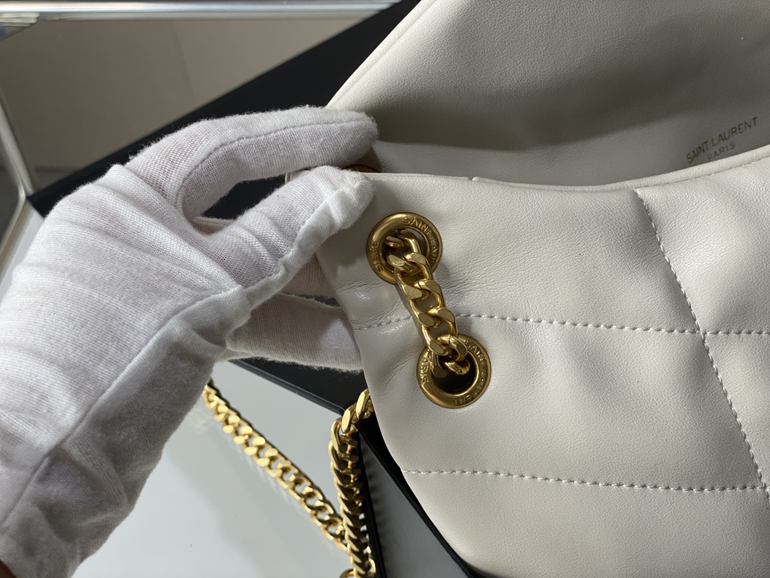K5 小号女士 款 Saint Laurent 圣罗兰 YSL 软糯的云朵包| loulou 包评测这款包我买来我这款金链啦~首先它是小羊皮材质的所以不耐磨大家要小心使用一不小心就会磨破向面但是手感非常非常好都可以当枕头了比香奈儿19软很多摸到真的会惊艳的那种感觉哈哈哈就和棉花糖一样包的本身也很轻完全不用担心会重!后面有上身图可以手拿侧背手提还可以交叉背!打开是信封形的所以容量也非常大可以装下日常出 门要带的所有东西! ! ! black27 *20cm