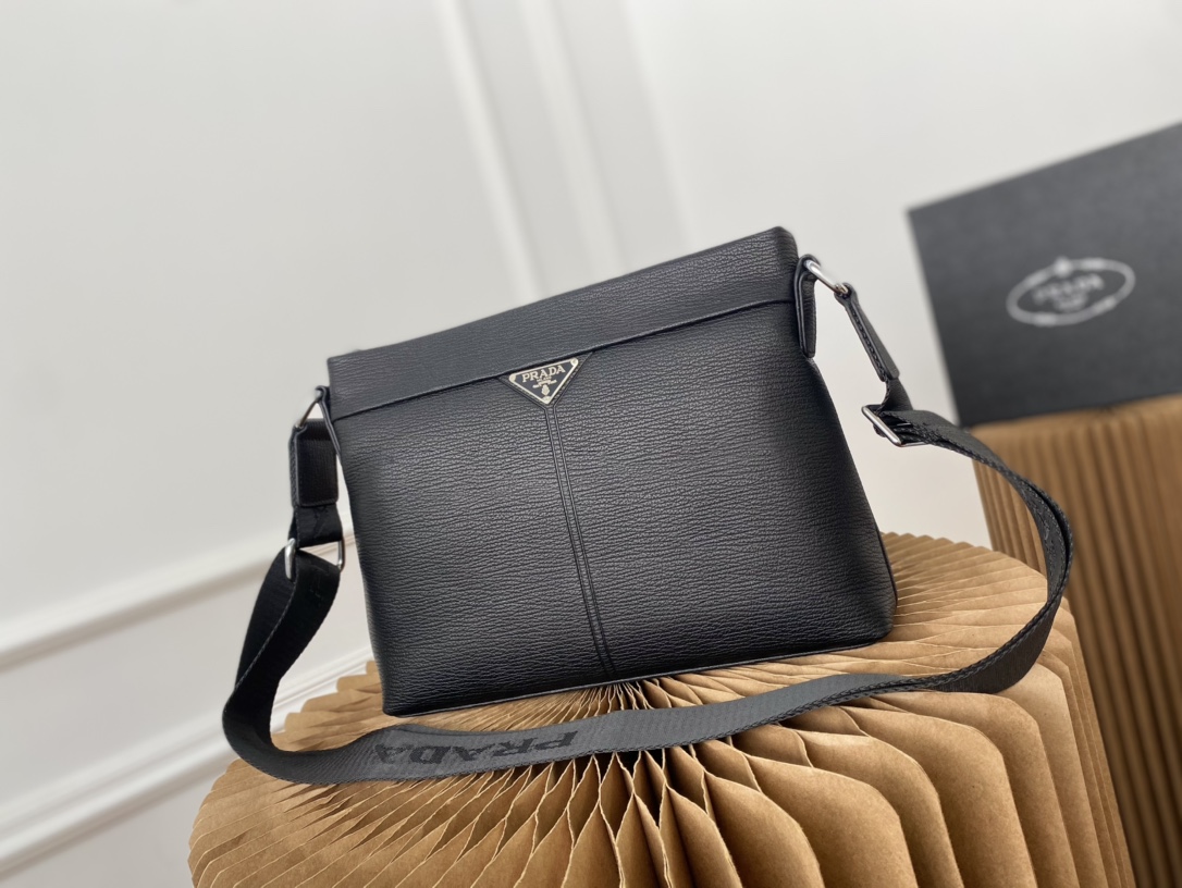 K5 普拉达 Prada 原单原版牛皮邮差包 单肩包 斜挎包男包 采用精湛镶嵌细工,经典百搭 实物拍摄 原厂原版面料 高端品质 配送小票防尘袋 30 x 22 cm。