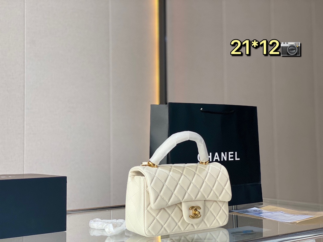 K5 香奈儿Chanel以coco仙女小姐本尊命名的Coco handle bag~盐手上这只是coco handle mini款它是香奈儿为数不多有手柄的包包半圆形手柄搭配黑金配色,优雅复古没有任何季节的束缚,也没有任何场合的局限21*12cm