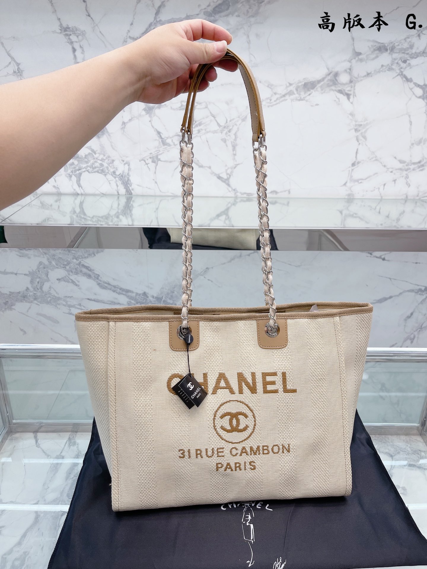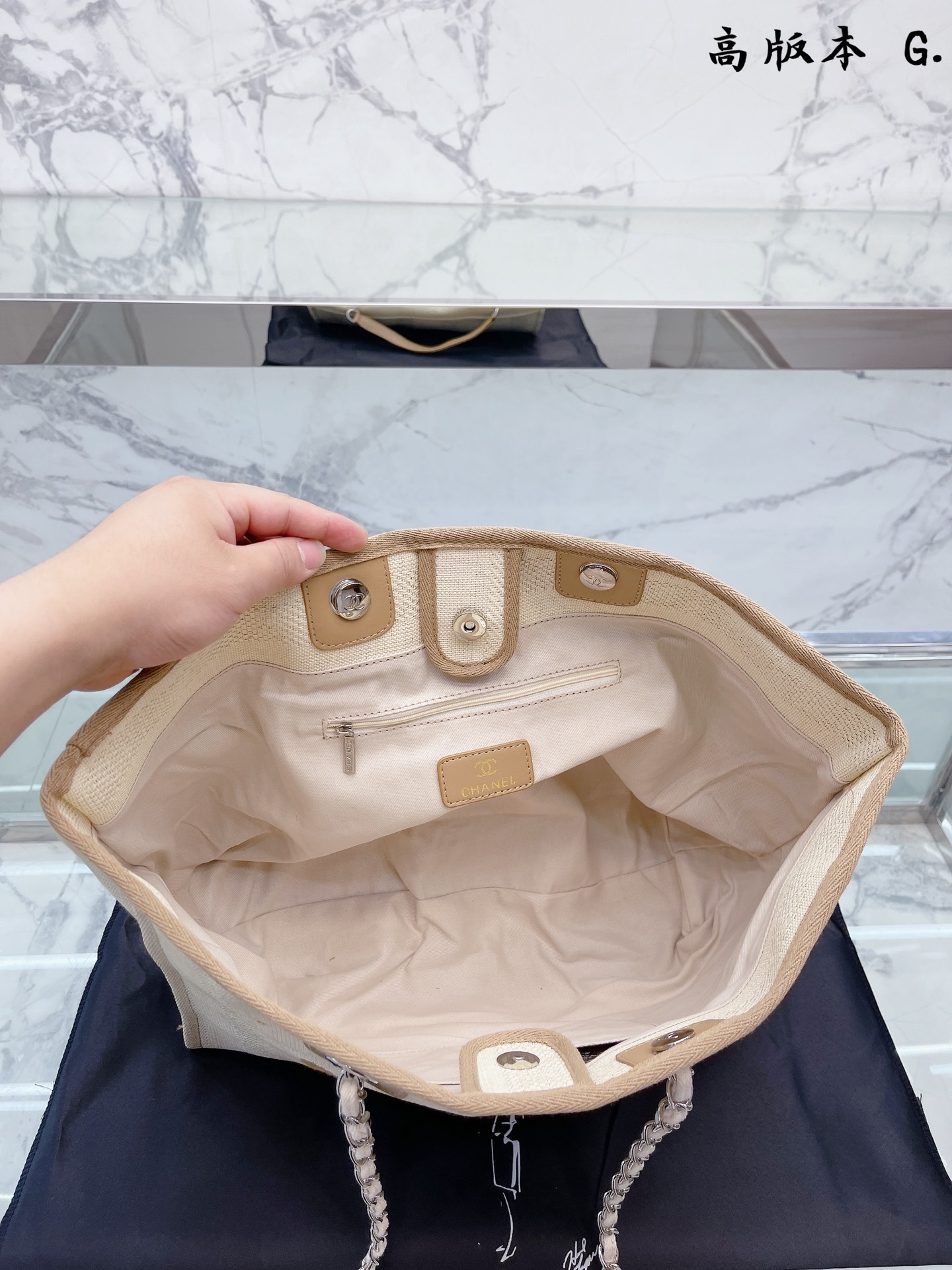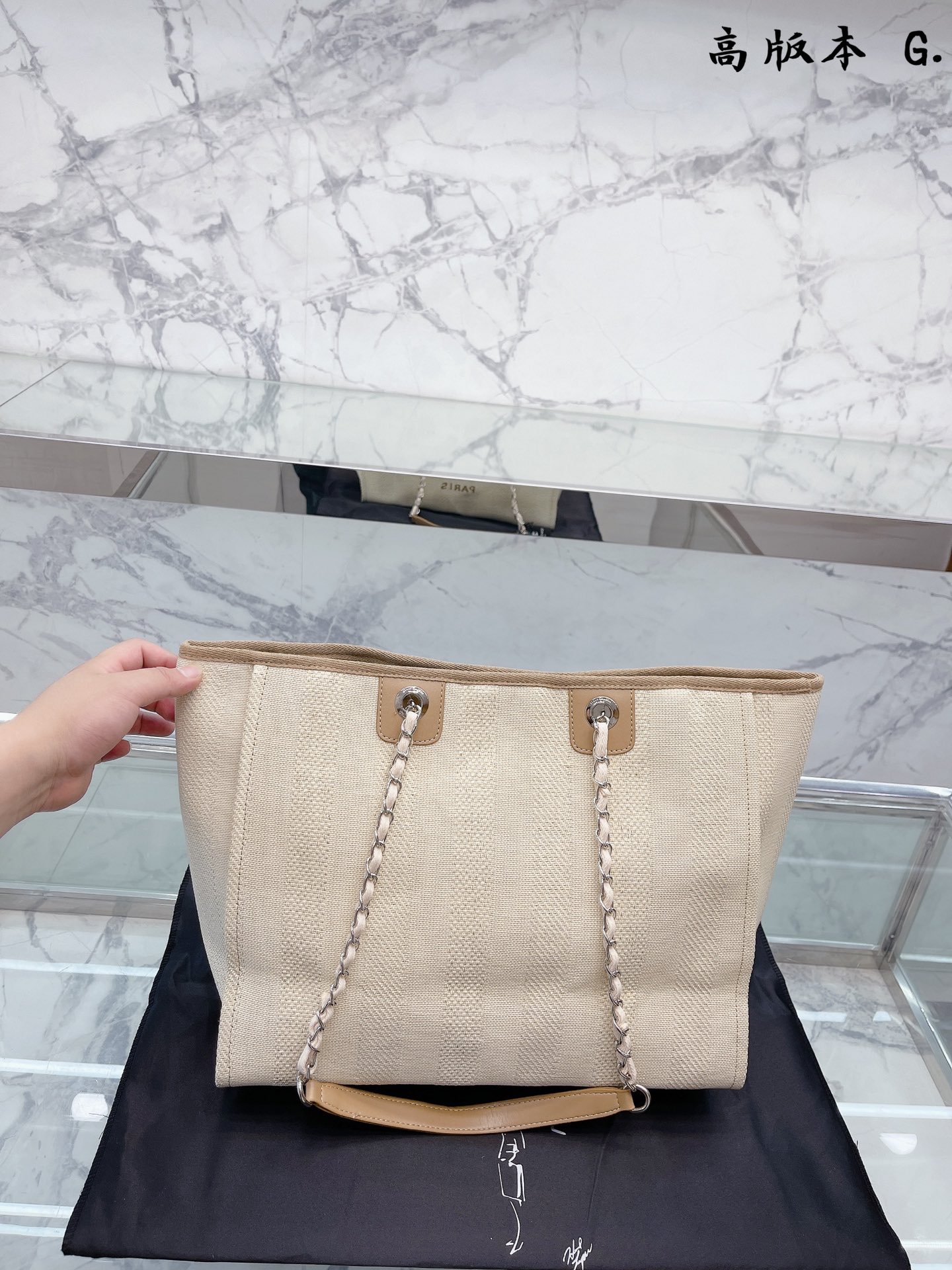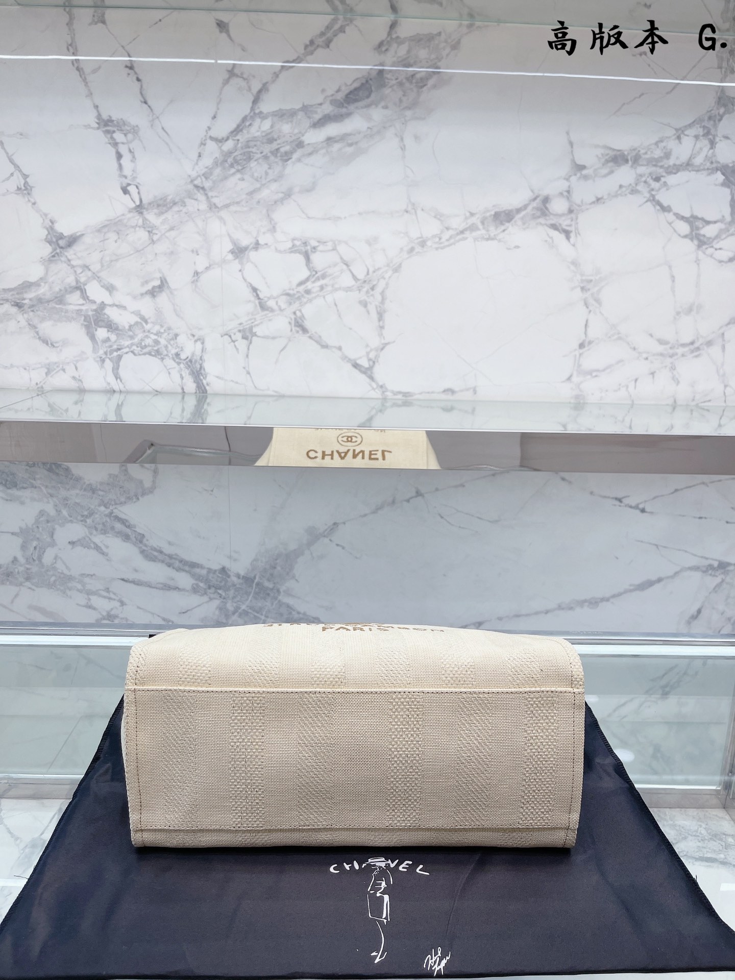 K5 高版本 条纹 CHANEL 帆布沙滩包购物袋 CHANEL帆布沙滩包每年都会出新的款 跟老款不同的logo装饰更加高端大气 容量超级可妈咪包 沙滩包采用帆布材质裂成 简约休闲的设计深受欢迎 而且容量够大又轻便时髦 适合日常使用更适合出差旅行时轻轻休闲的搭配,实用性极高 小香沙滩包. 是夏天的小海滩呀~38 31cm
