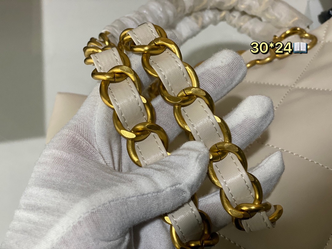 L0 Chanel 2022 HOBO嬉皮包 吸睛@@的就是她的多样背法,可做潮酷单肩包,可爱 材质:小羊皮革做旧古铜金 这个背法就只有一种~单肩 尺寸: 30*24cm