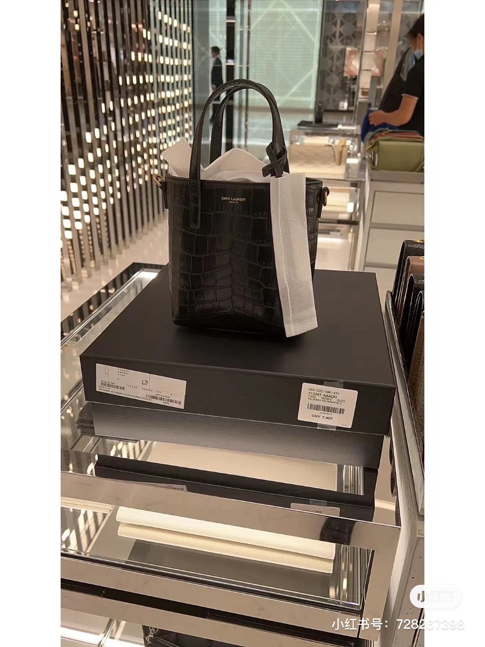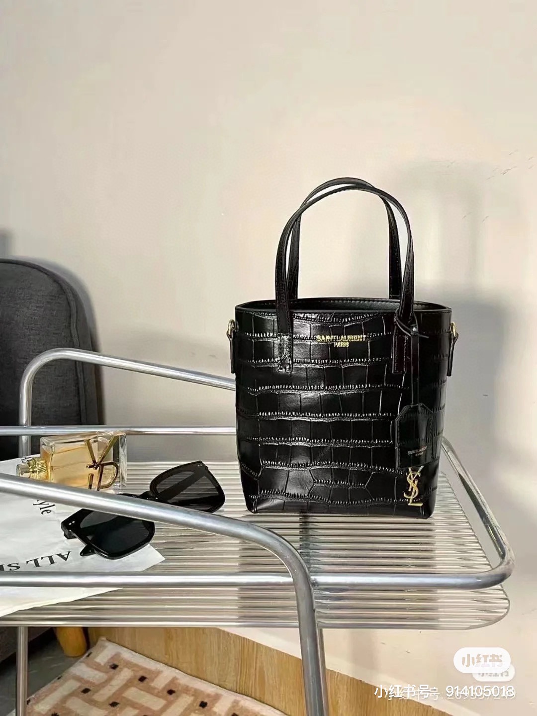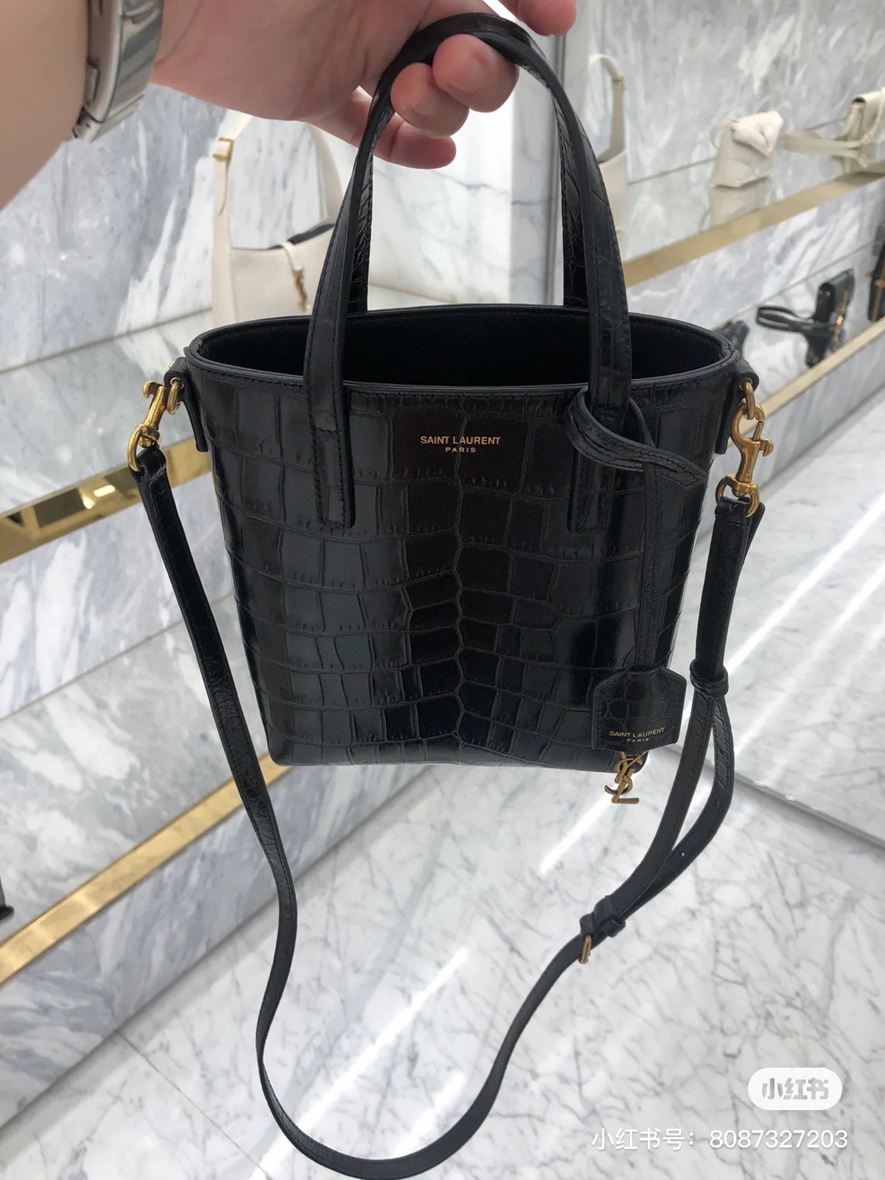 SAINT LAURENT鳄鱼压纹托特包 SL按扣开合设计,搭配可拆卸皮革包覆经典 Saint Laurent 圣罗兰 YSL 标志吊饰。 鳄鱼压纹高级感十足,Tote设计容量足够容纳日常随身小物。