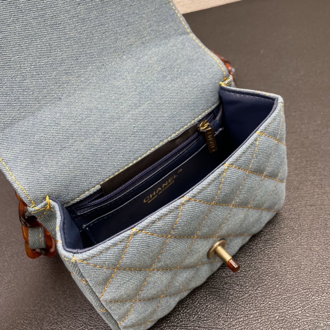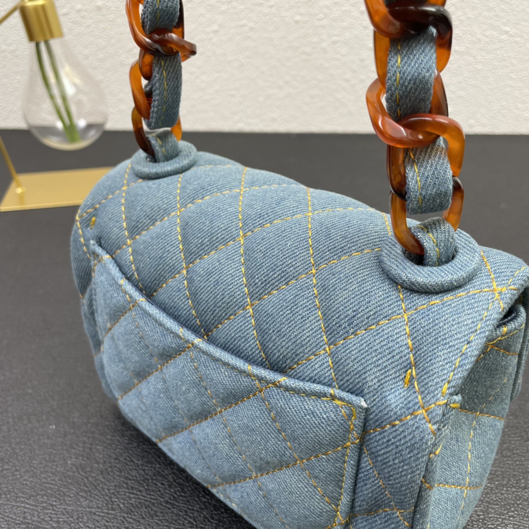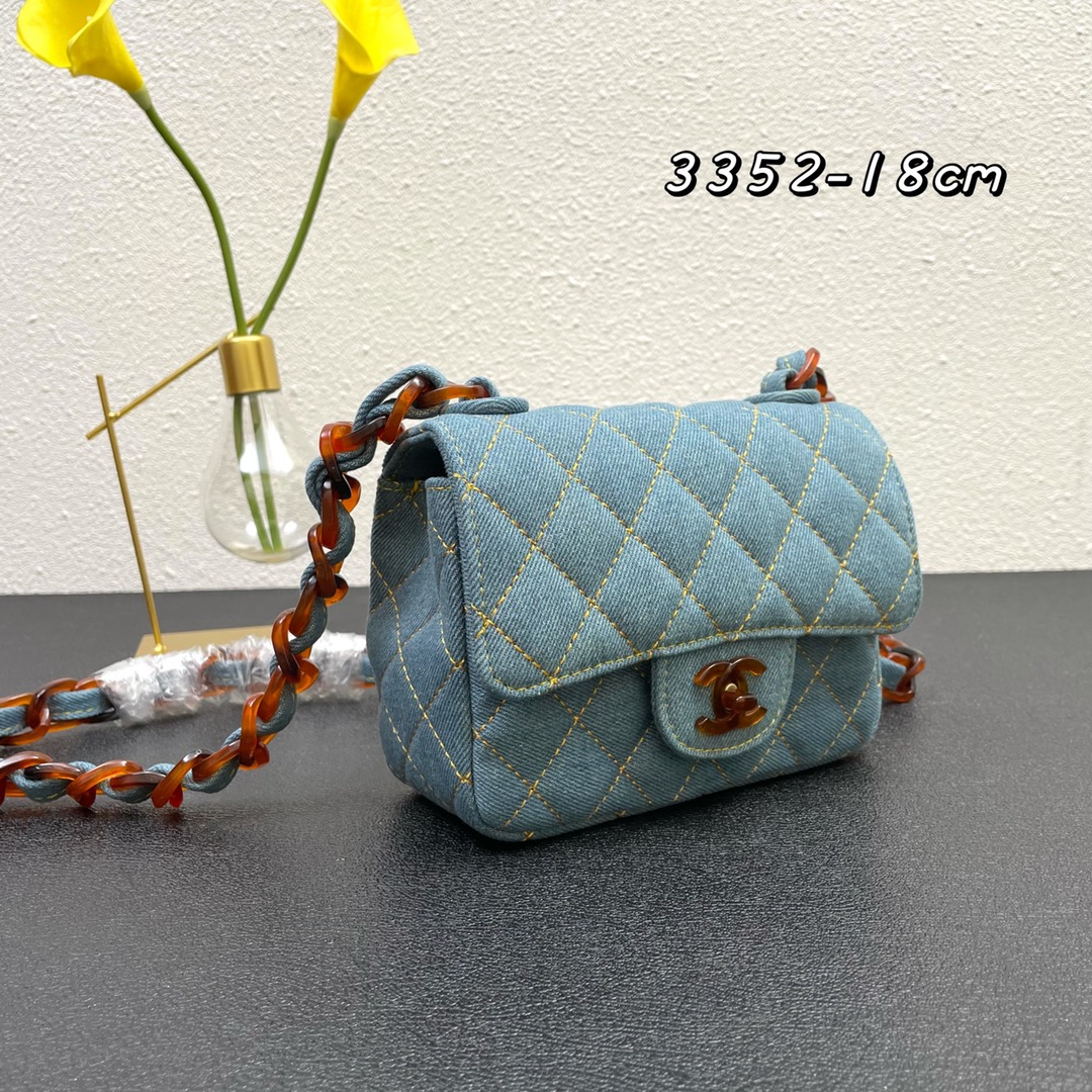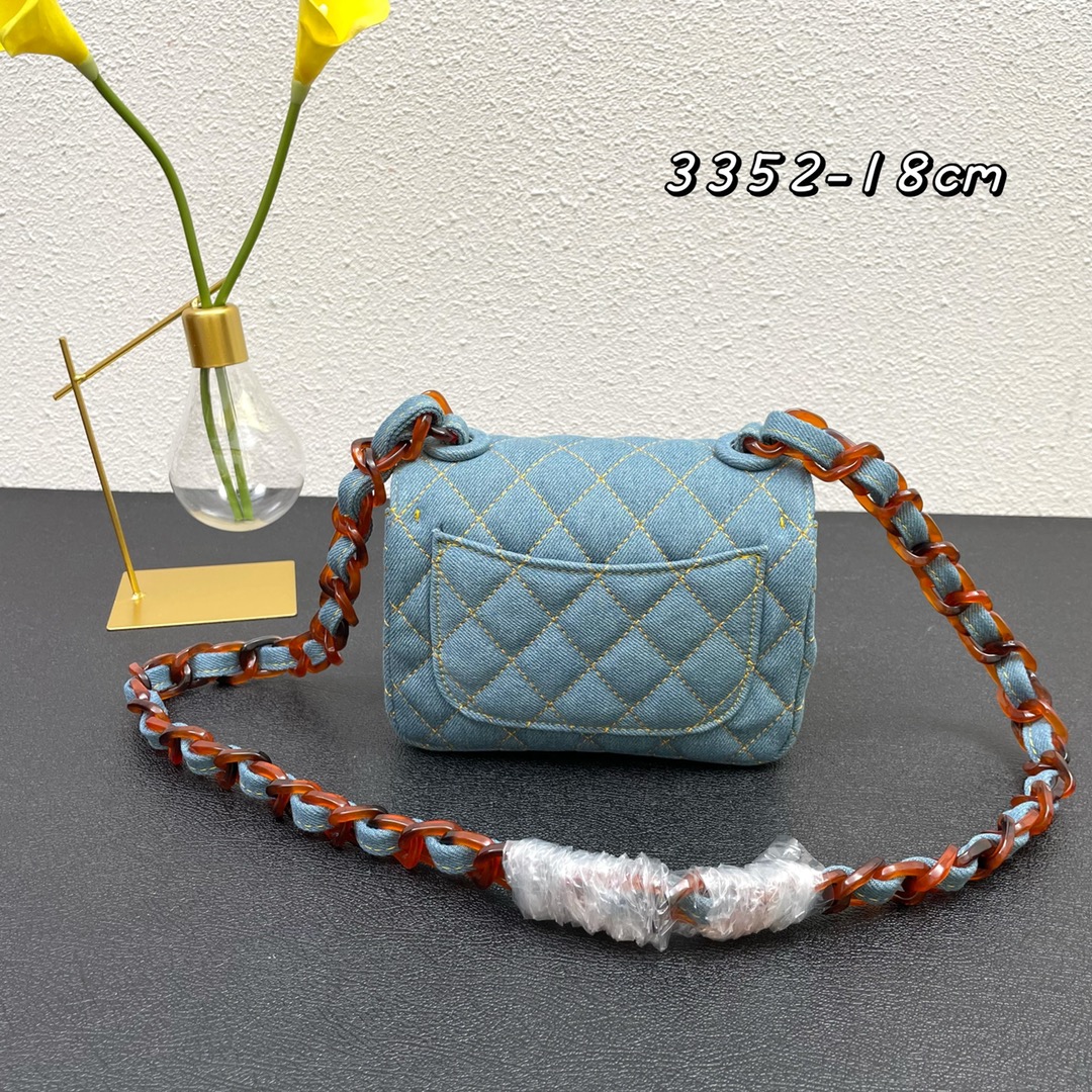 Chanel牛仔包2021 cf A 牛仔包背起来非常舒服 这只刚出来的巨喜欢 整体颜色、独特印话logo滴胶扣都很vintage感,又是一个实用百搭包,容量大,非常轻。尺寸:18,款号3352