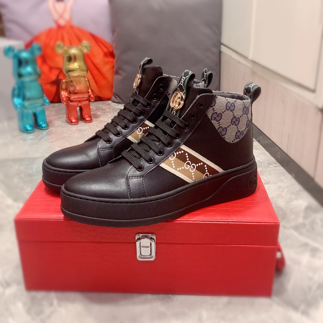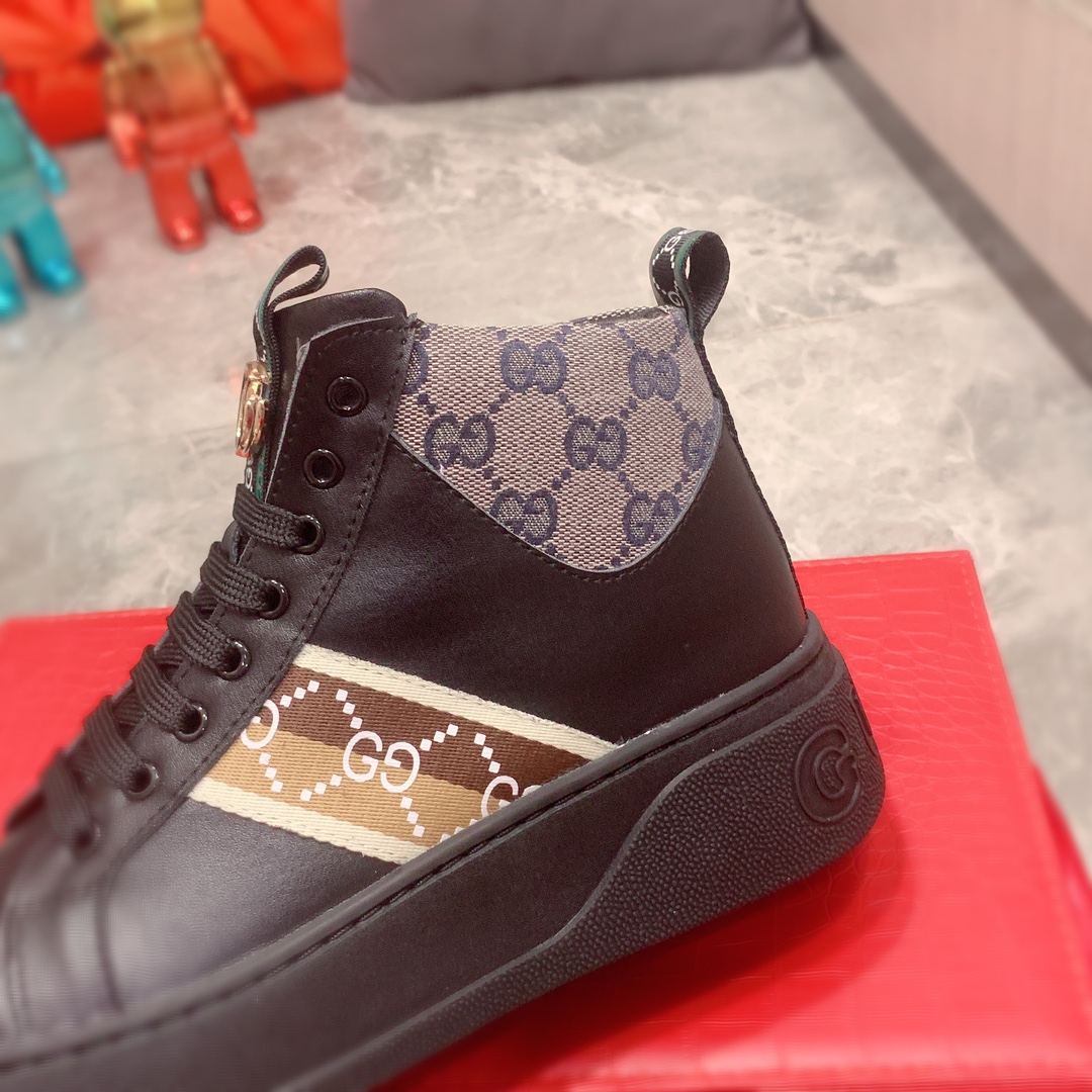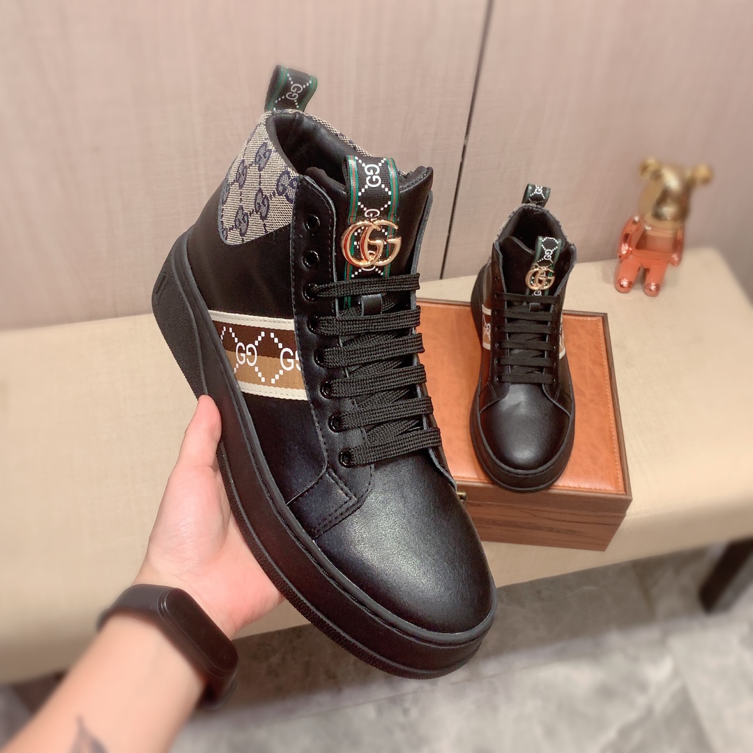 14 高帮: Gucci 古奇 最新爆款休闲鞋,顶端品牌奢侈~代购,顶级~质量。专柜同卖产品鞋面選用进口透气牛皮材质透气羊皮内里精细做工。原版个性时尚柔软橡膠耐磨防滑大底,上脚轻巧舒适,实物拍摄實物更好看,012广州码: 38-44。白色,黑色入选
