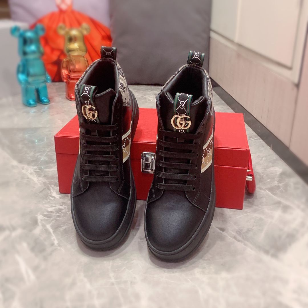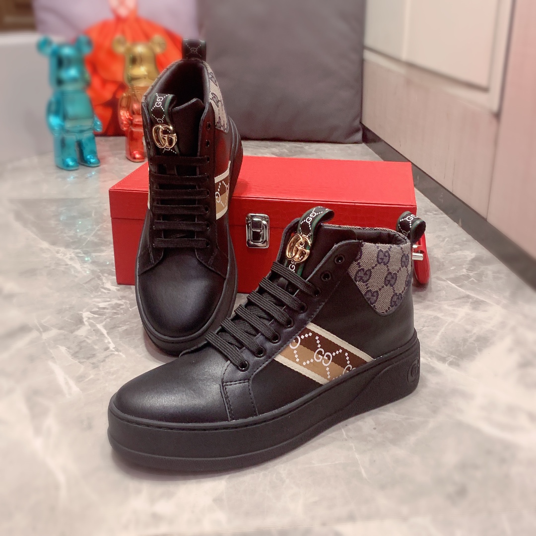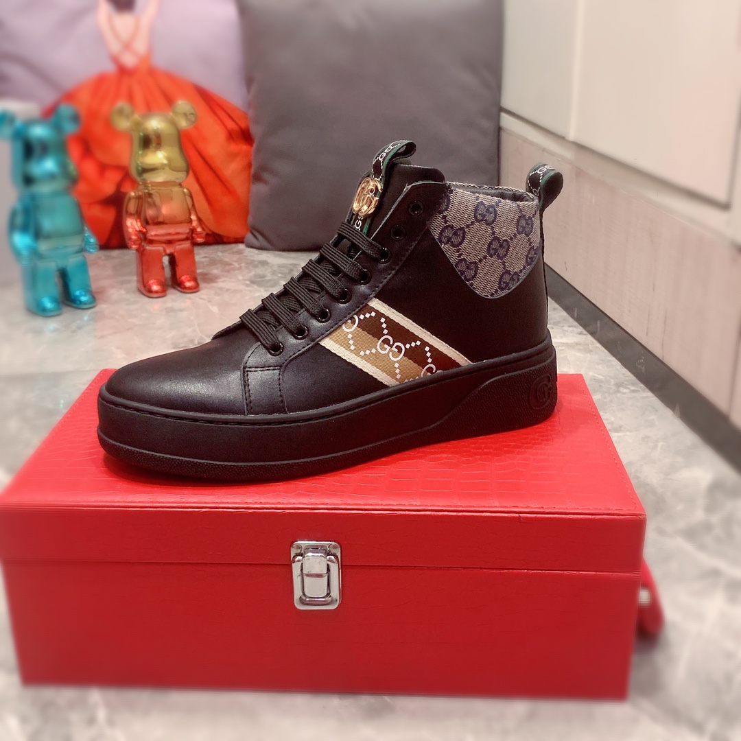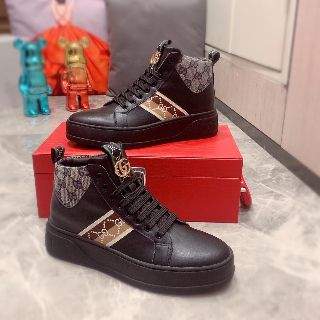 14 高帮: Gucci 古奇 最新爆款休闲鞋,顶端品牌奢侈~代购,顶级~质量。专柜同卖产品鞋面選用进口透气牛皮材质透气羊皮内里精细做工。原版个性时尚柔软橡膠耐磨防滑大底,上脚轻巧舒适,实物拍摄實物更好看,012广州码: 38-44。白色,黑色入选