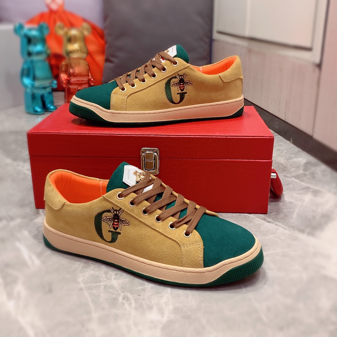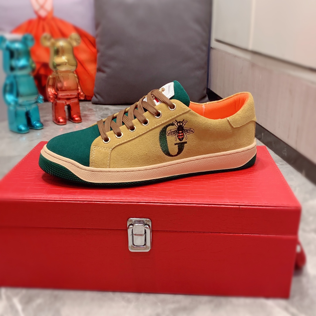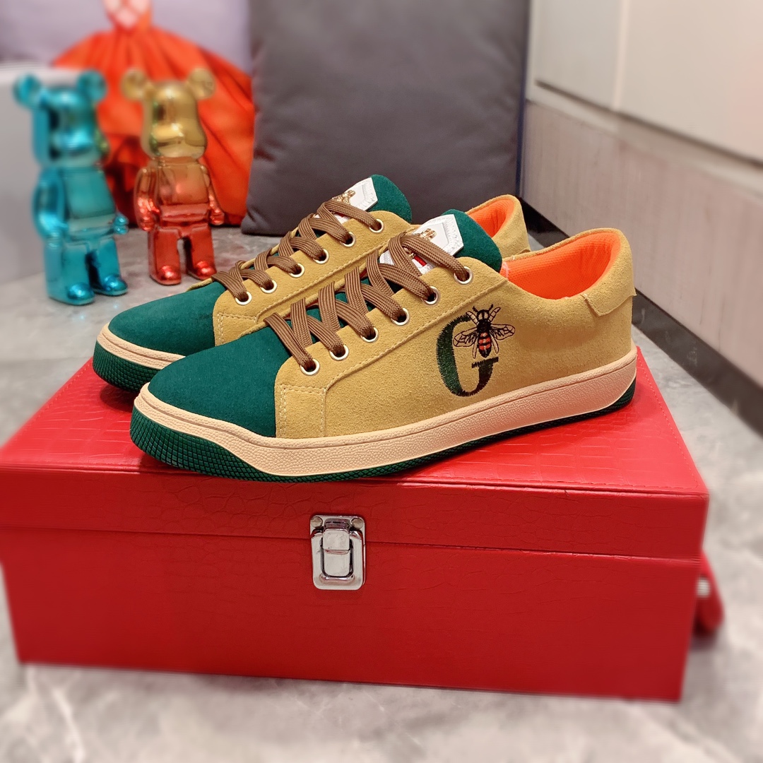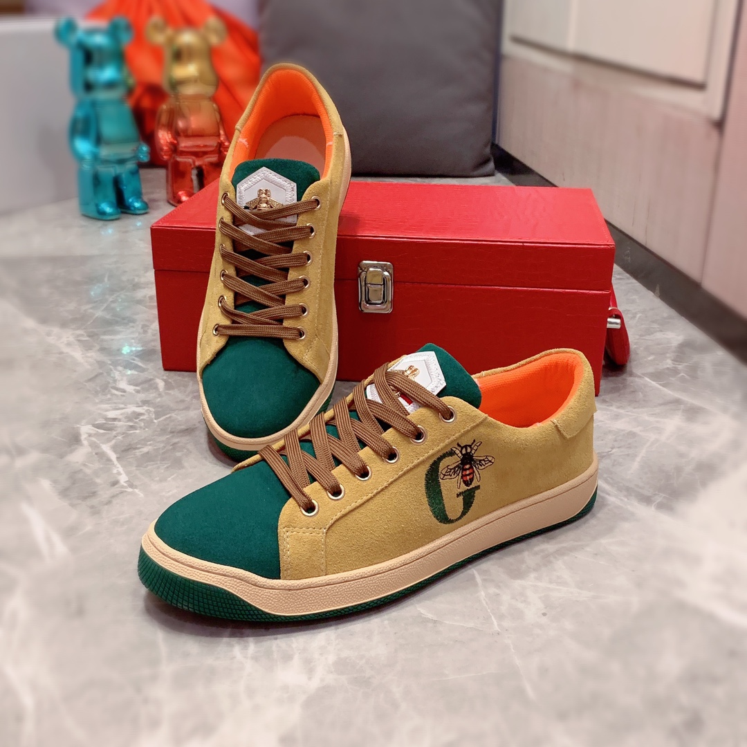 I0 Gucci 古奇 最新爆款休闲鞋,顶端品牌奢侈~代购,顶级~质量。专柜同卖产品鞋面選用进口透气磨砂皮搭配材质透气运动内里精细做工。原版个性时尚柔软橡膠耐磨防滑大底,上脚轻巧舒适,实物拍摄實物更好看,103广州码: 38-44。2色入选