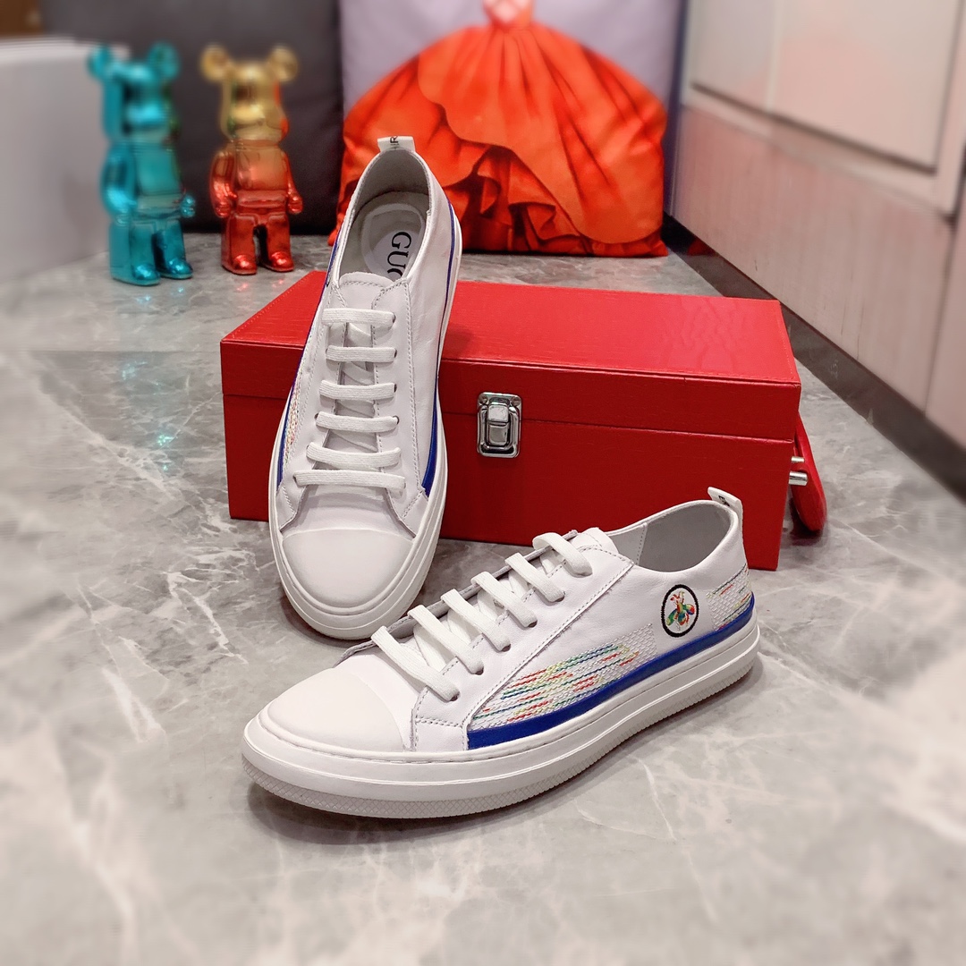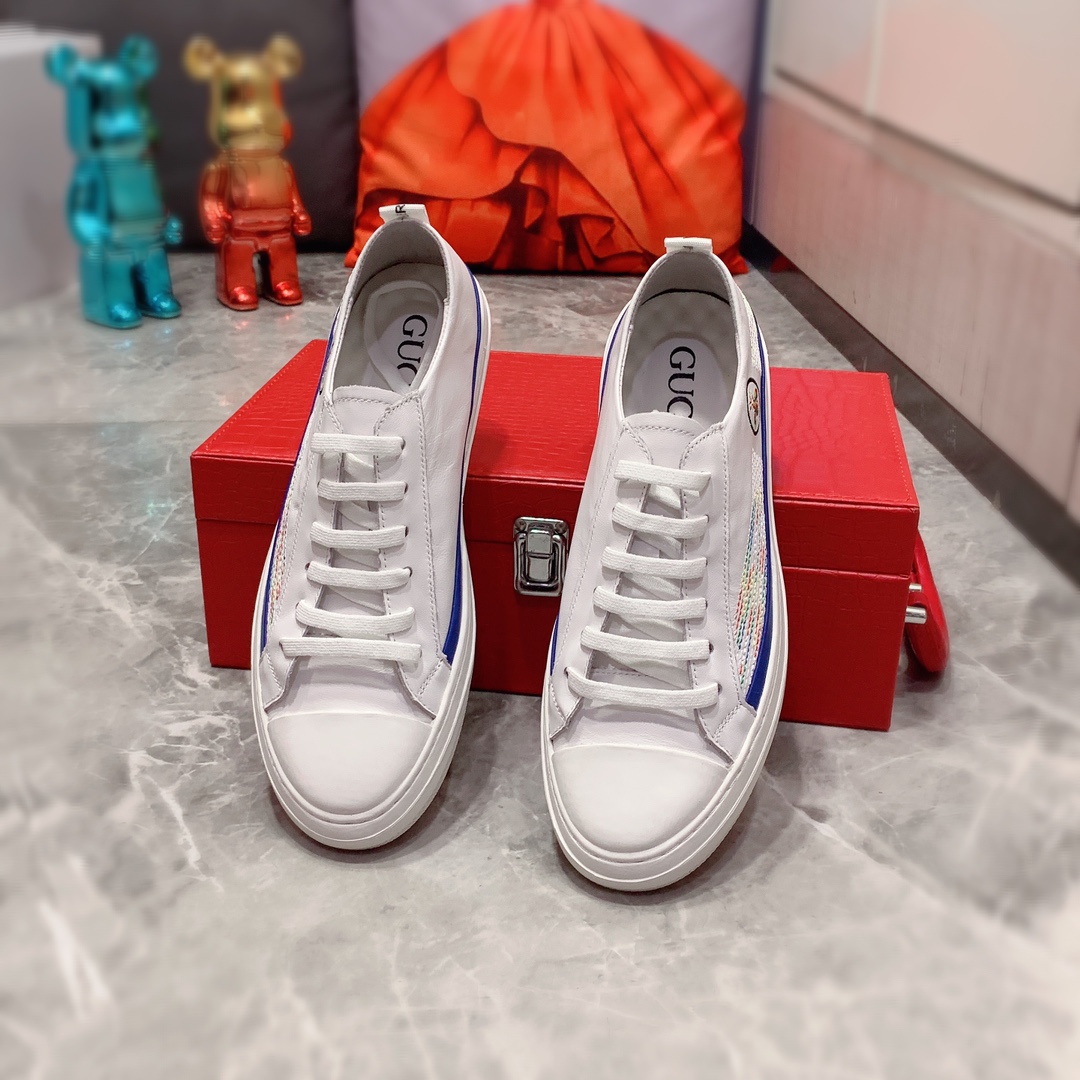 I0 Gucci 古奇 最新爆款休闲鞋,顶端品牌奢侈~代购,顶级~质量。专柜同卖产品鞋面選用进口透气牛皮搭配材质透气猪皮内里精细做工。原版个性时尚柔软橡膠耐磨防滑大底,上脚轻巧舒适,实物拍摄實物更好看,007广州码: 38-44。2色入选