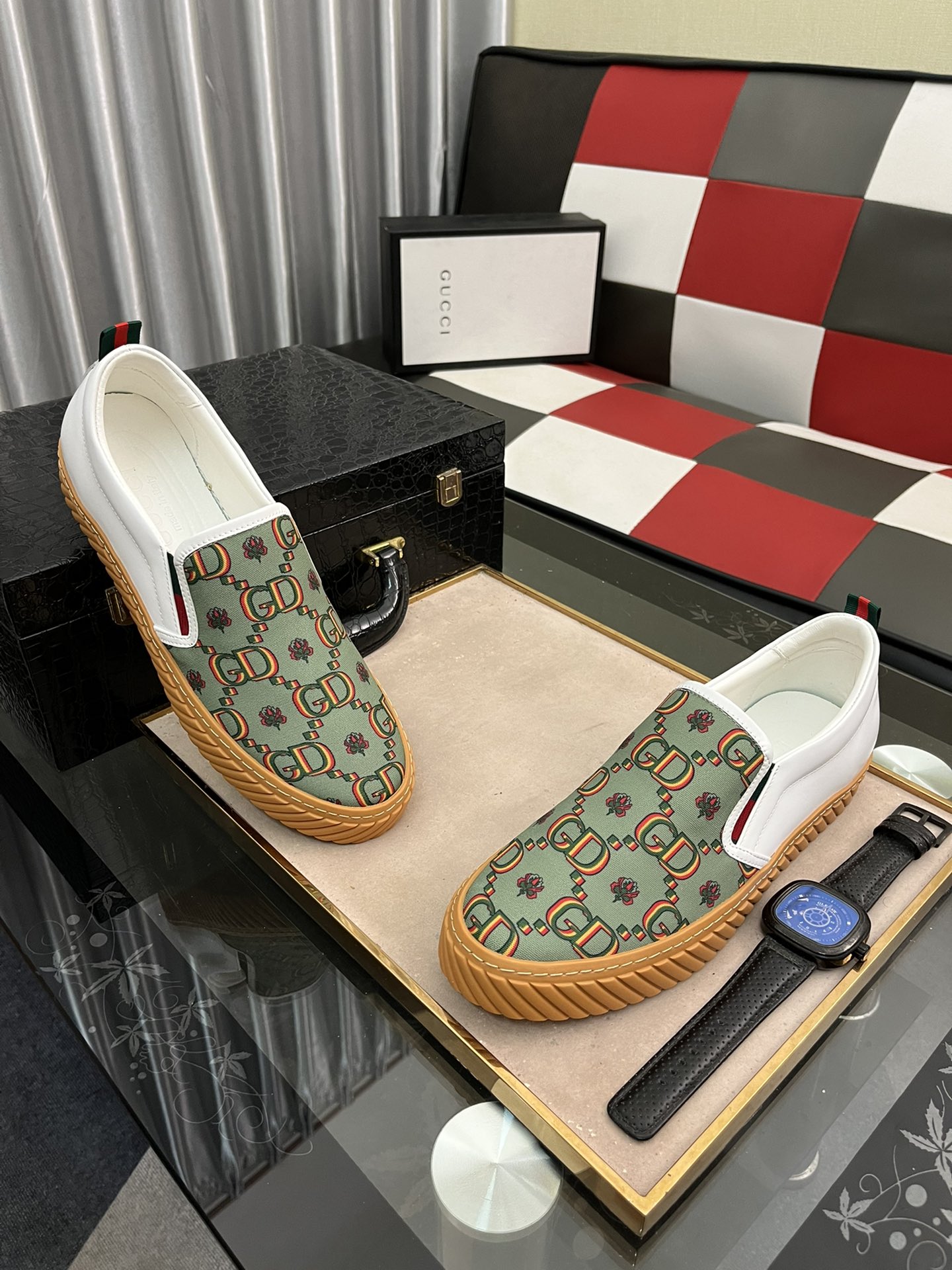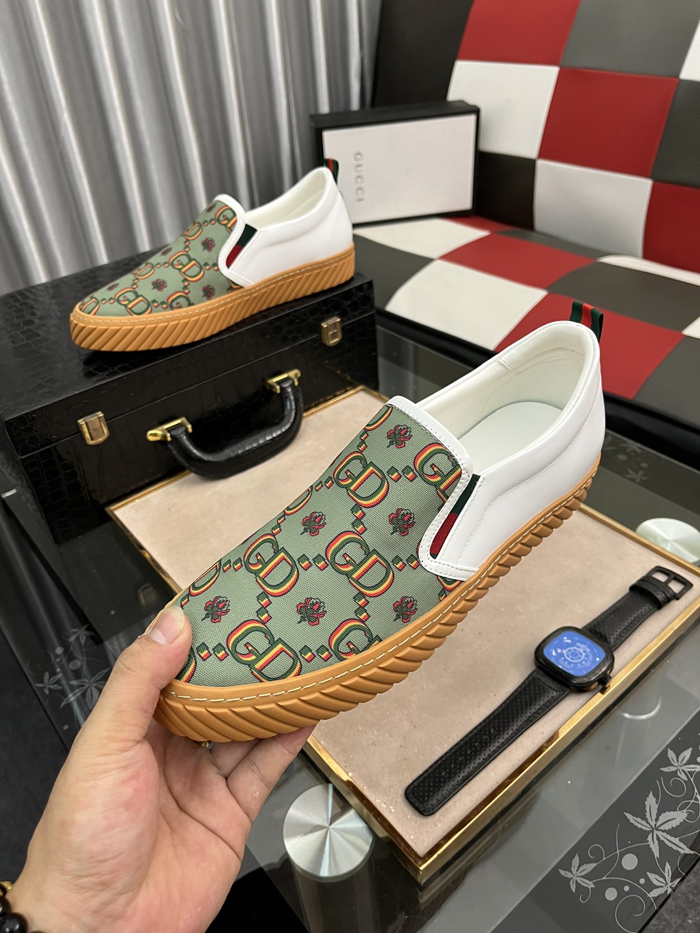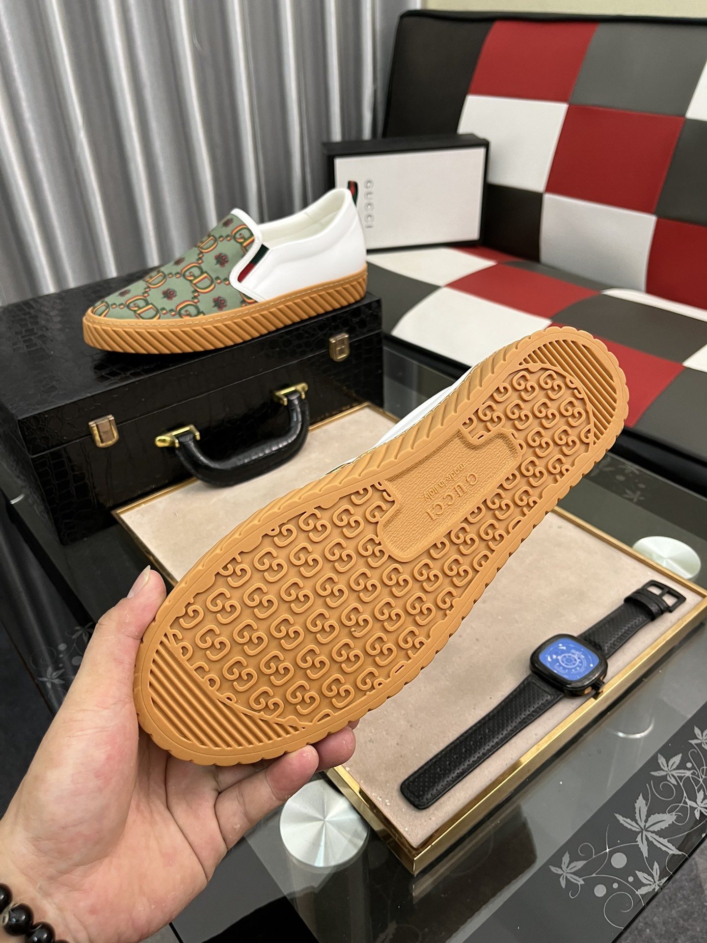 I0 Gucci 古奇 GUCCI一脚蹬新潮流,代购级别,媲美正品无压力,上脚真的很好看,双G压花头层牛皮,猪皮内里质感好到爆套楦工艺,强烈推荐的好货,看对眼必须入,高品质绝对让您满意 码数38-442色可选