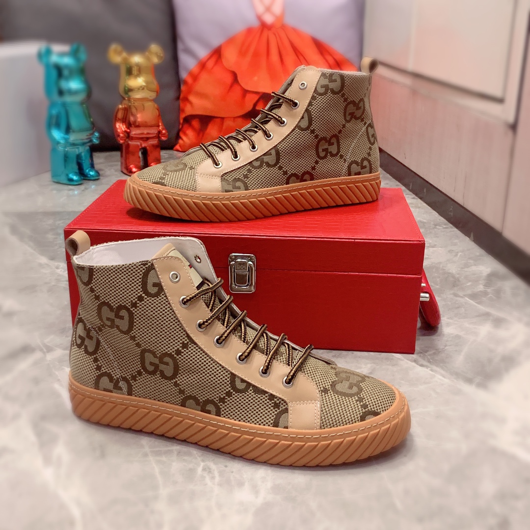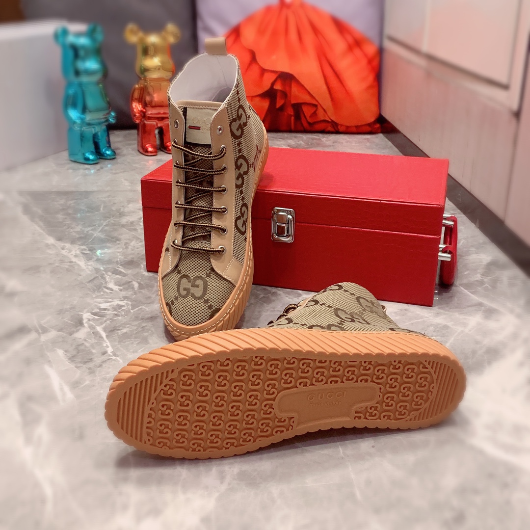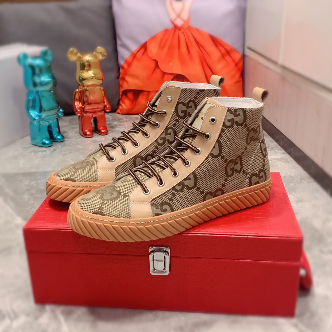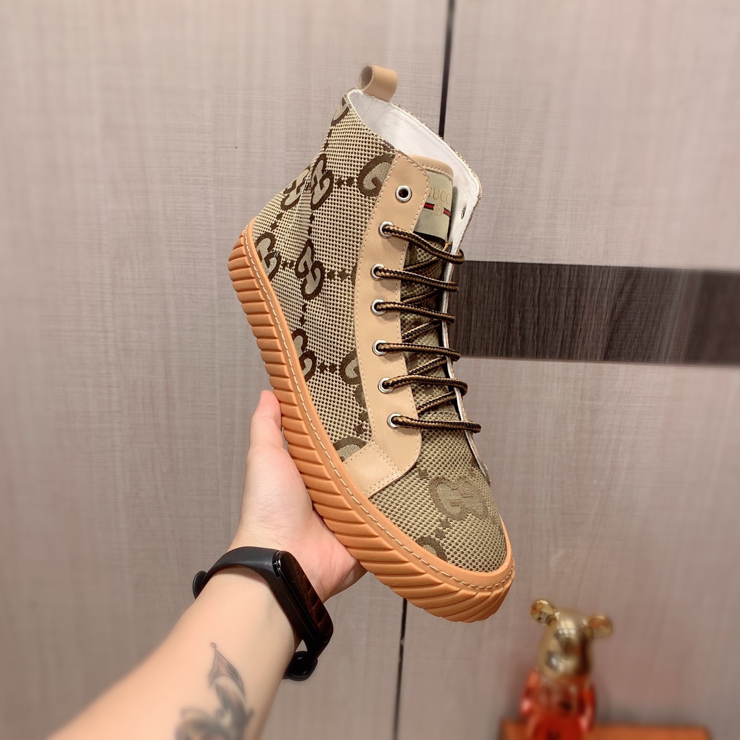 I5 高帮: Gucci 古奇 最新爆款休闲鞋,顶端品牌奢侈~代购,顶级~质量。专柜同卖产品鞋面選用进口透气牛皮搭配布面料材质透气羊皮内里精细做工。原版个性时尚柔软橡膠耐磨防滑大底,上脚轻巧舒适,实物拍摄實物更好看,001广州码: 38-44。2色可选