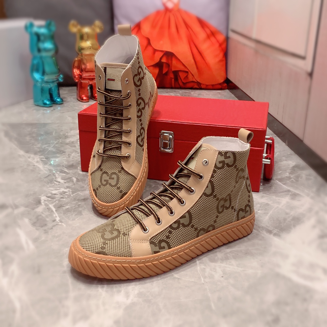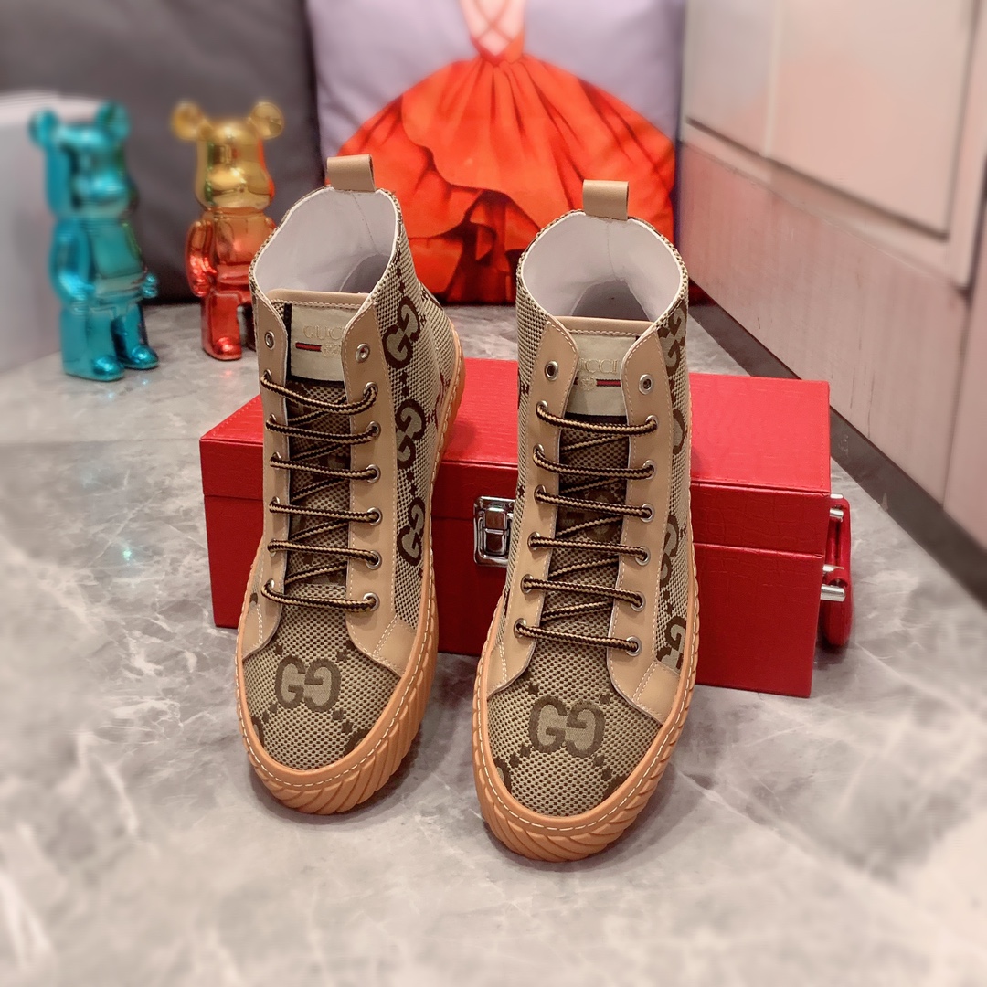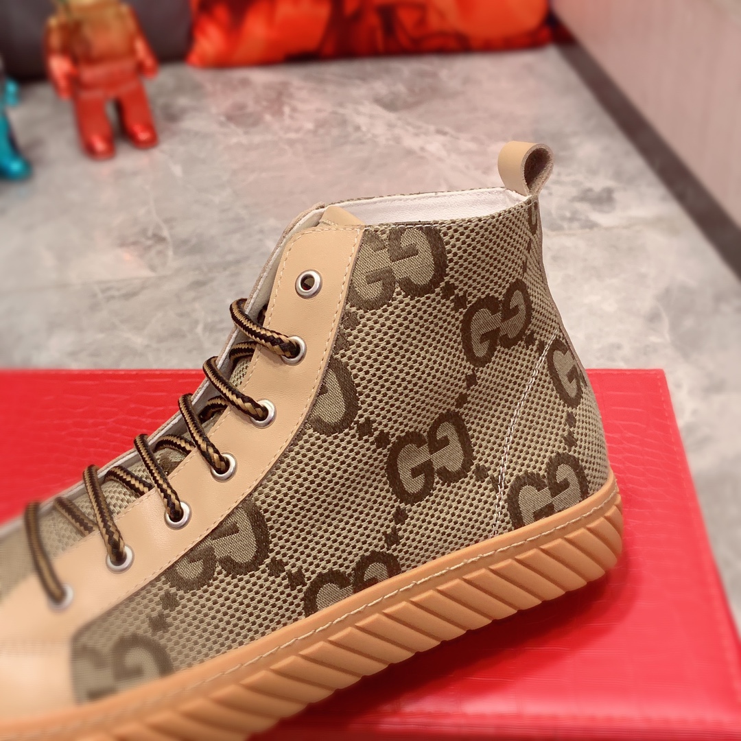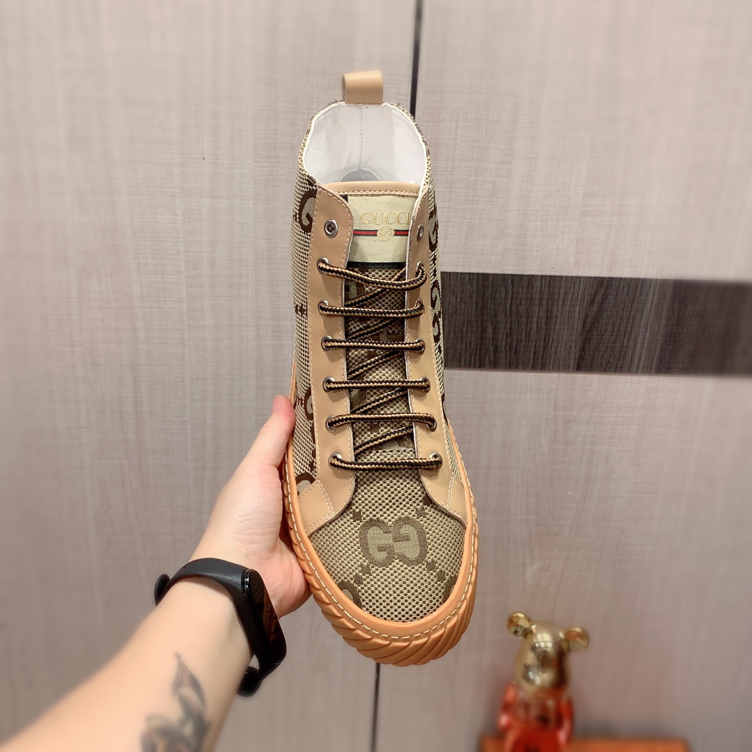 I5 高帮: Gucci 古奇 最新爆款休闲鞋,顶端品牌奢侈~代购,顶级~质量。专柜同卖产品鞋面選用进口透气牛皮搭配布面料材质透气羊皮内里精细做工。原版个性时尚柔软橡膠耐磨防滑大底,上脚轻巧舒适,实物拍摄實物更好看,001广州码: 38-44。2色可选