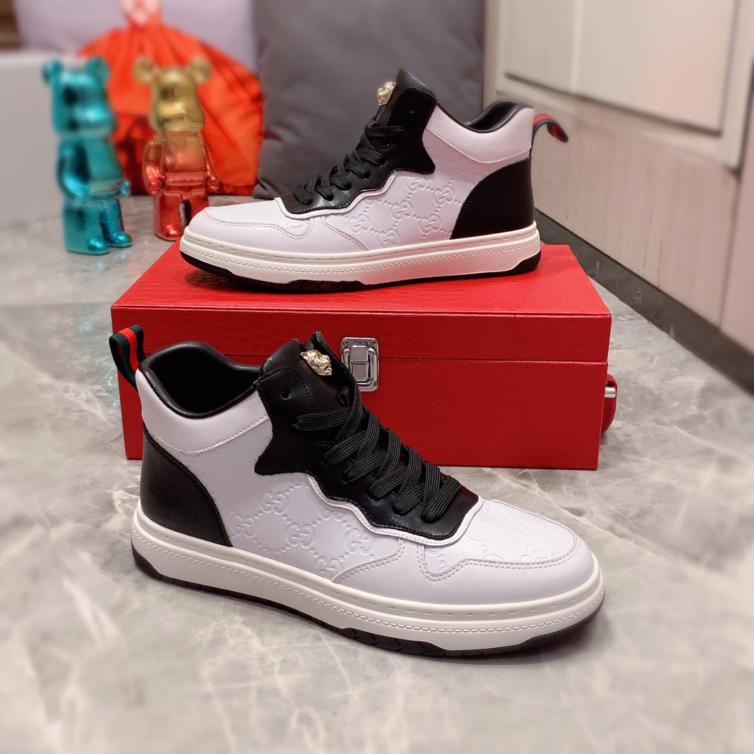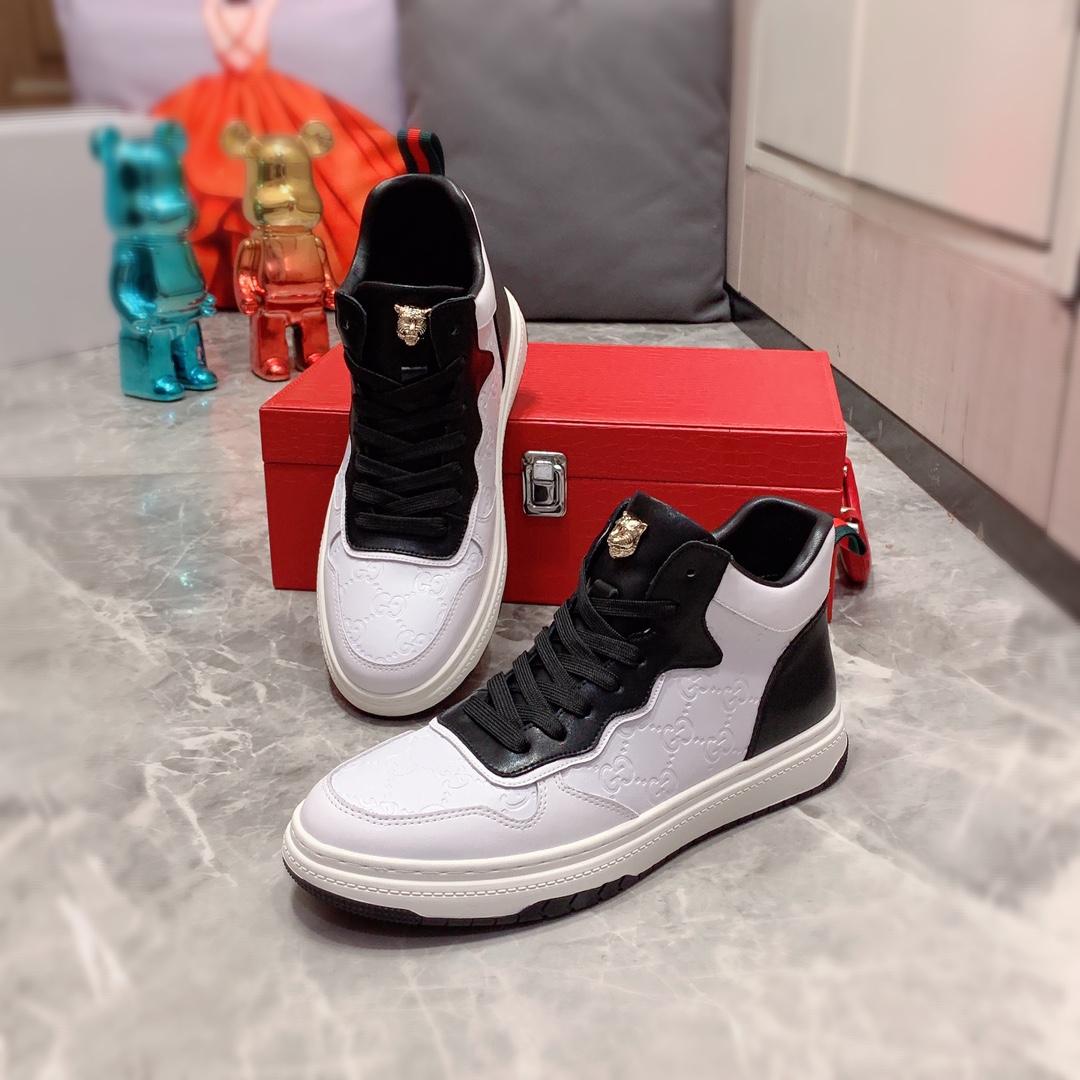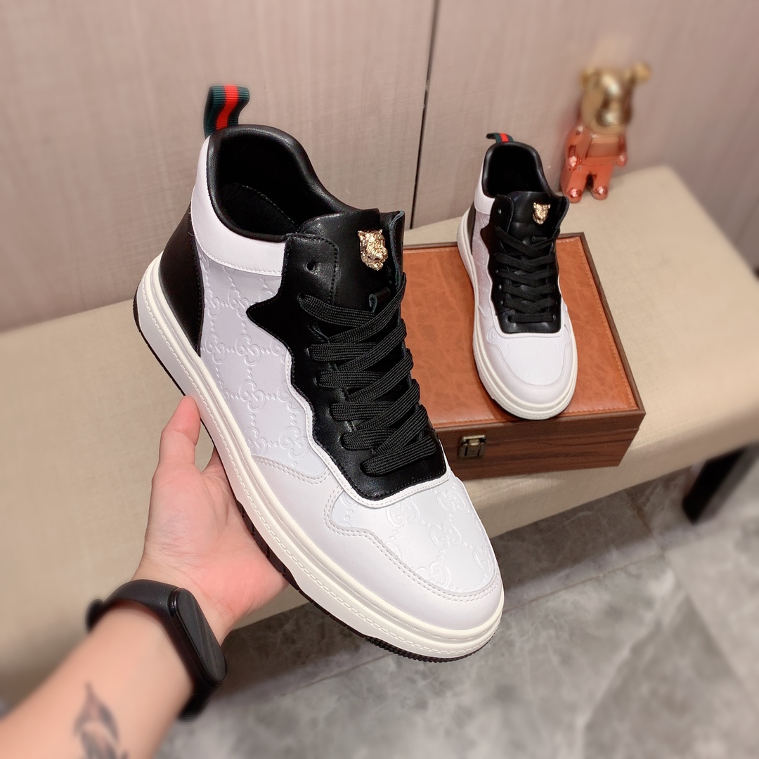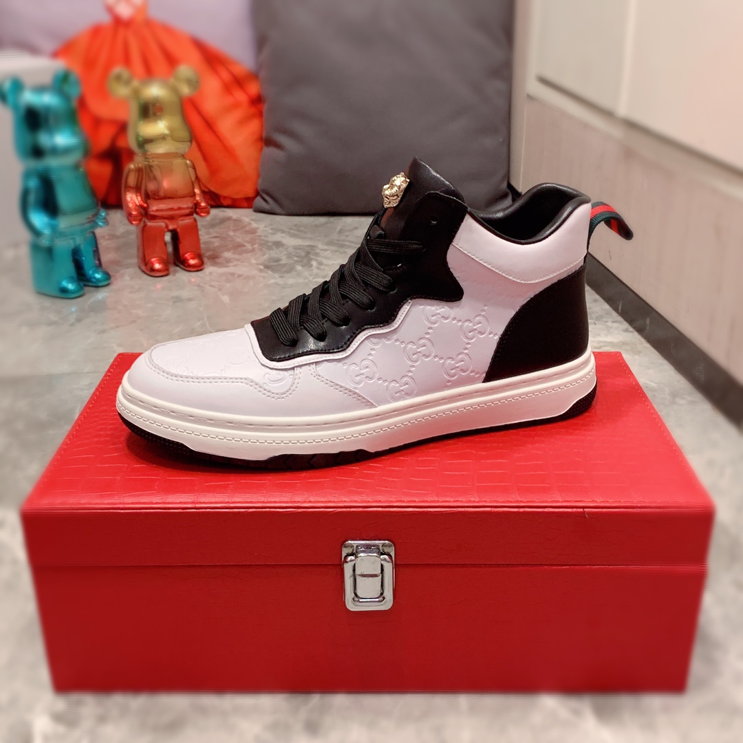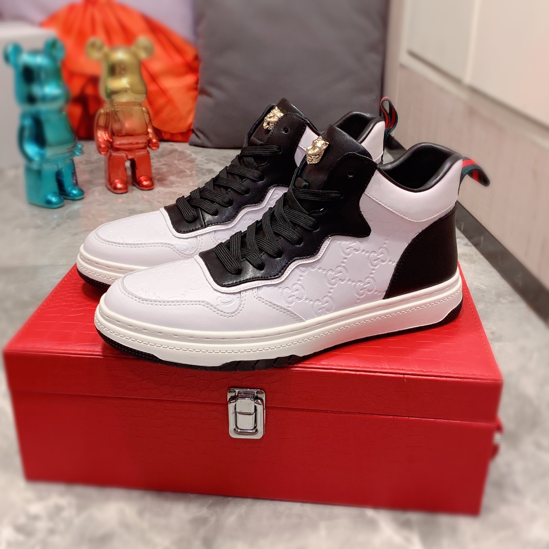 I5 高帮 Gucci 古奇 最新爆款休闲鞋,顶端品牌奢侈~代购,顶级~质量。专柜同卖产品鞋面選用进口透气牛皮材质透气羊皮内里精细做工。原版个性时尚柔软橡膠耐磨防滑大底,上脚轻巧舒适,实物拍摄實物更好看,122广州码: 38-44。2色入选