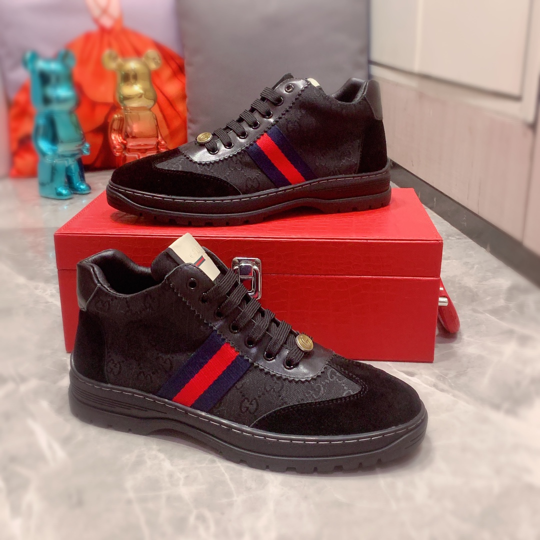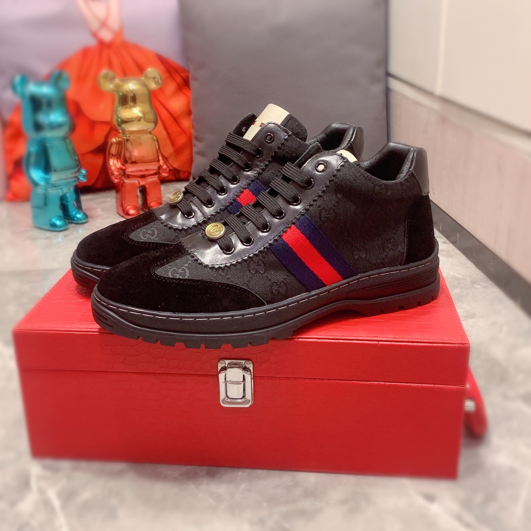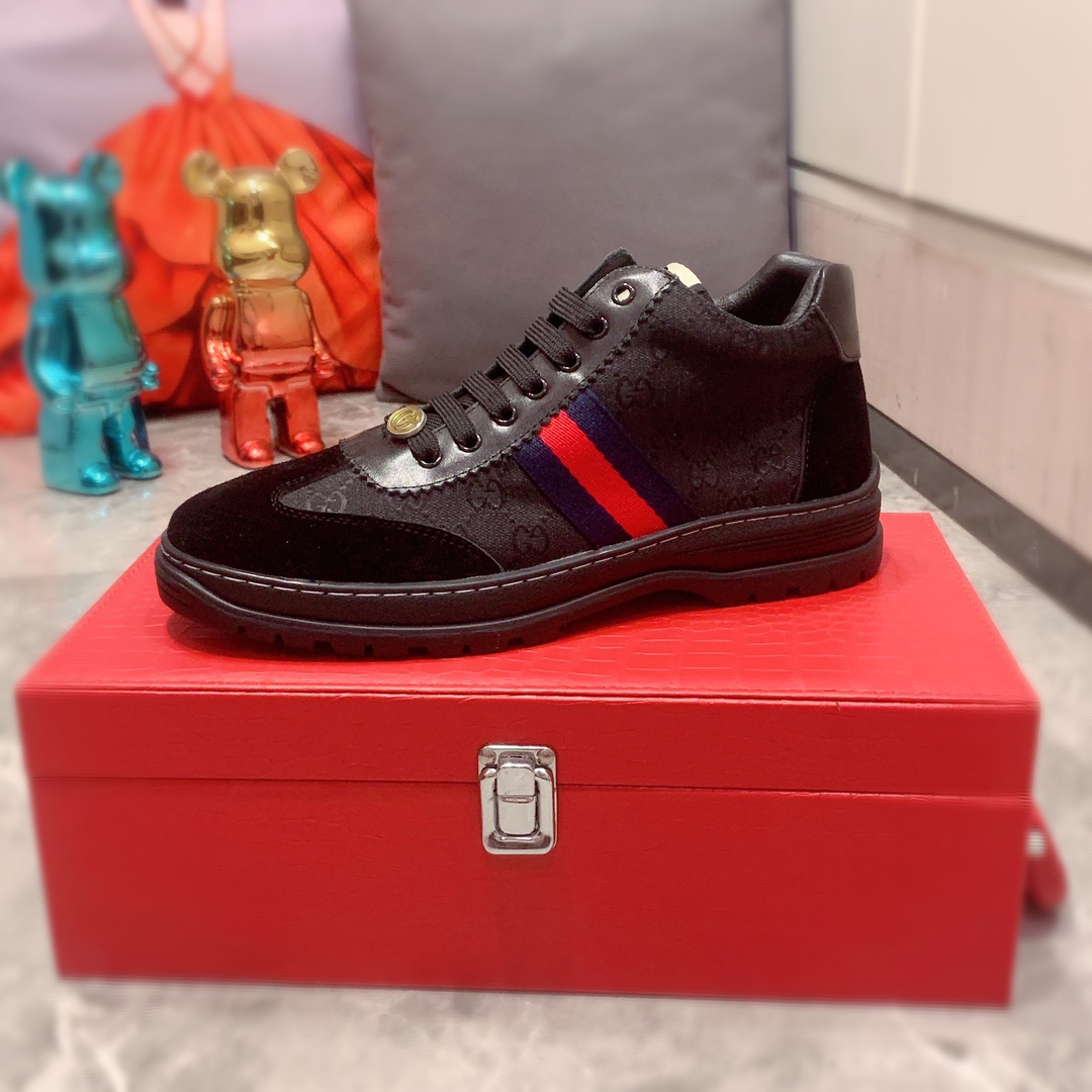 I5 Gucci 古奇 最新爆款休闲鞋,顶端品牌奢侈~代购,顶级~质量。专柜同卖产品鞋面選用进口透气牛皮搭配布面料材质透气羊皮垫里精细做工。原版个性时尚柔软橡膠耐磨防滑大底,上脚轻巧舒适,实物拍摄實物更好看,001广州码: 38-44。2色可选