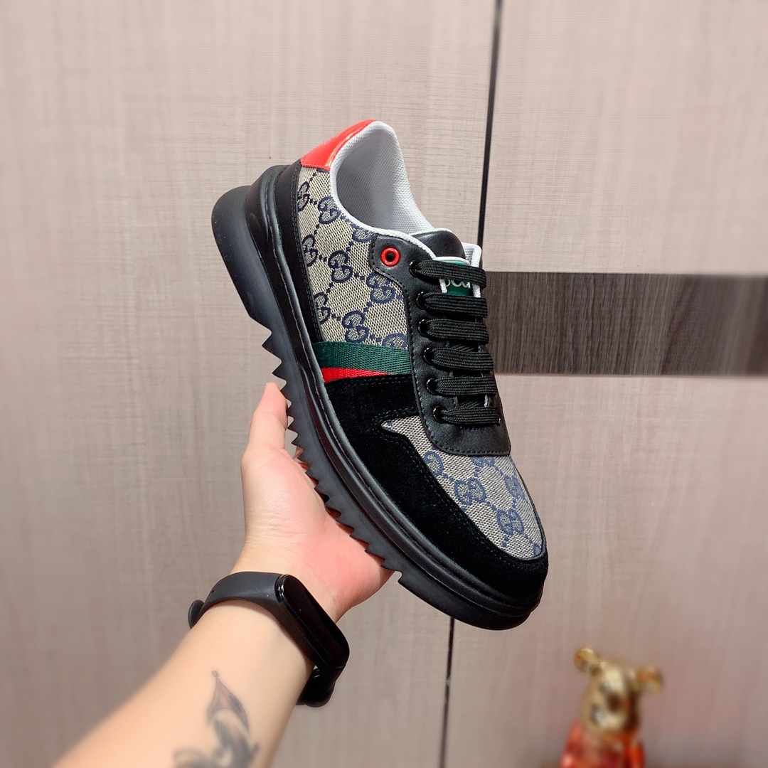 I5 Gucci 古奇 最新爆款休闲鞋,顶端品牌奢侈~代购,顶级~质量。专柜同卖产品鞋面選用进口透气牛皮搭配材质透气羊皮内里精细做工。原版个性时尚柔软橡膠耐磨防滑大底,上脚轻巧舒适,实物拍摄實物更好看,广州码: 38-44。2色可选