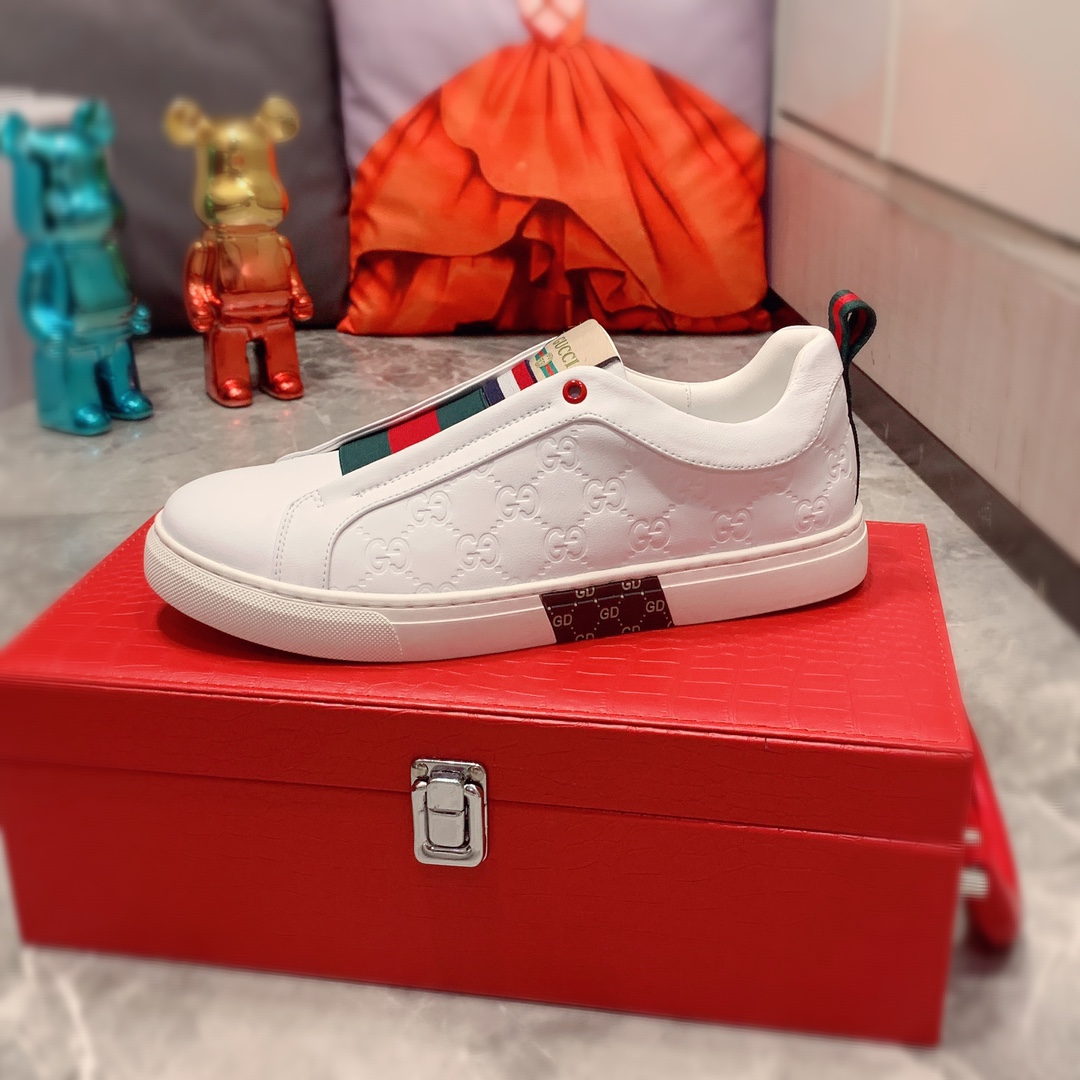 I5 Gucci 古奇 最新爆款休闲鞋,顶端品牌奢侈~代购,顶级~质量。专柜同卖产品鞋面選用进口透气牛皮搭配材质透气羊皮内里精细做工。原版个性时尚柔软橡膠耐磨防滑大底,上脚轻巧舒适,实物拍摄實物更好看,111广州码: 38-44。2色可选