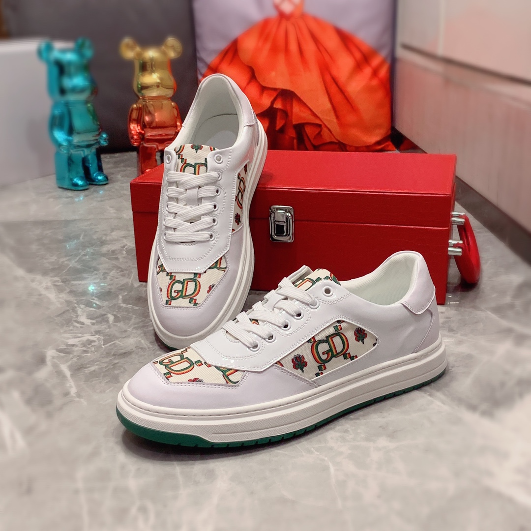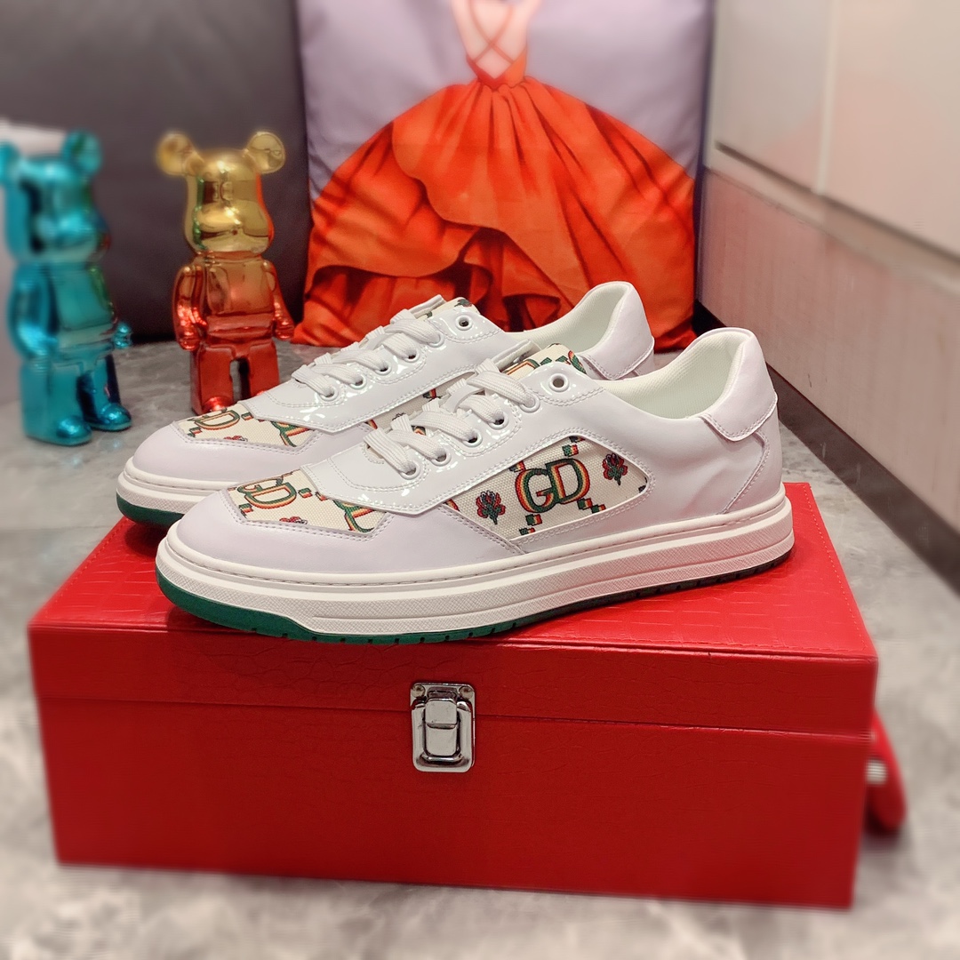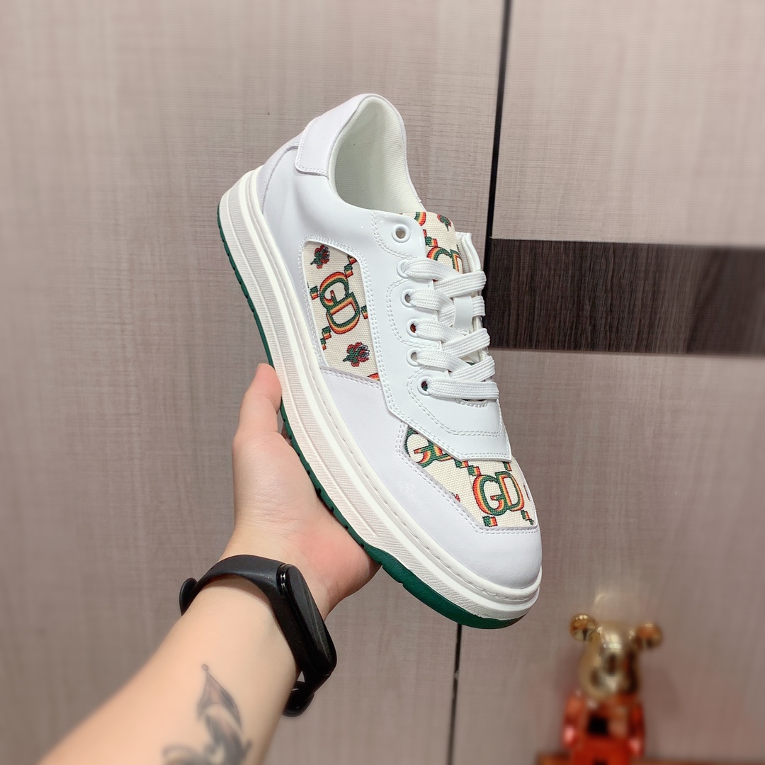 I5 Gucci 古奇 最新爆款休闲鞋,顶端品牌奢侈~代购,顶级~质量。专柜同卖产品鞋面選用进口透气牛皮搭配布面料材质透气羊皮内里精细做工。原版个性时尚柔软橡膠耐磨防滑大底,上脚轻巧舒适,实物拍摄實物更好看,112广州码: 38-44。2色可选