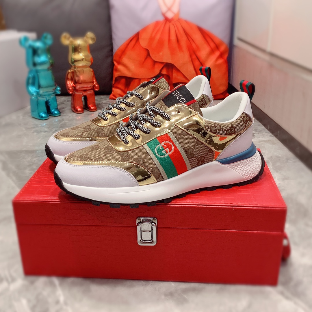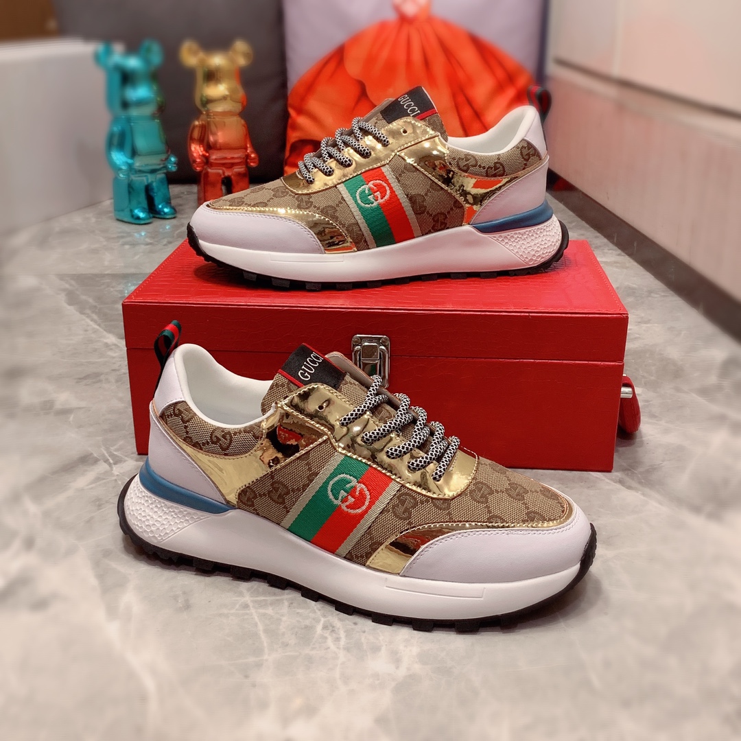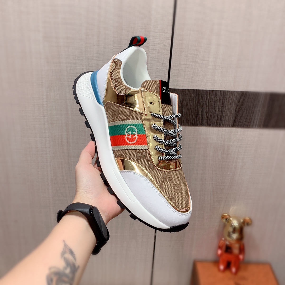 I5 Gucci 古奇 最新爆款休闲鞋,顶端品牌奢侈~代购,顶级~质量。专柜同卖产品鞋面選用进口透气牛皮搭配布面料材质透气羊皮内里精细做工。原版个性时尚柔软橡膠耐磨防滑大底,上脚轻巧舒适,实物拍摄實物更好看,004广州码: 38-44。2色入选