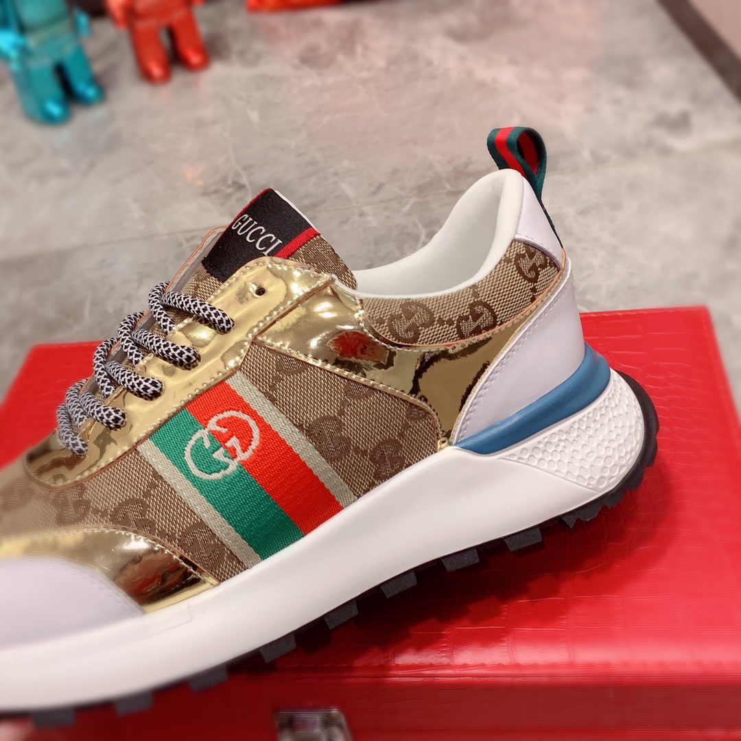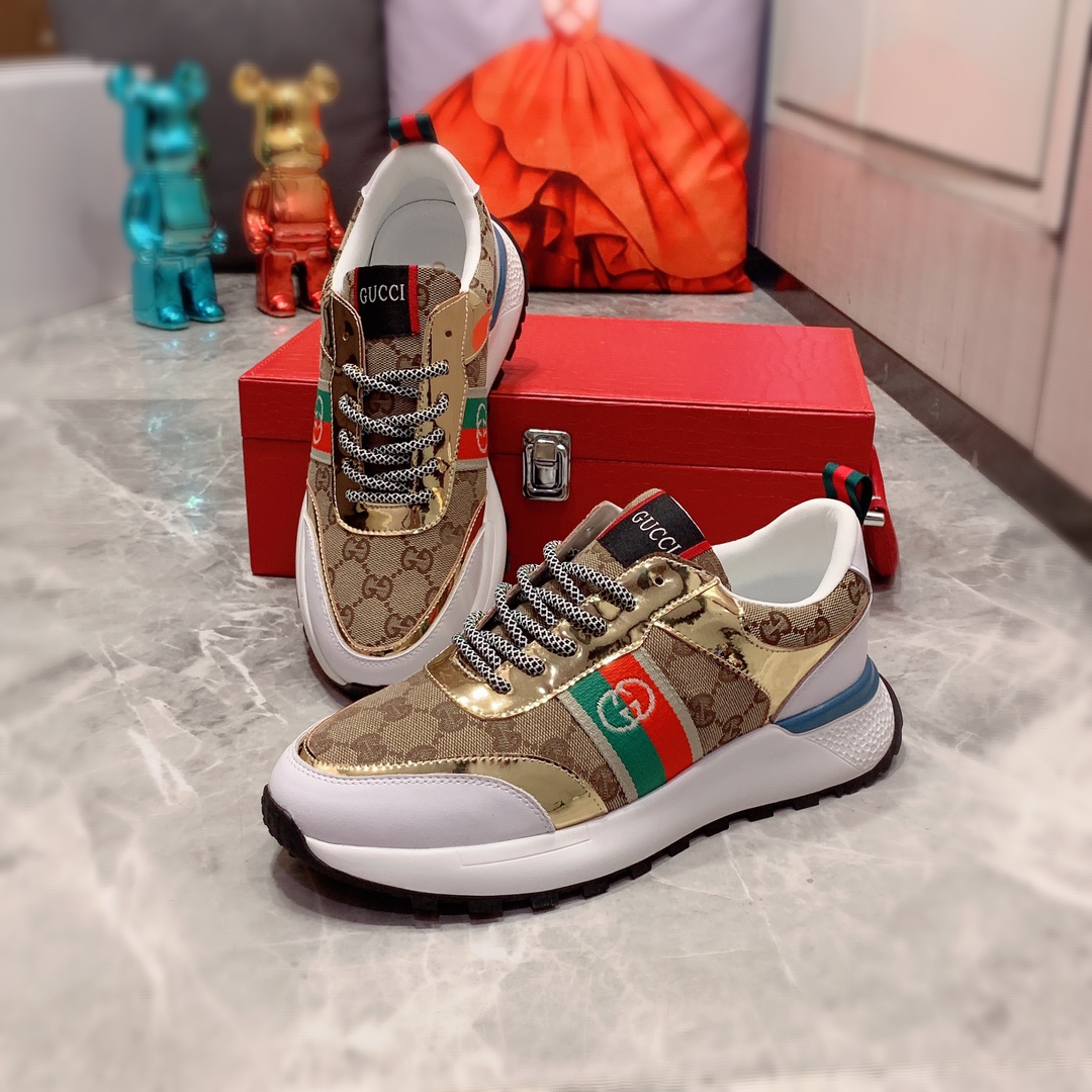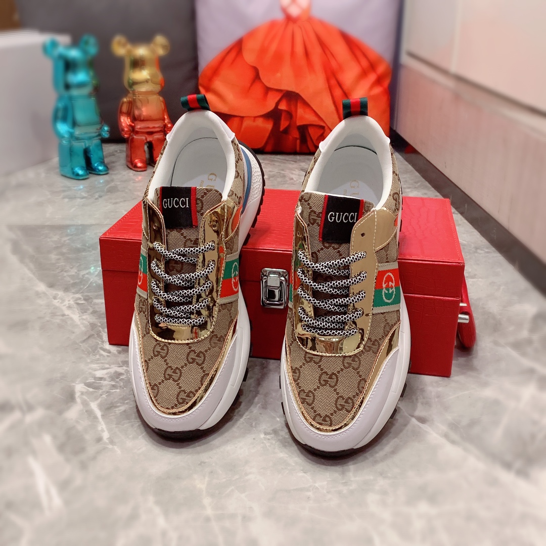 I5 Gucci 古奇 最新爆款休闲鞋,顶端品牌奢侈~代购,顶级~质量。专柜同卖产品鞋面選用进口透气牛皮搭配布面料材质透气羊皮内里精细做工。原版个性时尚柔软橡膠耐磨防滑大底,上脚轻巧舒适,实物拍摄實物更好看,004广州码: 38-44。2色入选