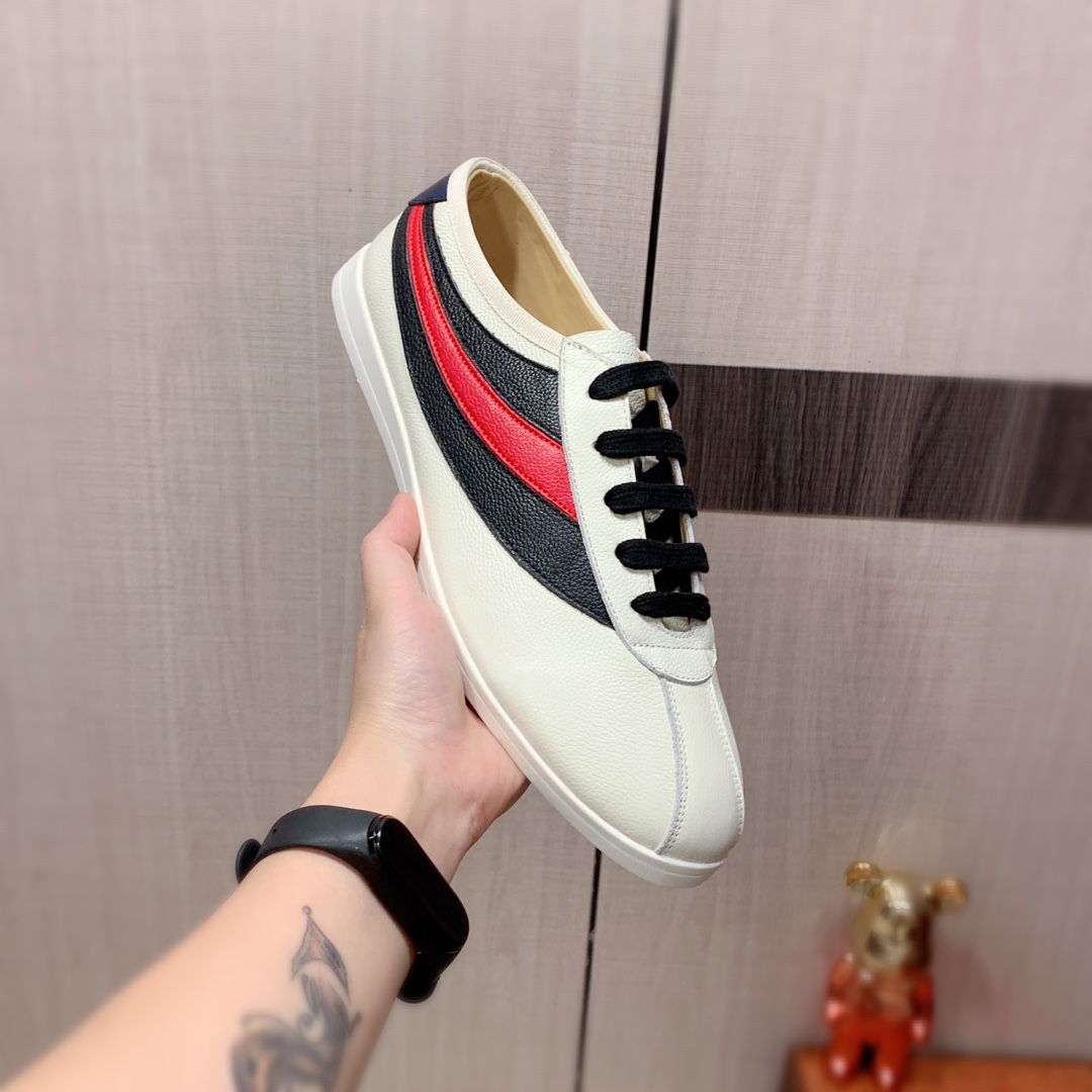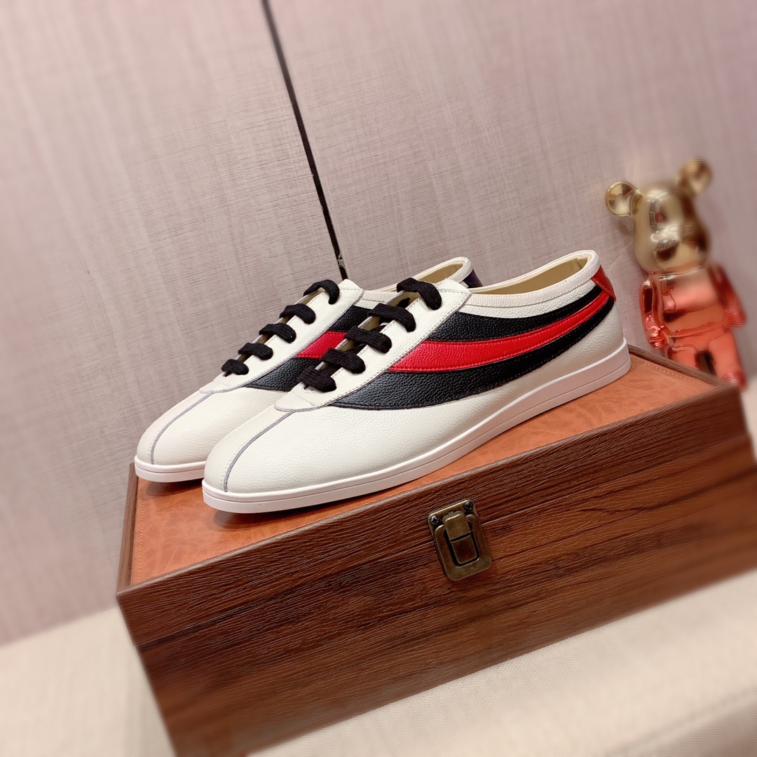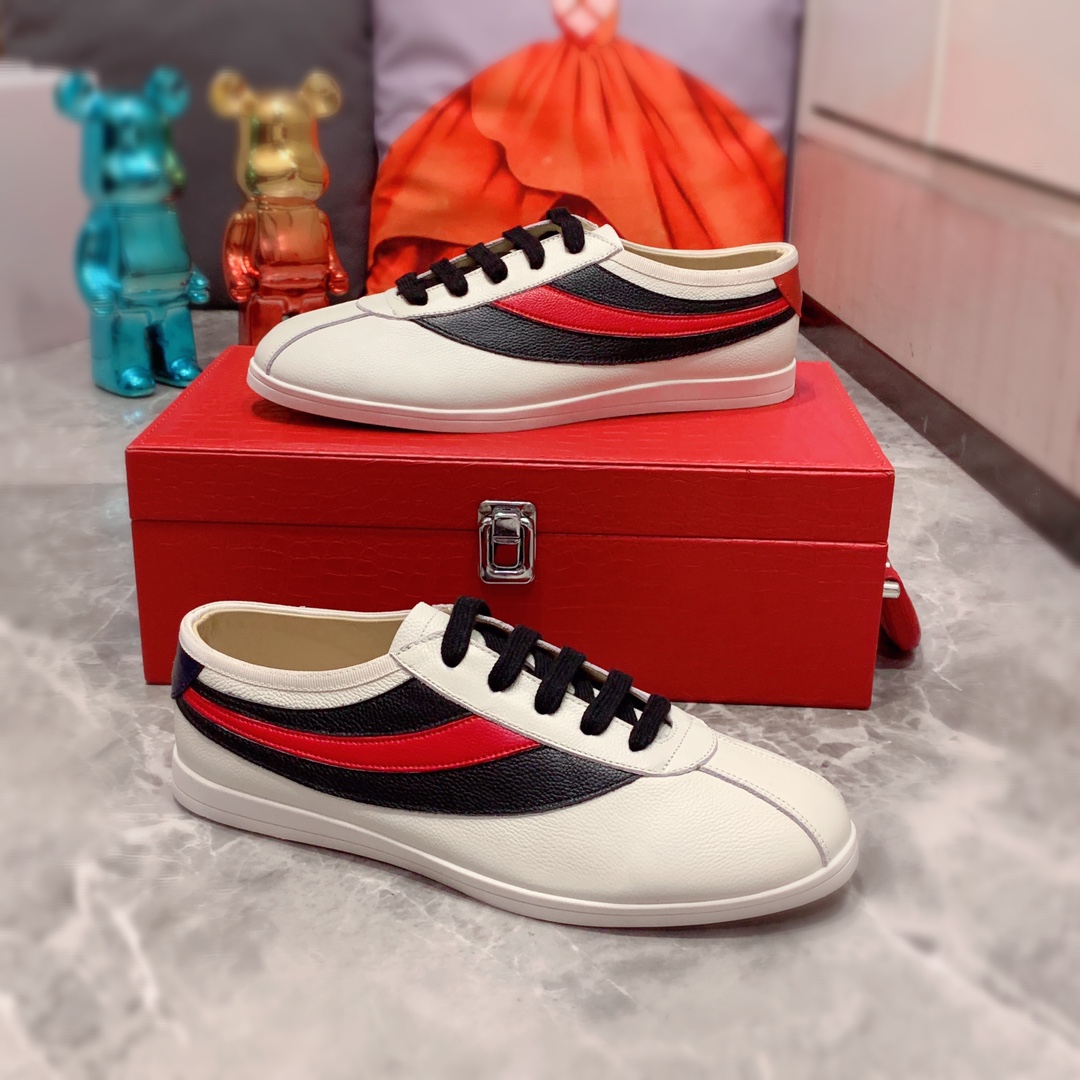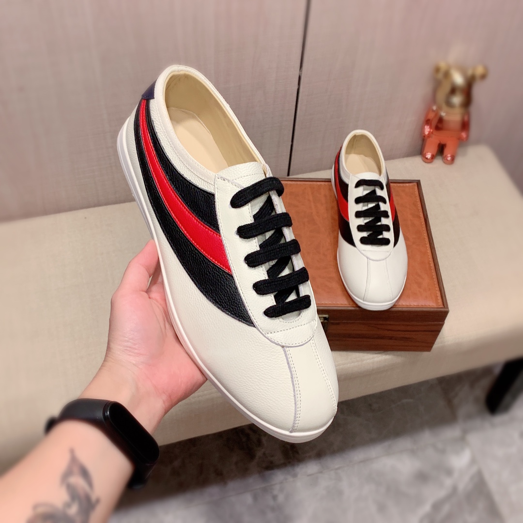 I5 Gucci 古奇 最新爆款休闲鞋,顶端品牌奢侈~代购,顶级~质量。专柜同卖产品鞋面選用进口透气牛皮搭配材质透气羊皮内里精细做工。原版个性时尚柔软橡膠耐磨防滑大底,上脚轻巧舒适,实物拍摄實物更好看,广州码: 38-44。可订45.46