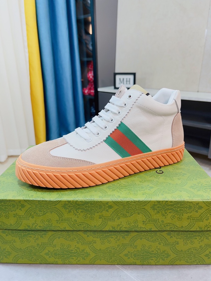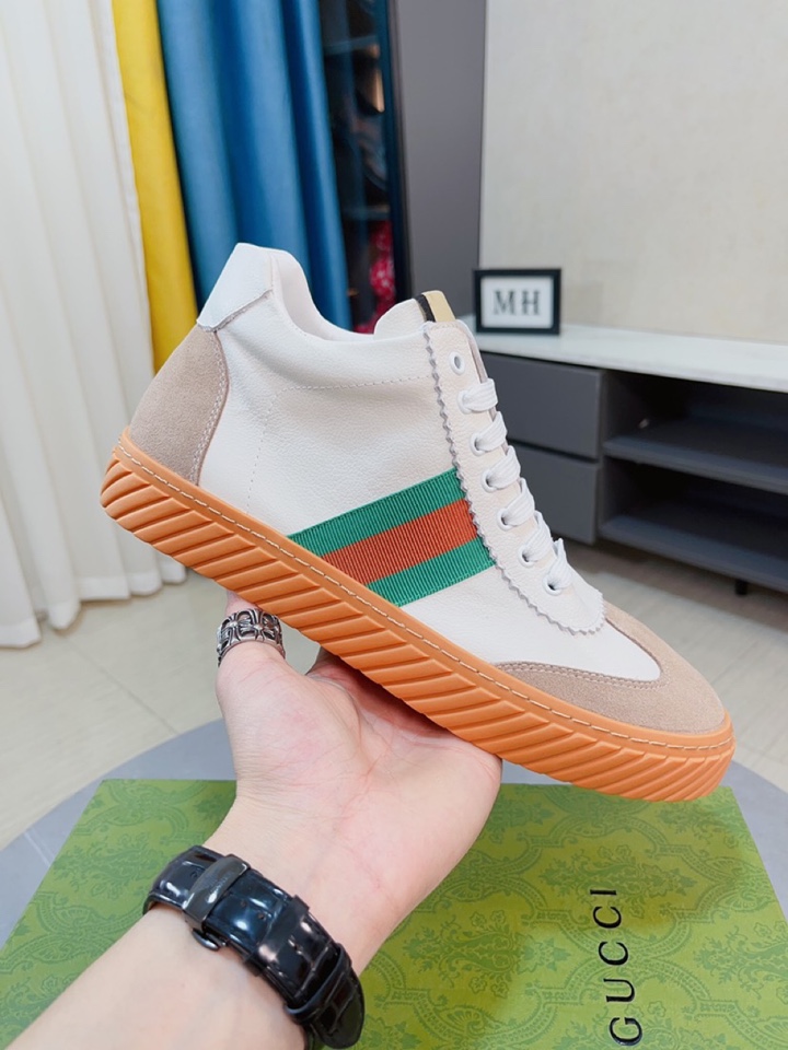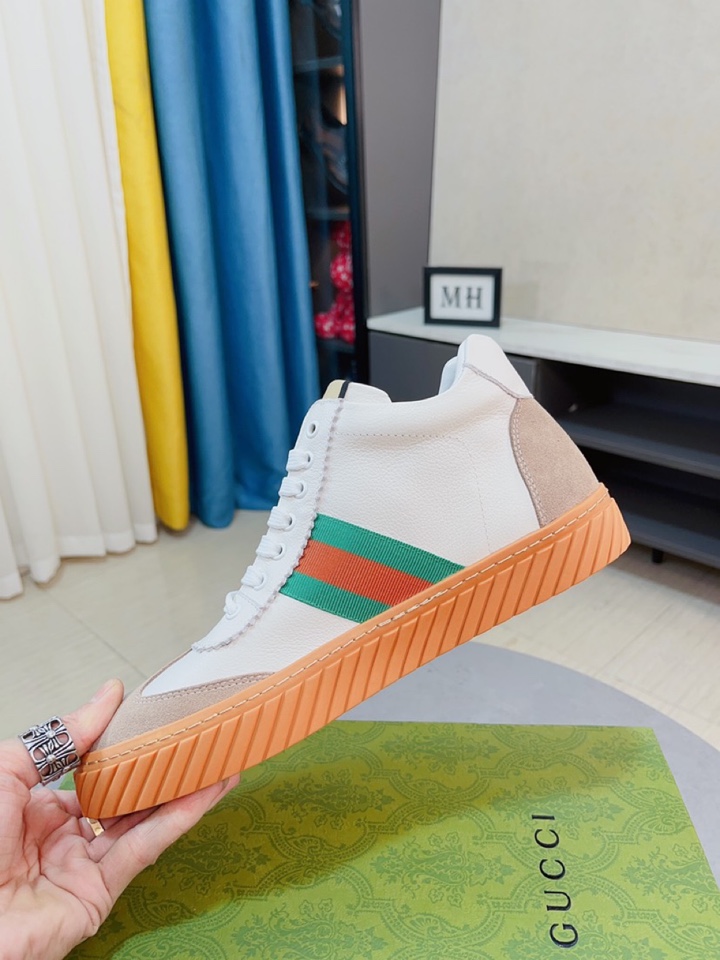 I5 Gucci 古奇 高帮男鞋高端品牌,最新時尚休闲男鞋,潮流百搭之款,轻松运动风,鞋面意大利进口头层牛皮 真皮内里 加超精细做工。原版个性时尚橡胶耐磨大底,上脚轻巧舒适,码数38-44