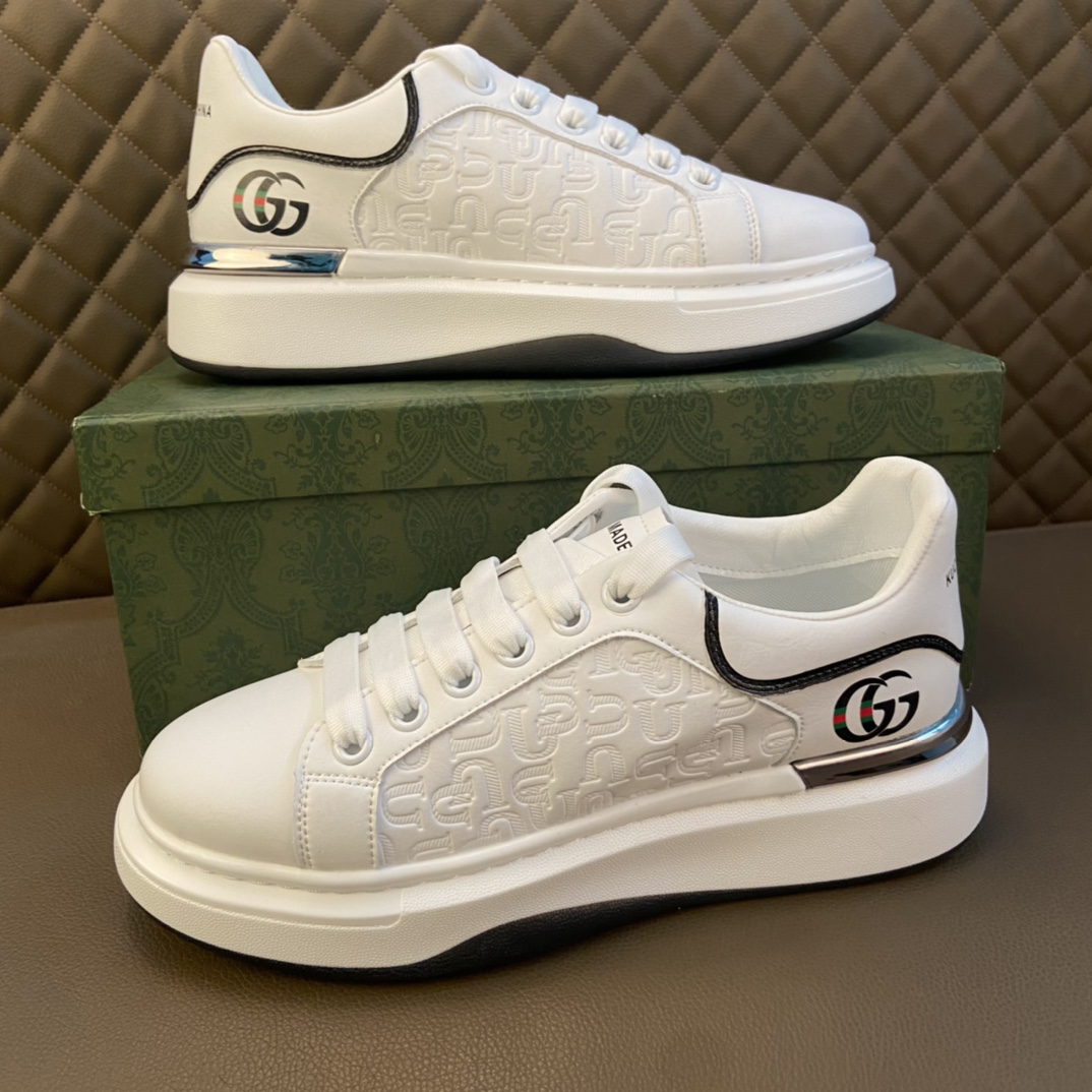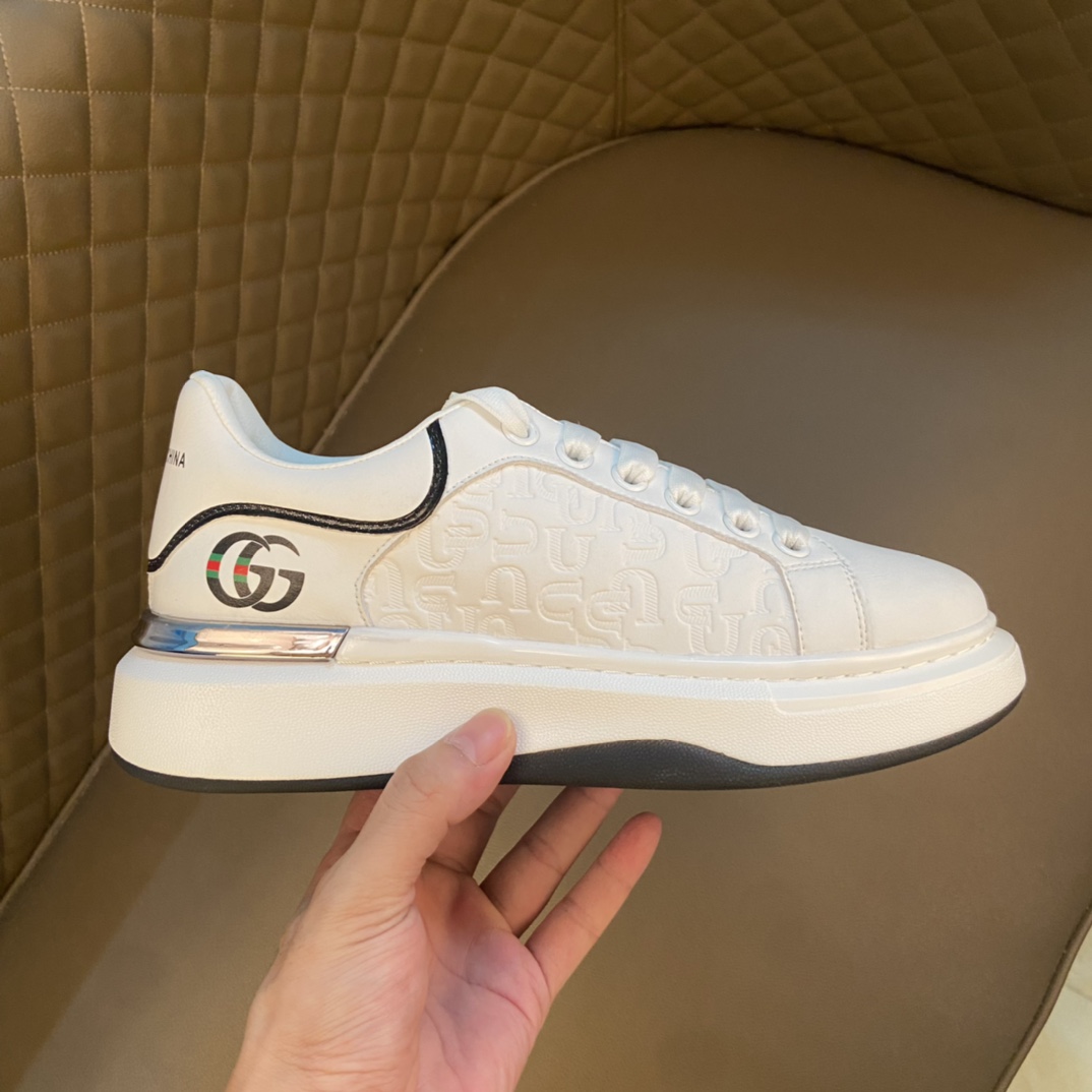 I5 Gucci 古奇 高版本潮鞋独家首发 男士2022专柜同步发售,意大利进口原版品牌精选头层柔软牛皮。羊皮内里 拒绝脱色磨脚鞋面原版电绣鞋面 原厂特供原版底, ,适合户外司机驾车出行高品质板鞋,男鞋码数 38-44 45可定做 白色 选