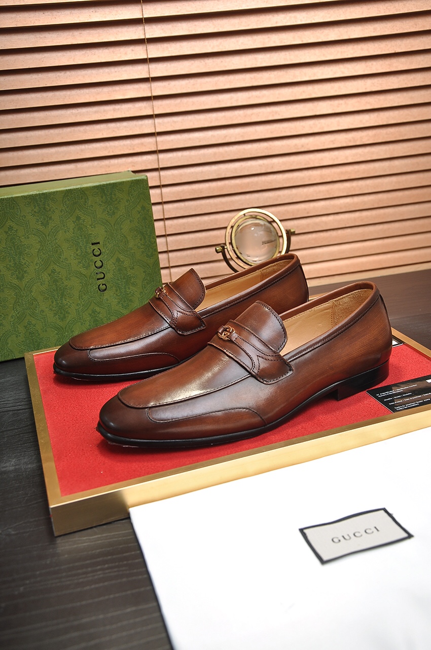 J0 意大利顶级奢侈男鞋巨头Gucci 古奇 全牛皮内里报到原汁原味的欧式风格 赏心悦目为了让鞋子更加耐用不变形制作继续沿用传统做法 但仍然不乏创新皮质上选择原版羊皮 流畅自然 并格外光亮进口牛皮制作而成 土豪的第一选择 38-4545定做