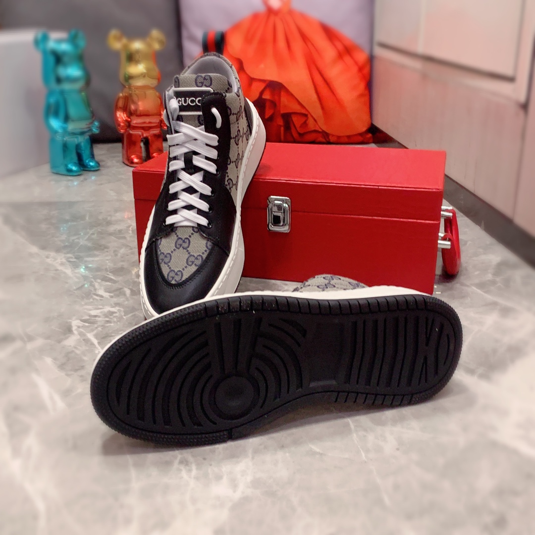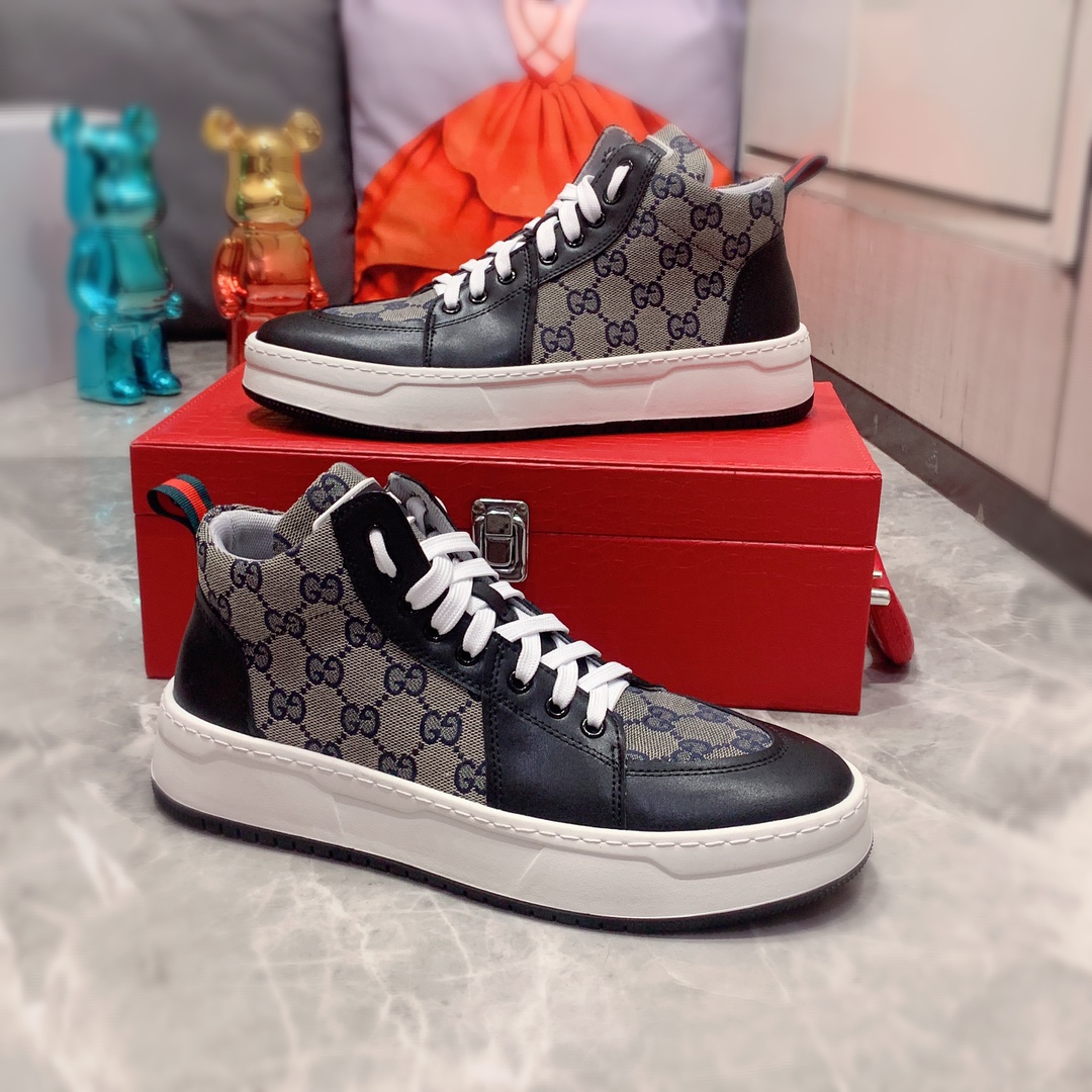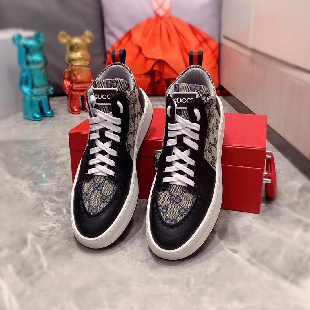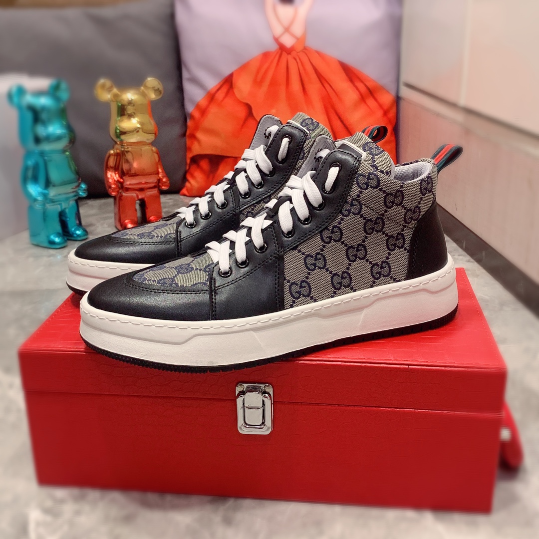 J0 高帮: Gucci 古奇 最新爆款休闲鞋,顶端品牌奢侈~代购,顶级~质量。专柜同卖产品鞋面選用进口透气牛皮搭配布面料材质透气运动内里精细做工。原版个性时尚柔软橡膠耐磨防滑大底,上脚轻巧舒适,实物拍摄實物更好看,广州码: 38-44。2色可选