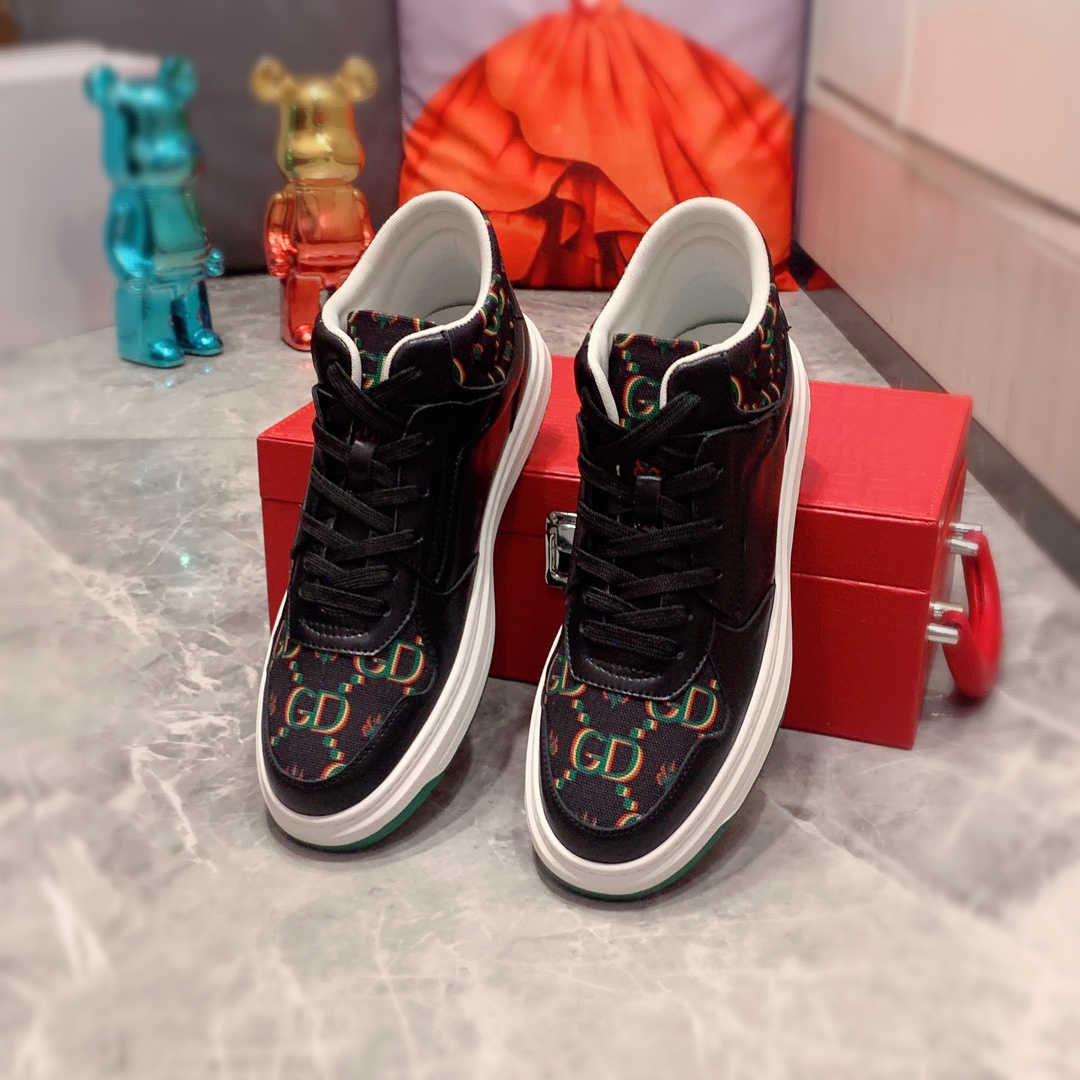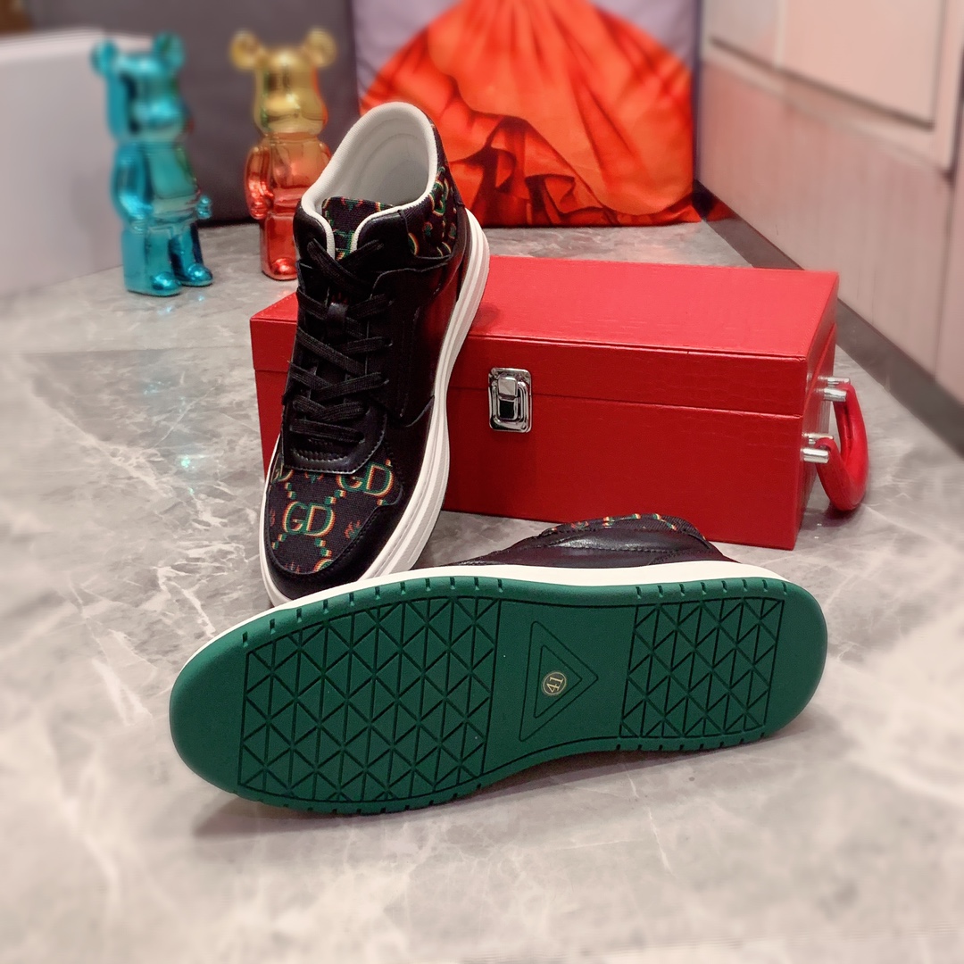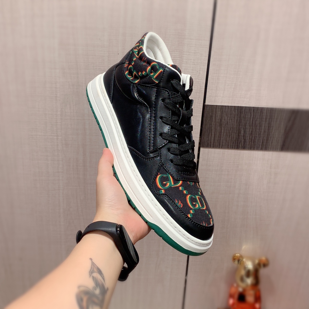 J0 高帮: Gucci 古奇 最新爆款休闲鞋,顶端品牌奢侈~代购,顶级~质量。专柜同卖产品鞋面選用进口透气牛皮搭配布面料材质透气羊皮内里精细做工。原版个性时尚柔软橡膠耐磨防滑大底,上脚轻巧舒适,实物拍摄實物更好看,112广州码: 38-44。2色可选