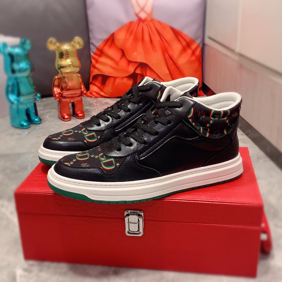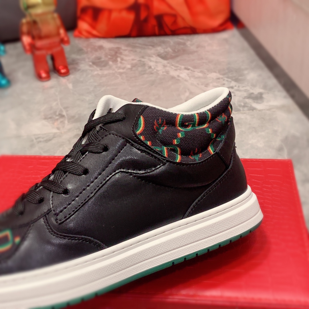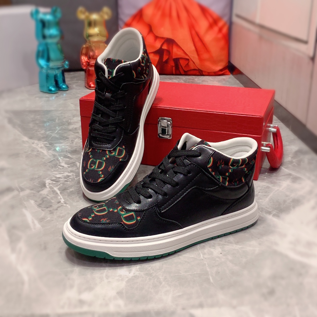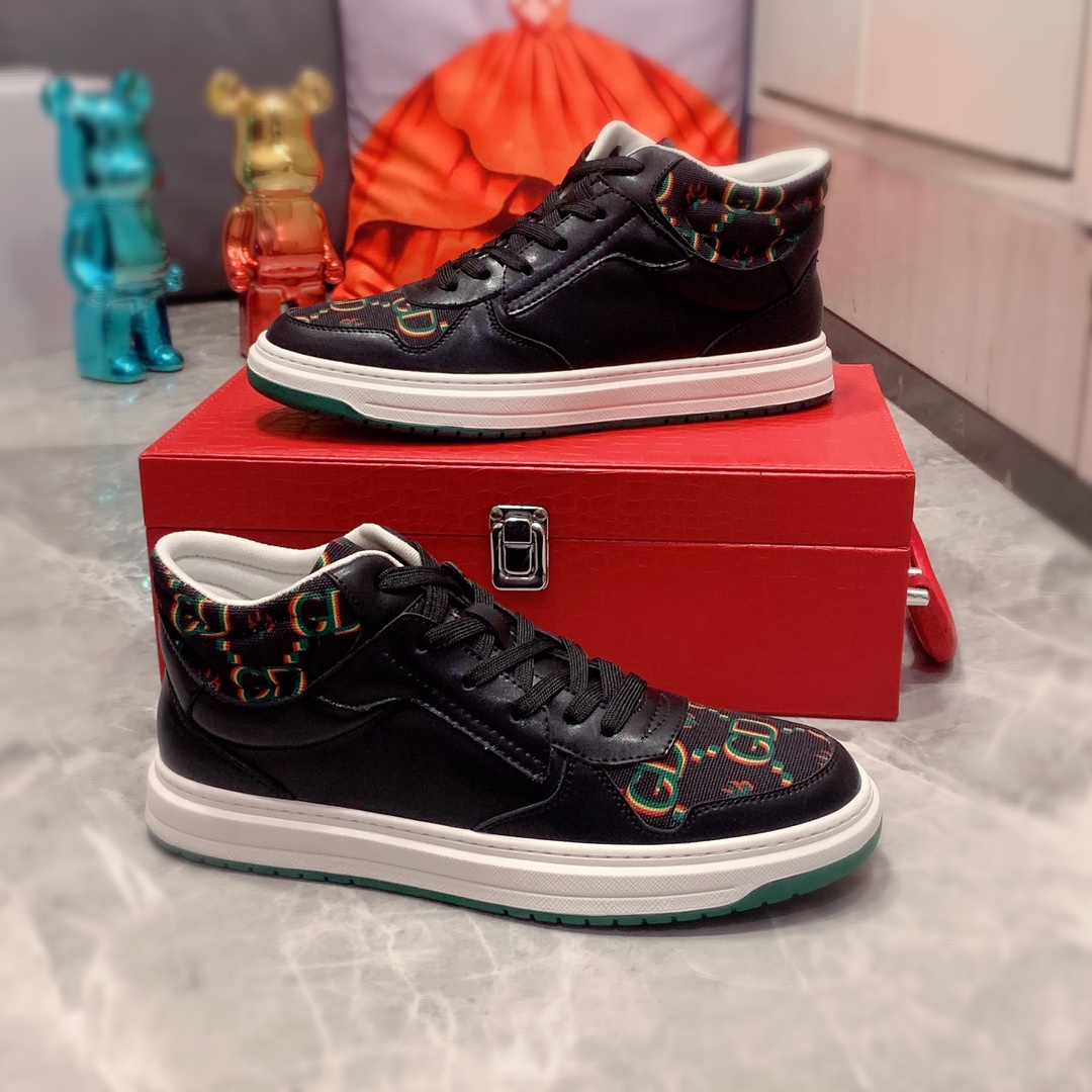 J0 高帮: Gucci 古奇 最新爆款休闲鞋,顶端品牌奢侈~代购,顶级~质量。专柜同卖产品鞋面選用进口透气牛皮搭配布面料材质透气羊皮内里精细做工。原版个性时尚柔软橡膠耐磨防滑大底,上脚轻巧舒适,实物拍摄實物更好看,112广州码: 38-44。2色可选