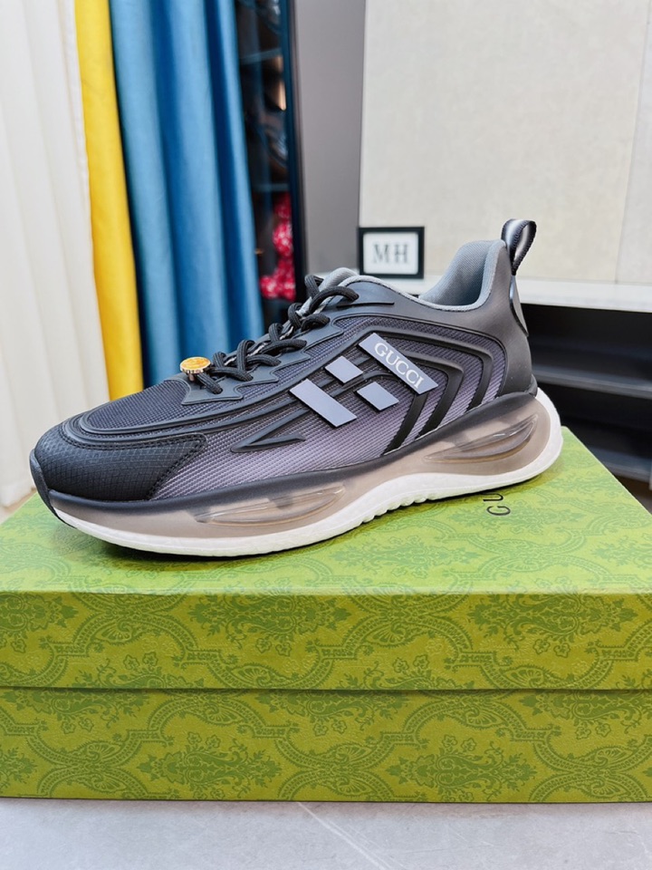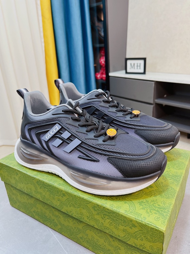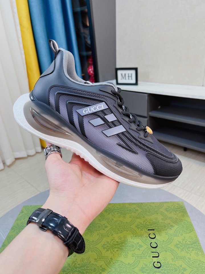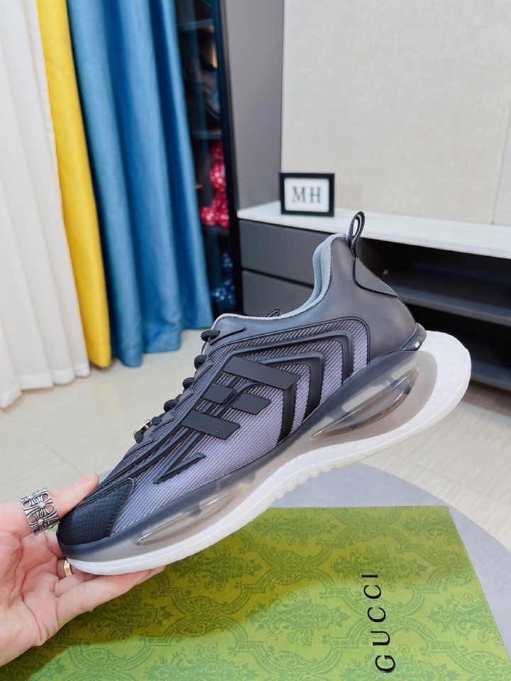 J0 Gucci 古奇 上市,上图必卖 顶级奢侈品牌,最新時尚休闲男鞋,潮流百搭之款,轻松运动风,鞋面反绒镂空设计真皮内里 加超精细做工。原版个性时尚半气垫增高大底大底,上脚轻巧舒适,码数38-44