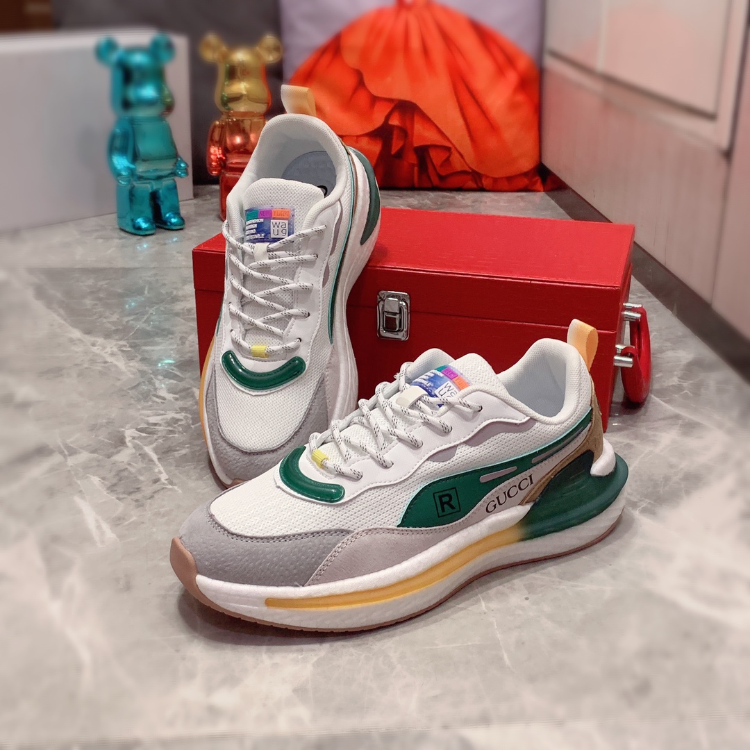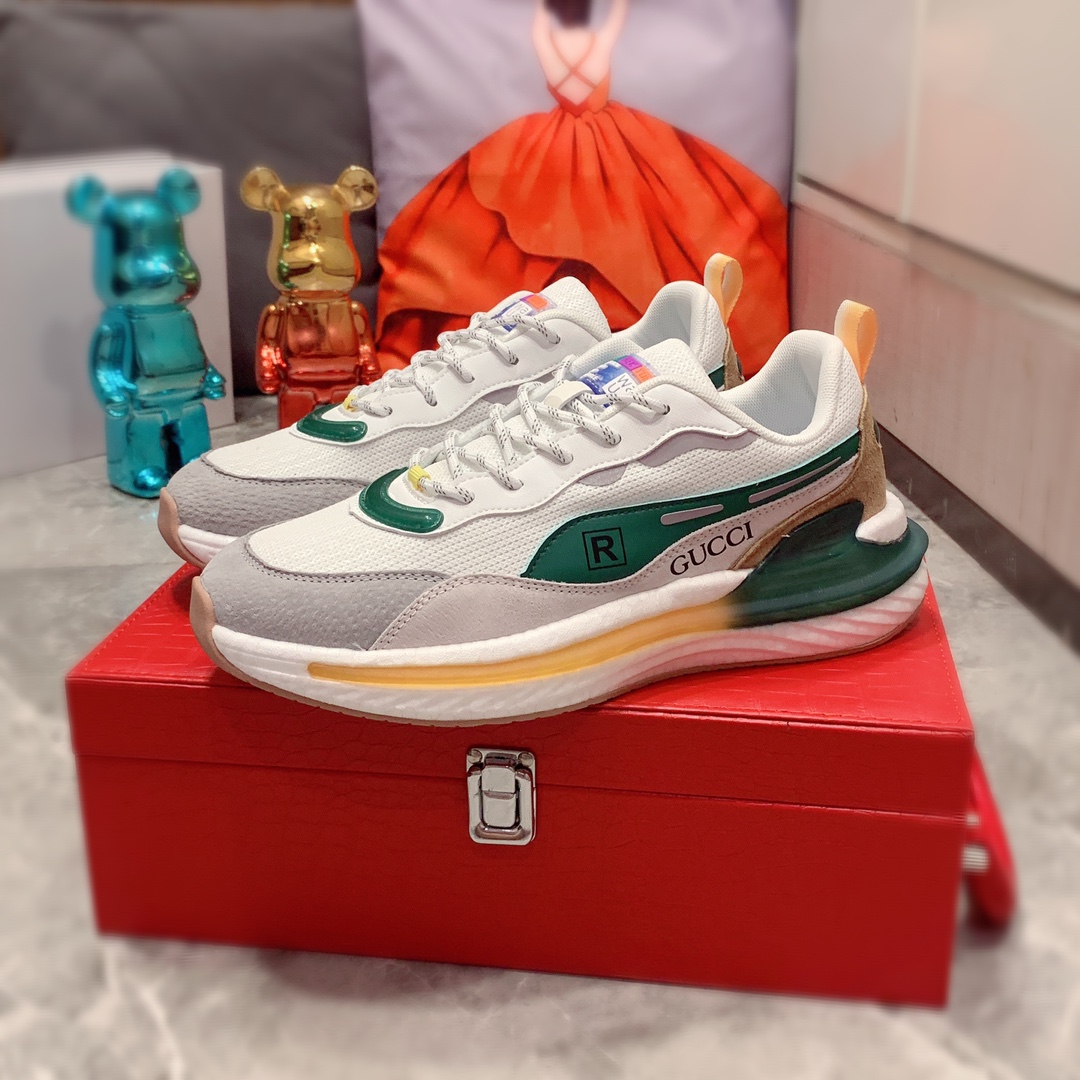 J0 Gucci 古奇 最新爆款休闲鞋,顶端品牌奢侈~代购,顶级~质量。专柜同卖产品鞋面選用进口透气网布材质透气运动内里精细做工。原版个性时尚柔软橡膠耐磨防滑大底,上脚轻巧舒适,实物拍摄實物更好看,002码: 38-43。2色可选