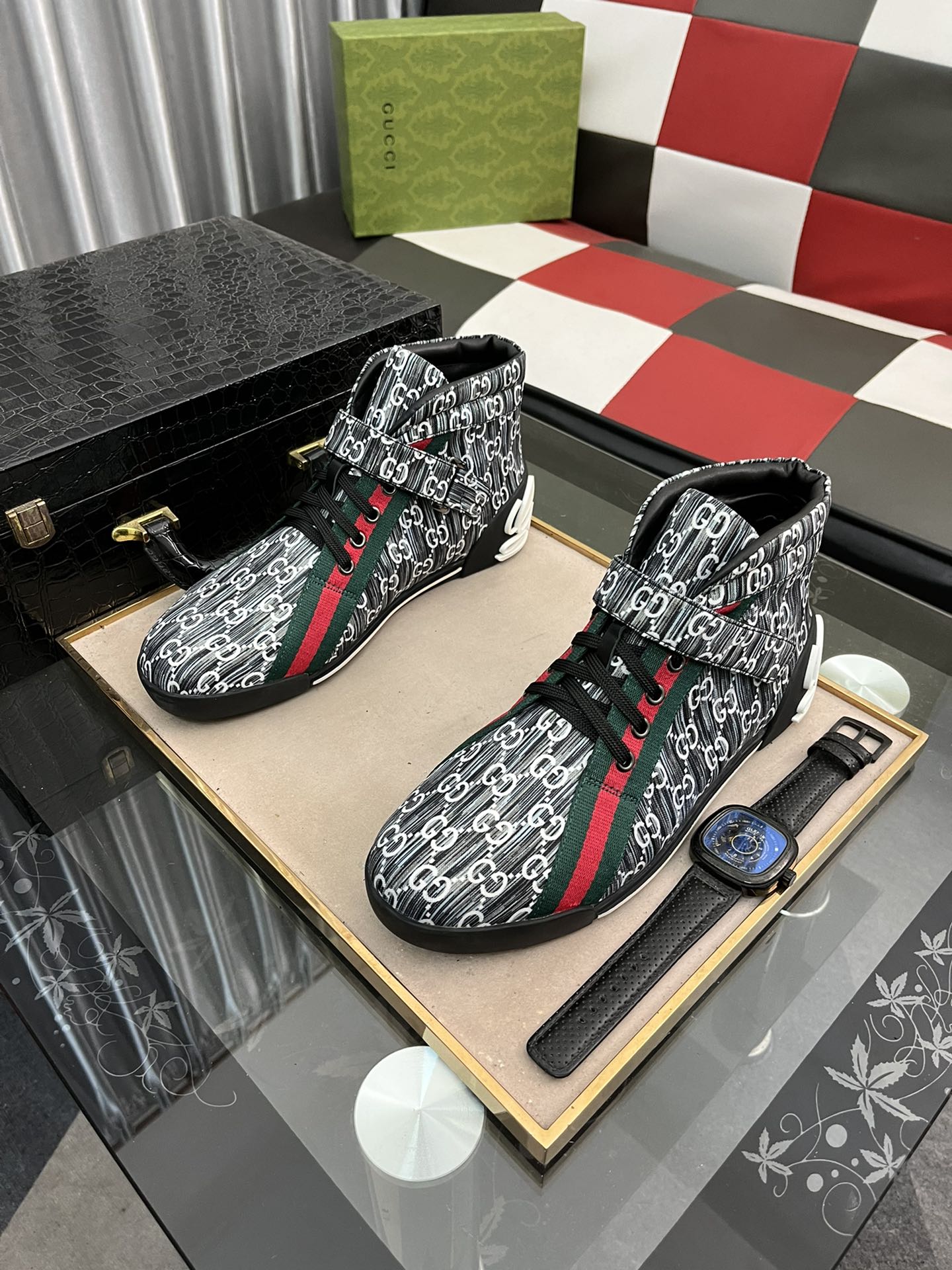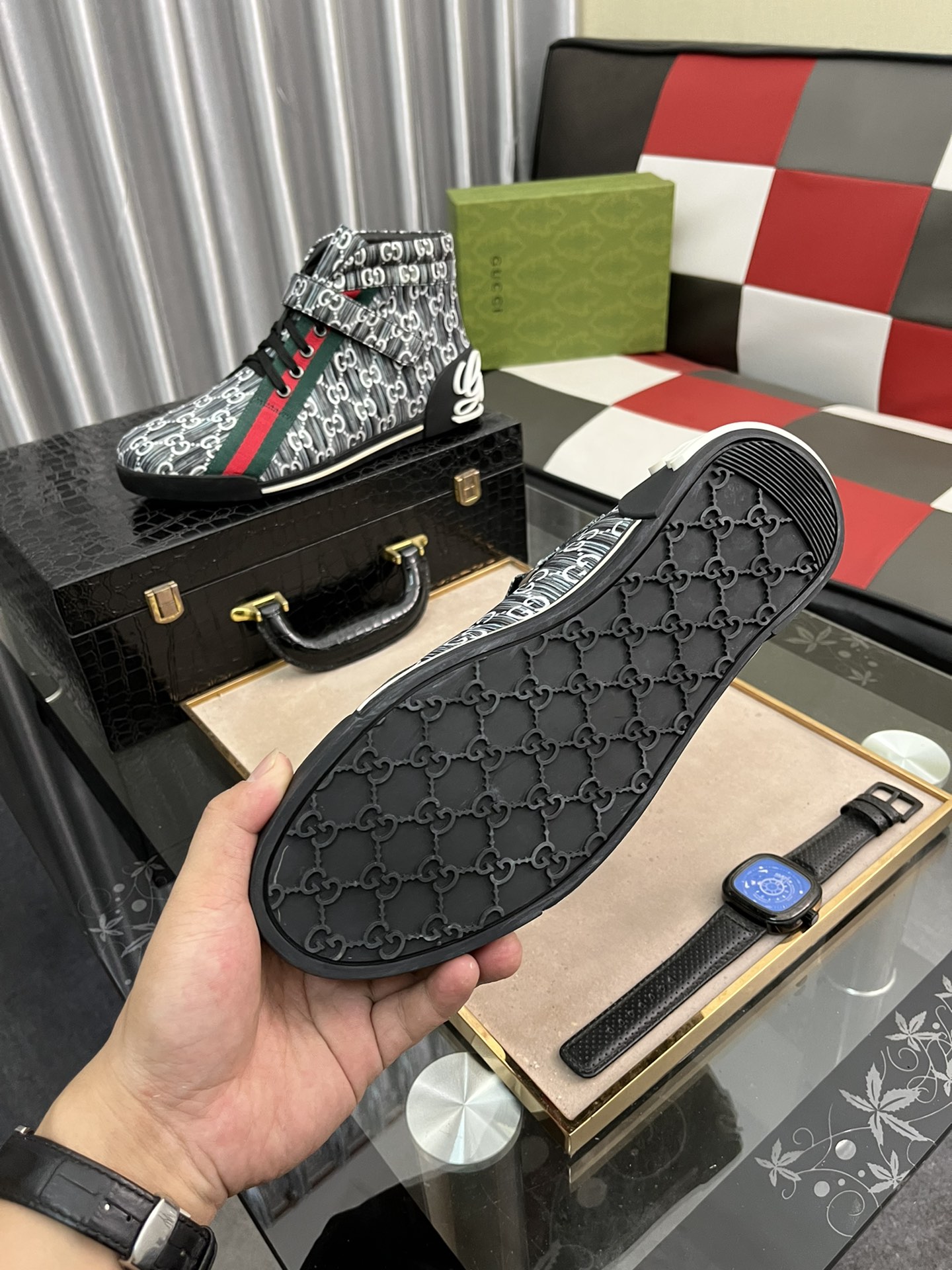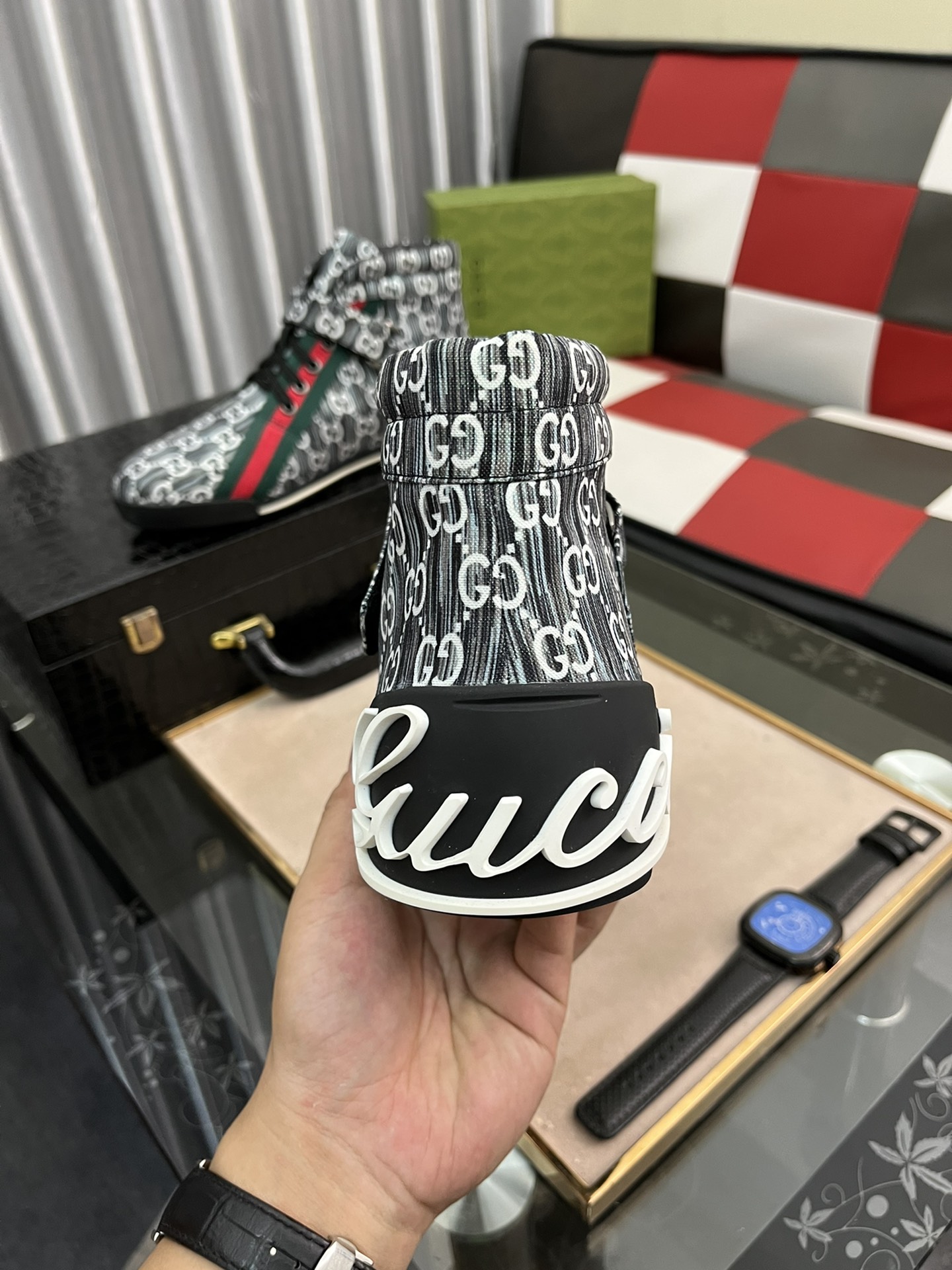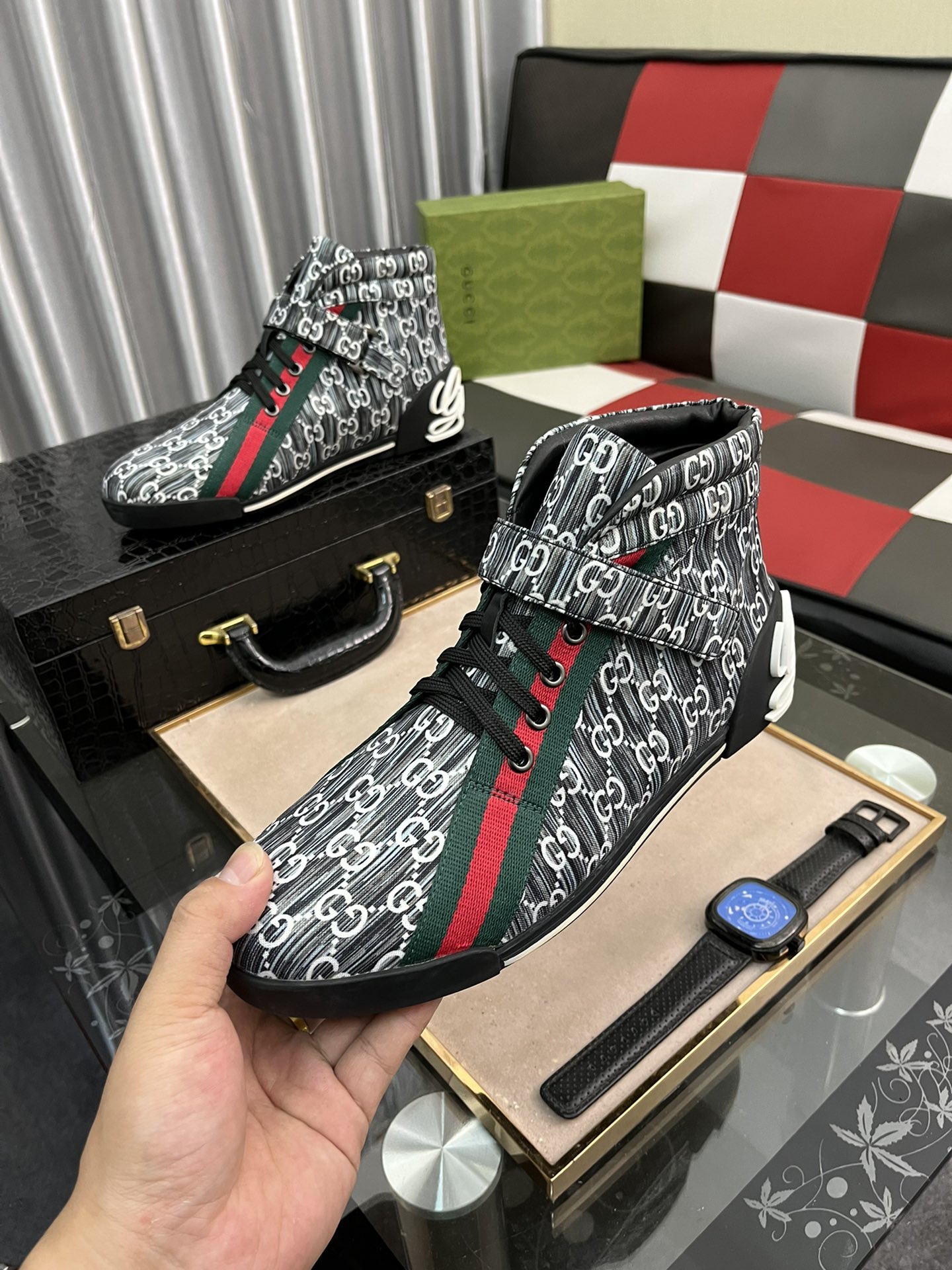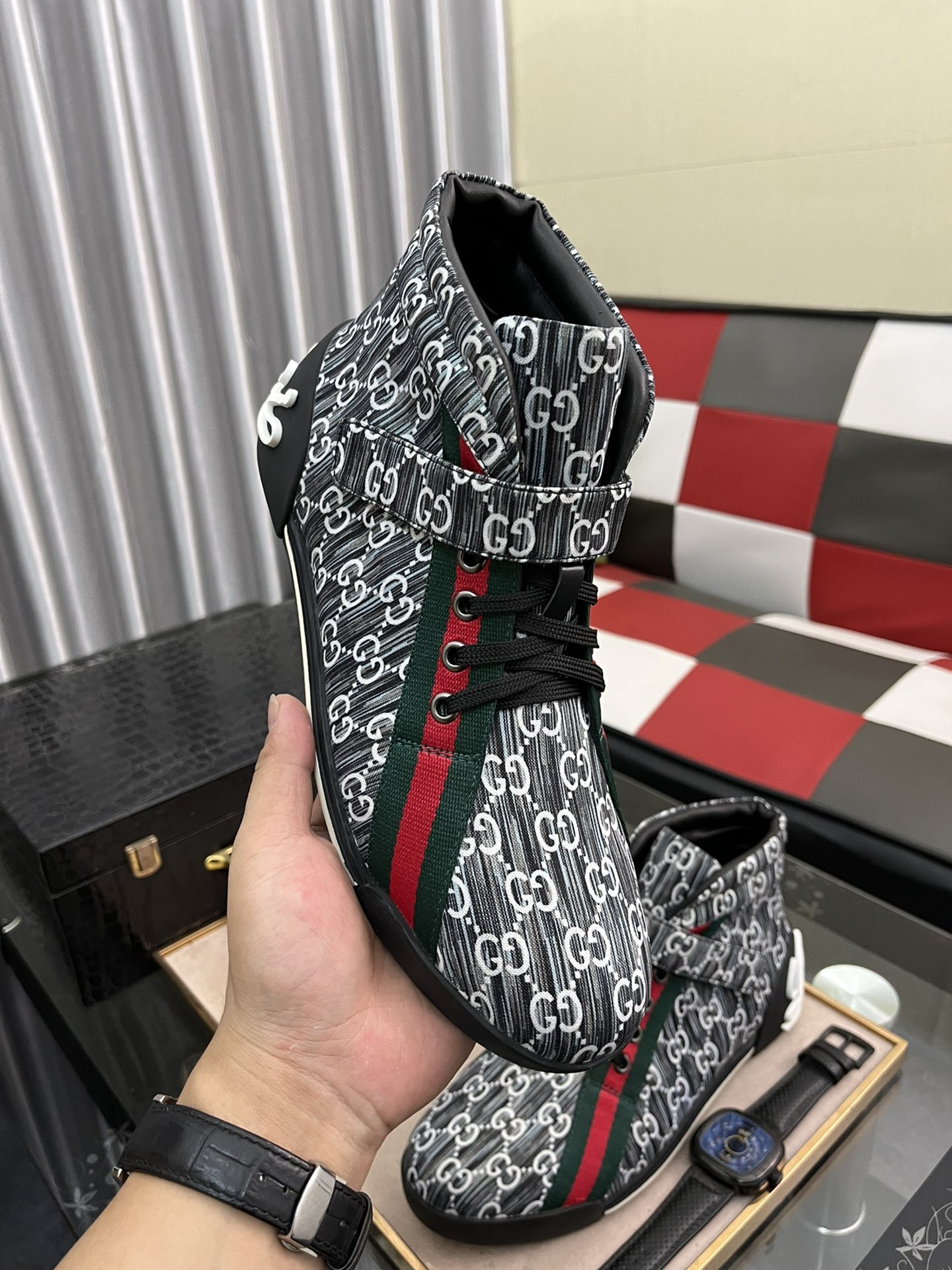 J0 Gucci 古奇 男士经典Gucci 古奇 高帮鞋,原单品质鞋面采用意大利进口原厂布料牛皮羊皮内里,做工精细,高端大气。有时尚典范造型。橡胶耐磨防滑大底。码数 38-4545定做6色可选